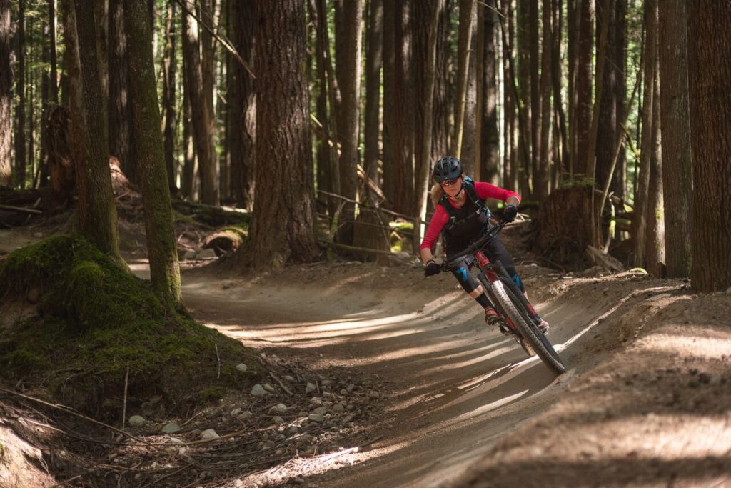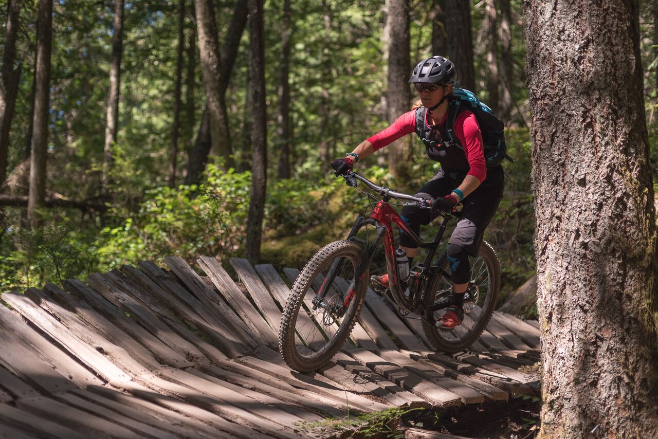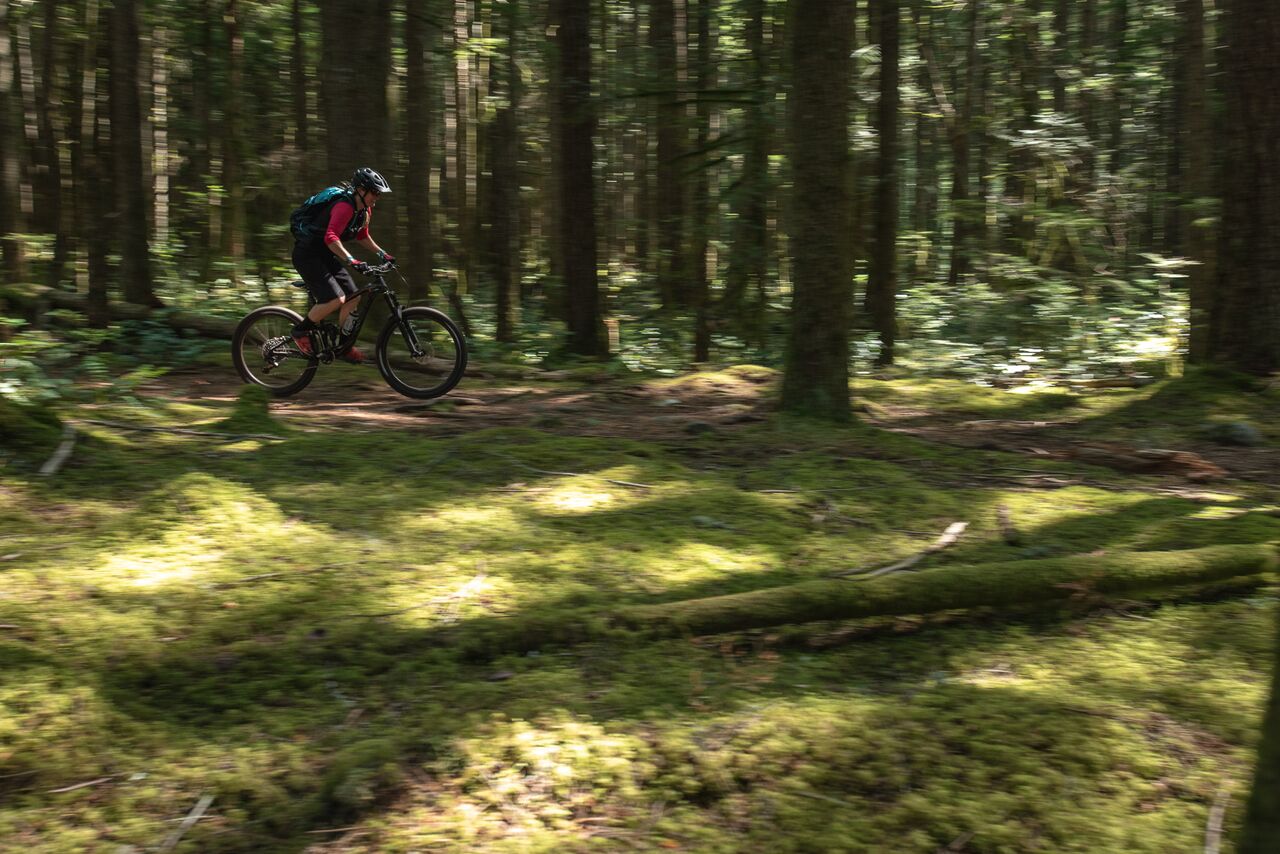 En descente, nous avons tout basculé en mode ouvert, et ça nous a ouvert… des horizons. Sur les fameux rock rolls qui signent l’identité de la Colombie Britannique, dans les salades de racines, ls marches rocheuses, l’Intrigue file droit. On a pris seulement soin de slalomer avec la roue avant, histoire d’éviter les plus gros obstacles, mais même sur ces derniers, les DVO n’ont jamais été pris en défaut.