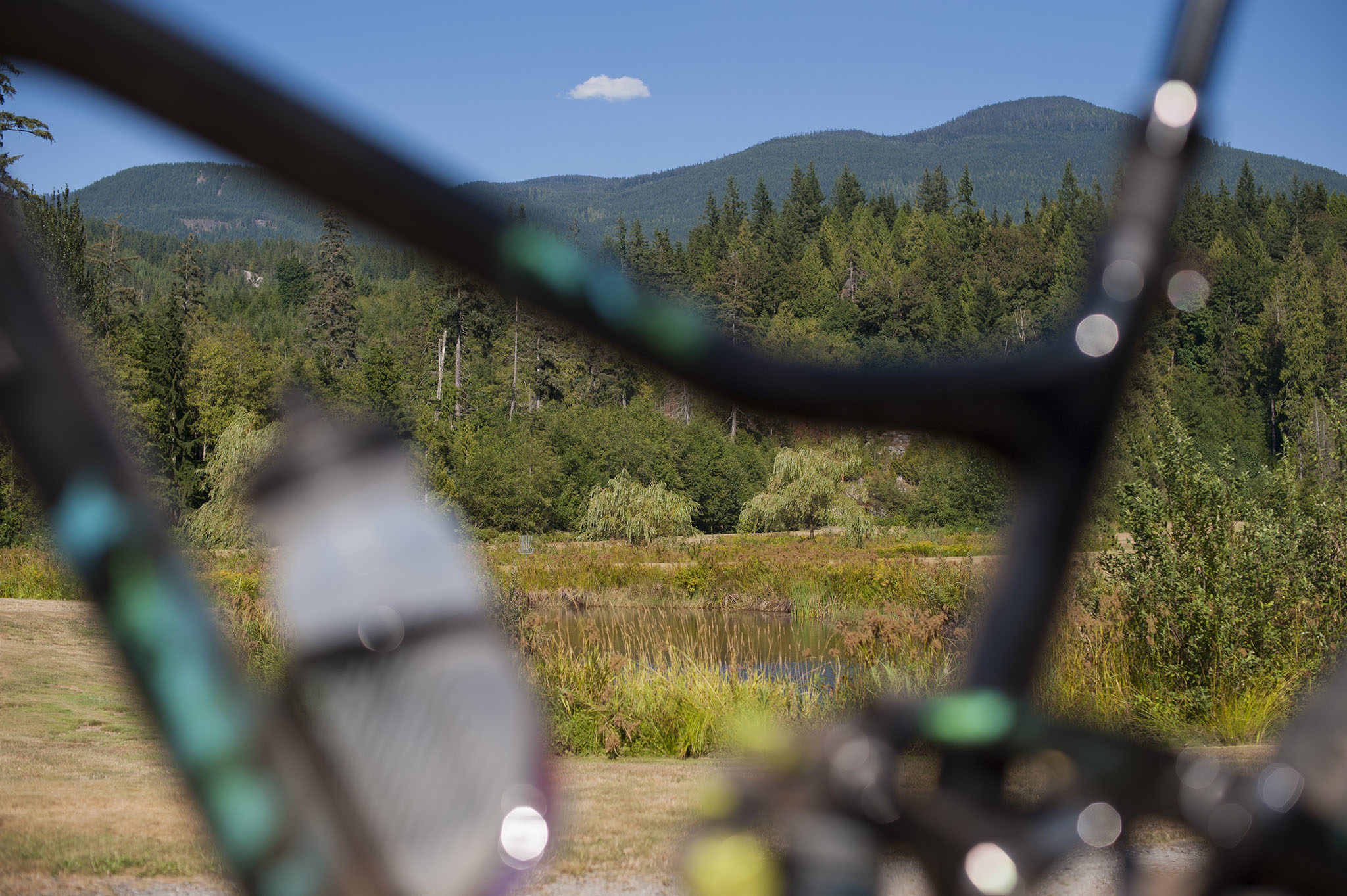 Car quelques courbes serrées ascendantes ont laissé apprécier aussi la pertinence de cette potence et de ce stack raccourcis : la roue avant se place où on le souhaite, entre les racines et les cailloux saillants de Squamish, que la sécheresse de cet été 2018 met particulièrement à nu. L’arrière, lui, a toujours suivi de façon imperturbable durant ce galop d’essai.