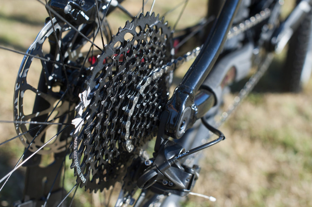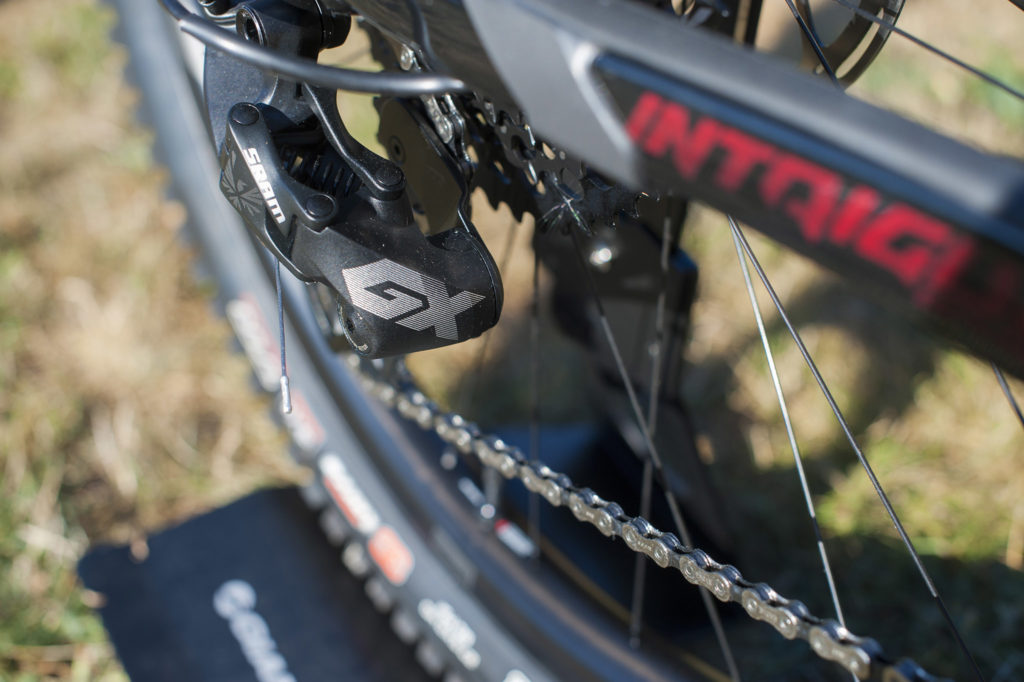 Tout comme les freins, passés en Guide RS, la transmission descend d’une catégorie mais reste Sram, avec du GX au lieu de l’X01. Plateau de 30 dents à l’avant et cassette 10×50, pas de changement ici non plus.