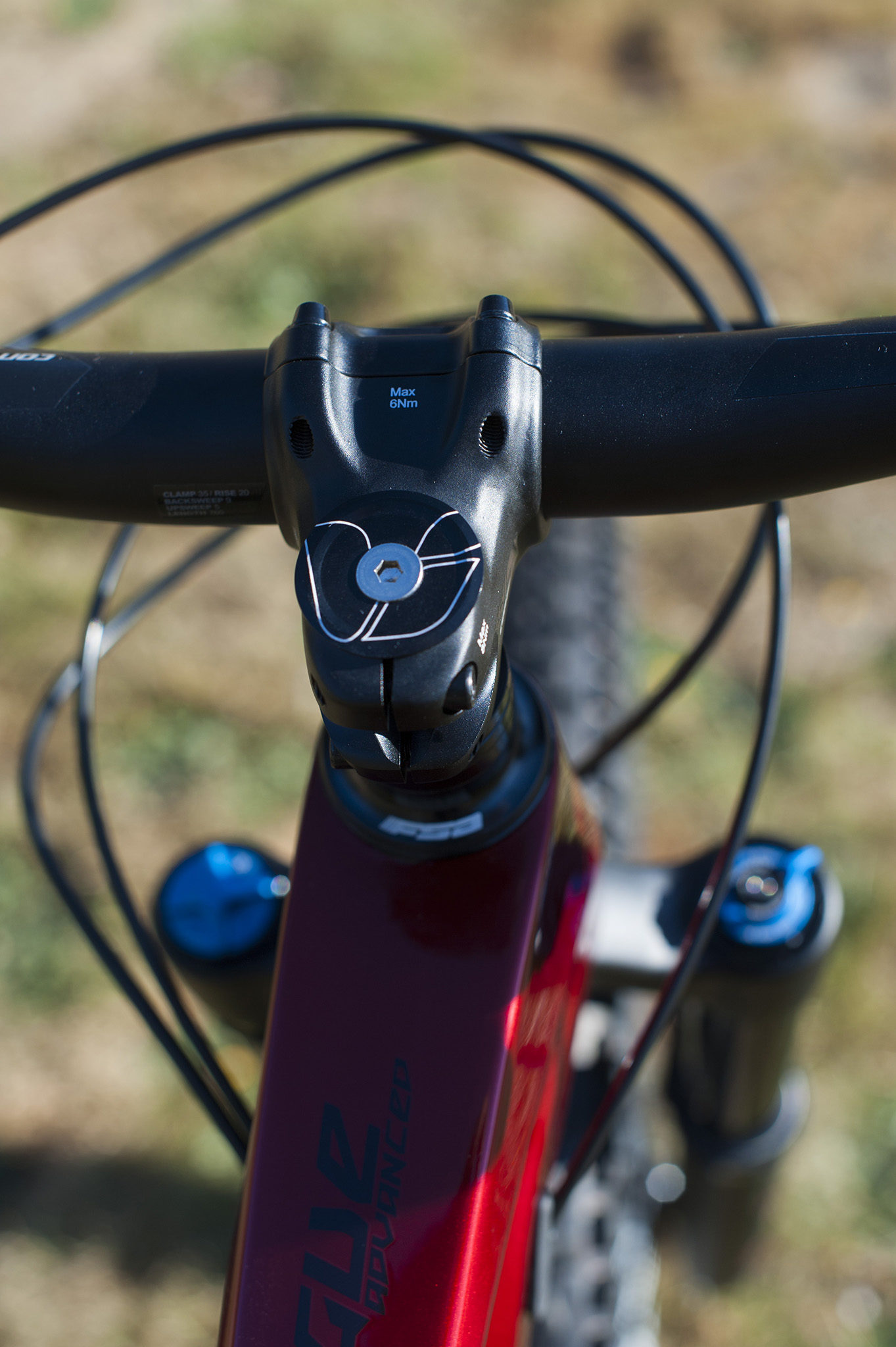 Une fois en selle, on peut apprécier la vue sur la peinture de cadre soignée de cette version haut de gamme. Assortie aux embouts de guidon, à la visserie du pack DVO et au vernis des filles de l’équipe Liv, ça fait son effet « jusqu’au bout des ongles».