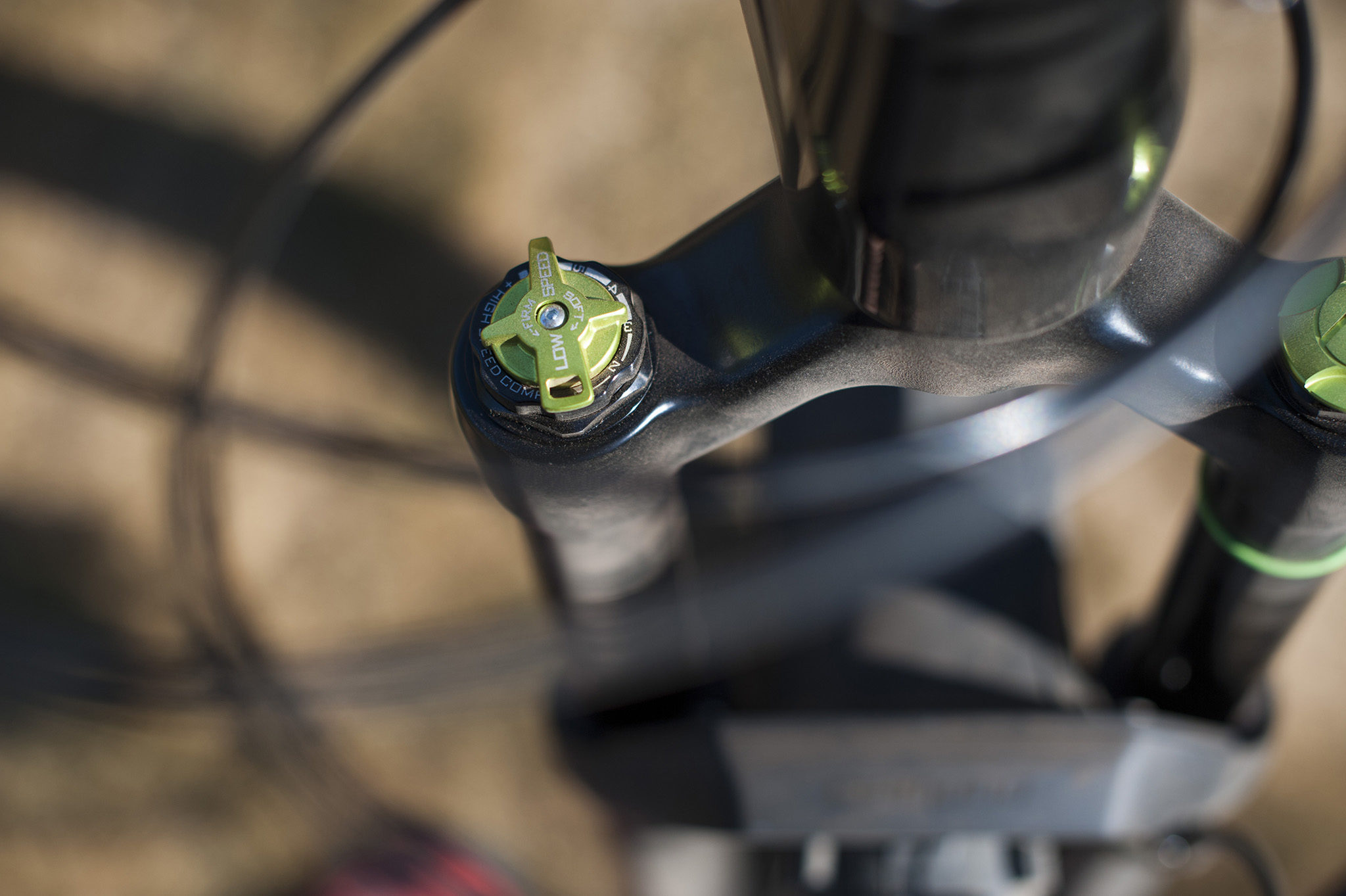 Toutefois, quitte à sacrifier encore un peu plus au rendement et afin de garder l’adhérence pour franchir les racines en montée, nous avons préféré placer l’amortisseur en position médiane – la position fermée ayant tendance, dans cette configuration sur un sol poussiéreux assez glissant, à occasionner quelques pertes de grip sur les relances trop appuyées.