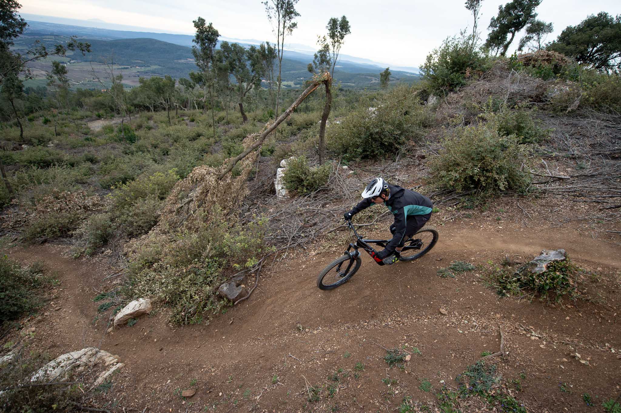 D’entrée de jeu, on bouge vite et facilement sur le vélo. L’ensemble est compact et les bases très courtes de la machine sont une aide sur ce point. Le vélo est un véritable petit jouet quand il est question de se placer dans les virages et de changer d’angle. On tourne très facilement et c’est un point positif sur les sentiers étroits de Massa Marittima.