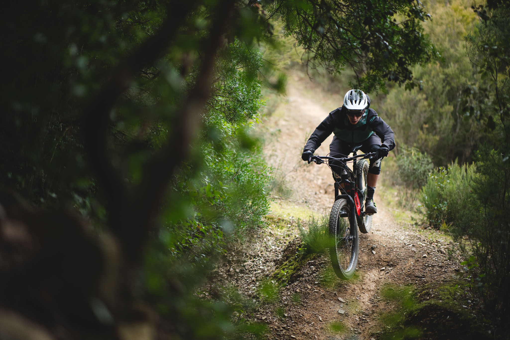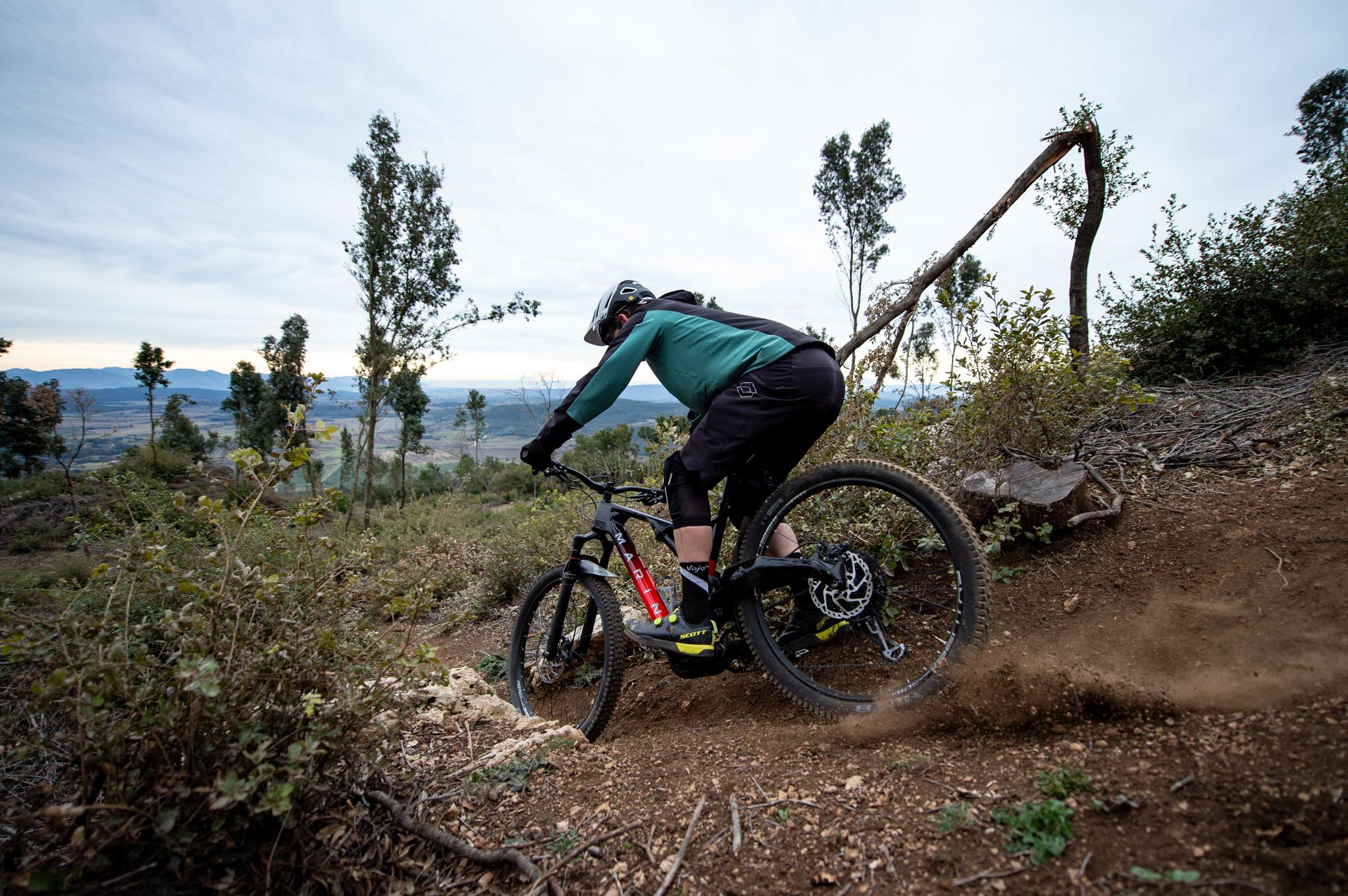 C’est sur les sentiers de Massa Marittima (Toscane – Italie), préparés par les « Trail Brothers », que nous grimpons sur le nouveau Marin Mount Vision. Deux modèles sont disponibles : le Mount Vision 8 et le 9. Pour 1m83, nous montons sur un vélo Mount Vision 8 en taille L. L’ensemble paraît assez court avec une potence de 35mm, mais on trouve toutefois nos marques. Le SAG est à régler à 25%, selon les recommandations de Marin.