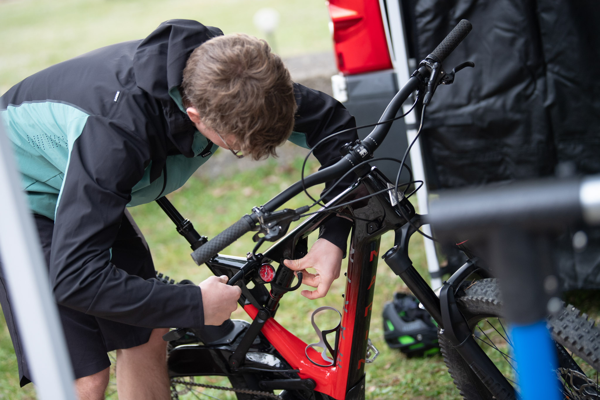 Ce qui caractérise le vélo, c’est avant tout sa suspension baptisée « Naild R3ACT – 2 Play » développée avec le bureau d’ingénierie Naild.