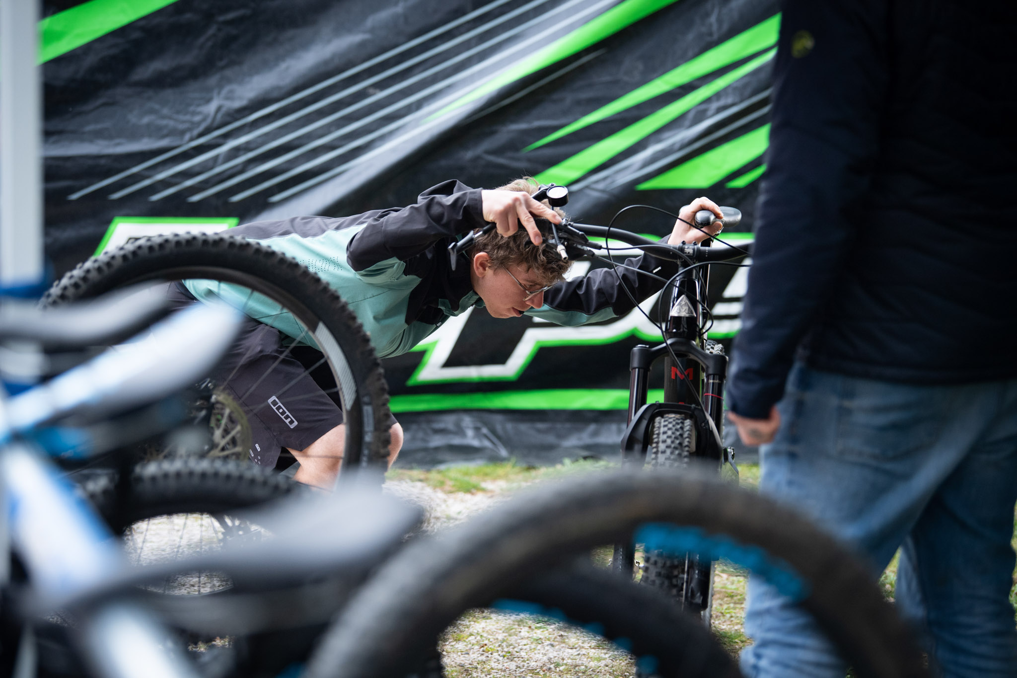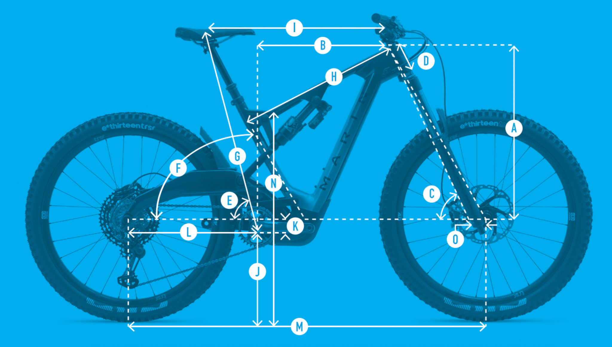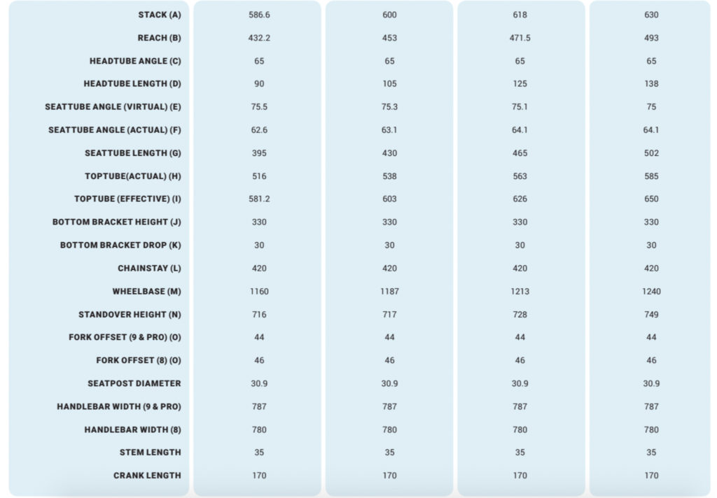 Cette cinématique est associée à une géométrie en accord avec les ambitions du vélo : les bases sont très courtes (420mm) et on retrouve un reach de 453mm en taille M ainsi qu’un angle de direction de 65 degrés. Le boitier de pédalier est à 330mm du sol.