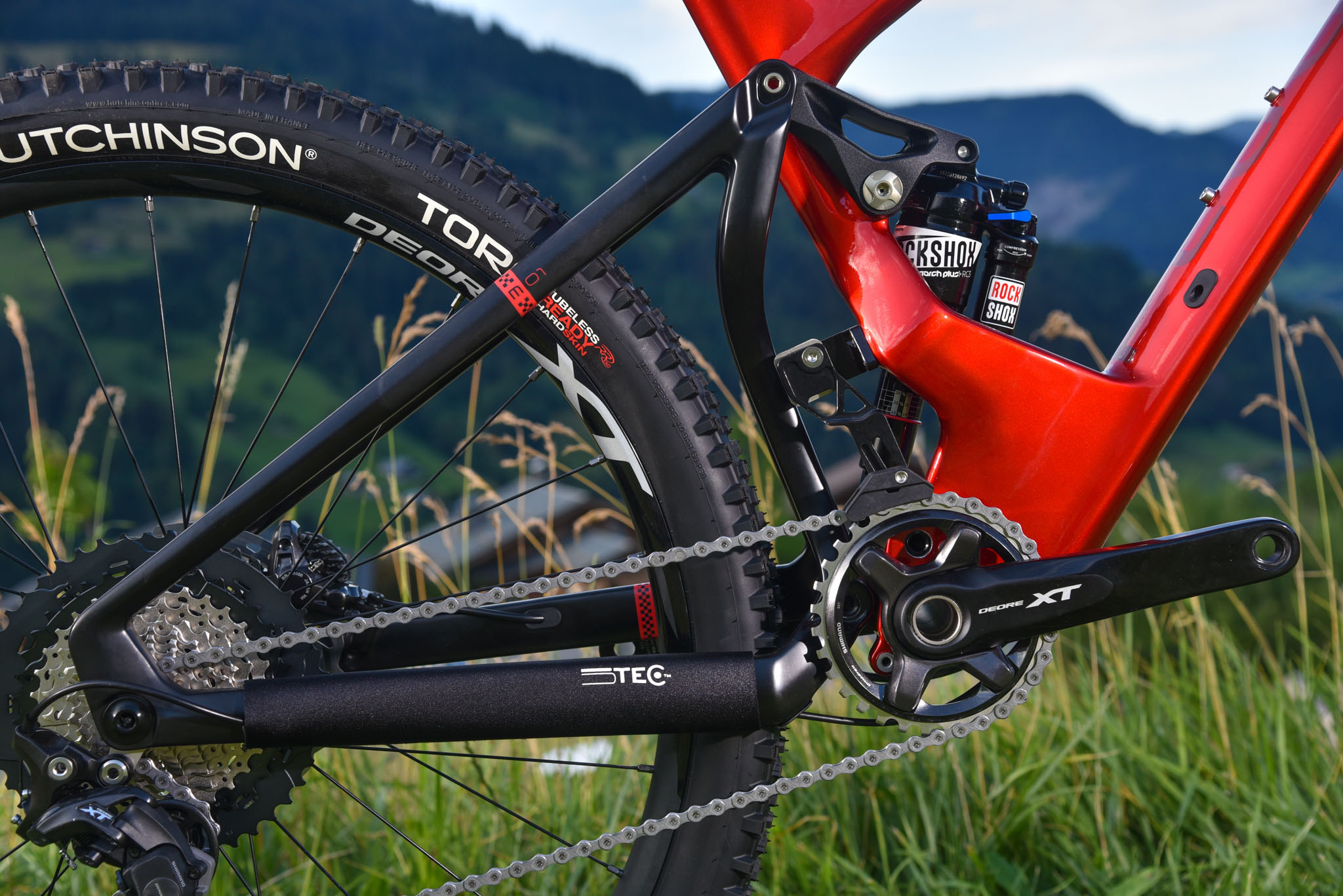 Dans la relance ascendante de la Toutafond, on a apprécié le bon rendement du M01 FS, lié aux bases courtes et à la rigidité du triangle arrière en carbone. Une rigidité qui, si elle se ressent, ne nous a pas, durant ce court roulage, perturbés. Le choix de la contrebalancer par les roues plus “tolérantes” que sont les Shimano XT (plutôt qu’une option tout carbone, qui aurait renforcé ce caractère) semble avoir été pertinent.