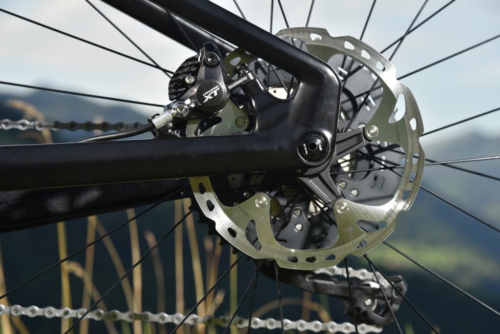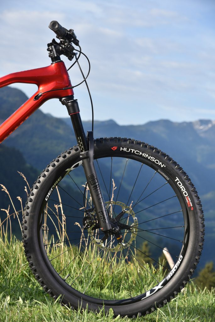 Dans la relance ascendante de la Toutafond, on a apprécié le bon rendement du M01 FS, lié aux bases courtes et à la rigidité du triangle arrière en carbone. Une rigidité qui, si elle se ressent, ne nous a pas, durant ce court roulage, perturbés. Le choix de la contrebalancer par les roues plus “tolérantes” que sont les Shimano XT (plutôt qu’une option tout carbone, qui aurait renforcé ce caractère) semble avoir été pertinent.