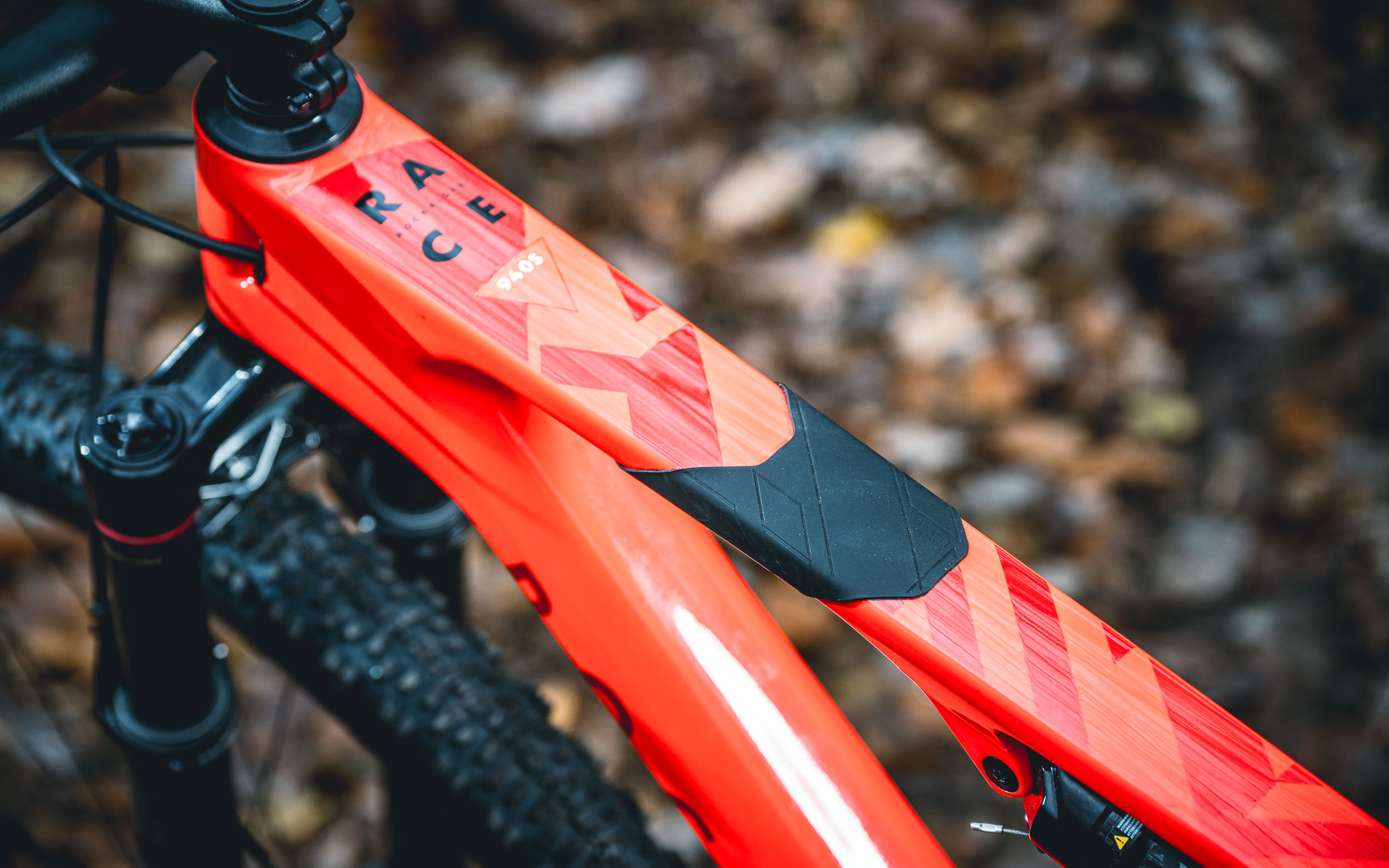 Pensé pour la performance et à destination de la compétition, le Race 940 S est entièrement construit en carbone. « L’objectif était d’optimiser le ratio poids/rigidité. Tout le jeu a été d’obtenir un vélo suffisamment rigide pour la pratique actuelle du cross-country, mais capable de filtrer les vibrations pour conserver du confort. Plutôt que de parler de rigidité pure, on préfère parler de recherche de la meilleure réactivité possible pour le châssis » continue l’ingénieur produit. Sur la balance, le cadre affiche un poids de 1,655 kg sans amortisseur, et 1,9 kg une fois équipé de la suspension arrière.