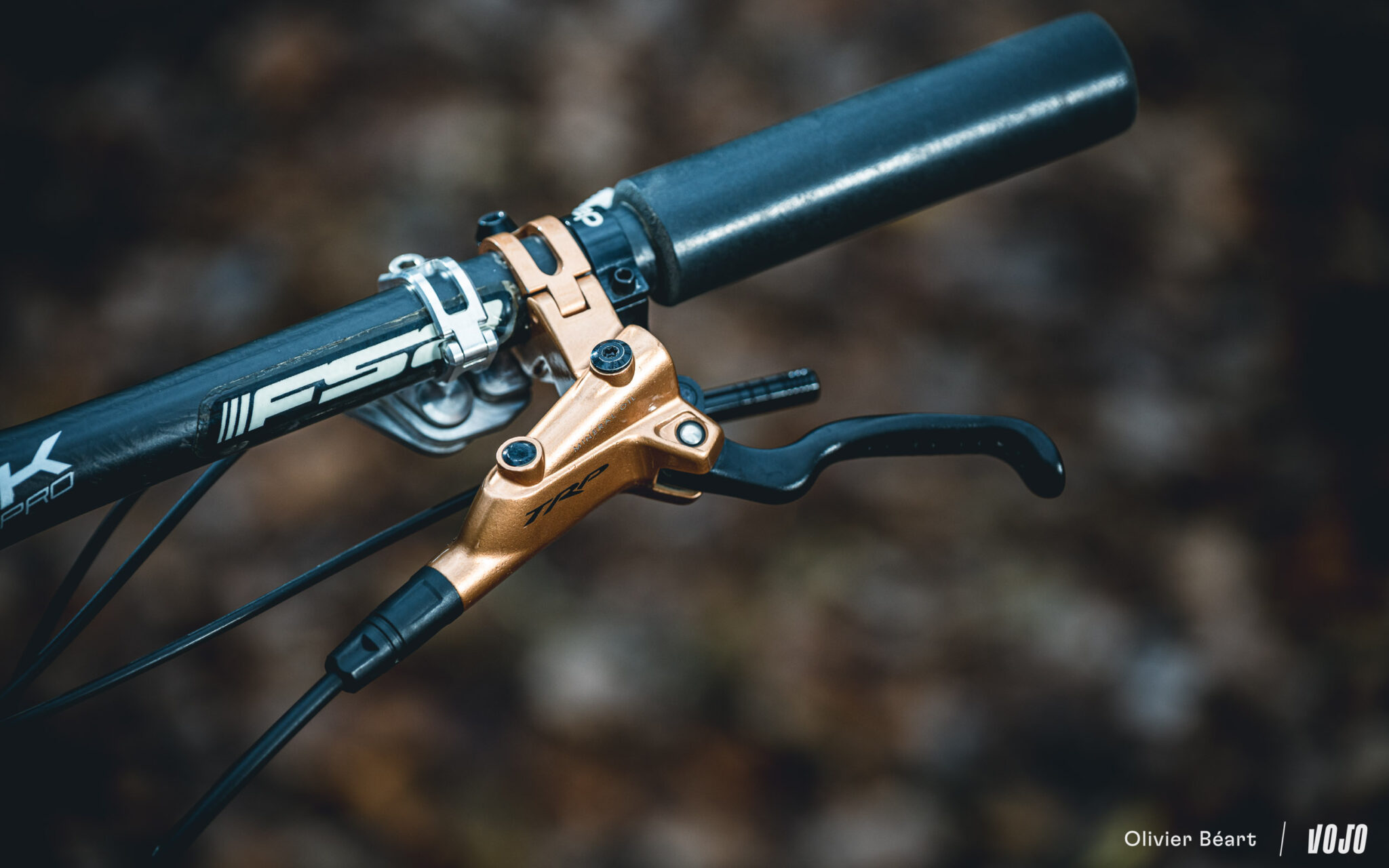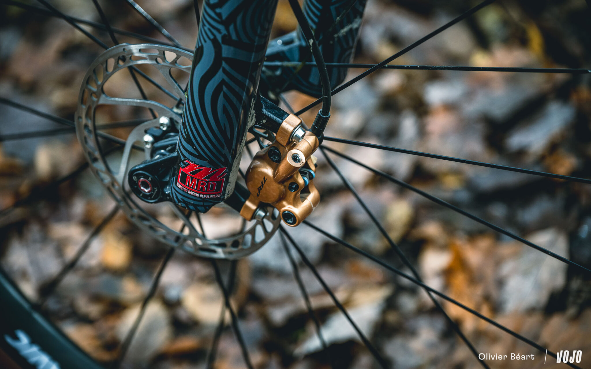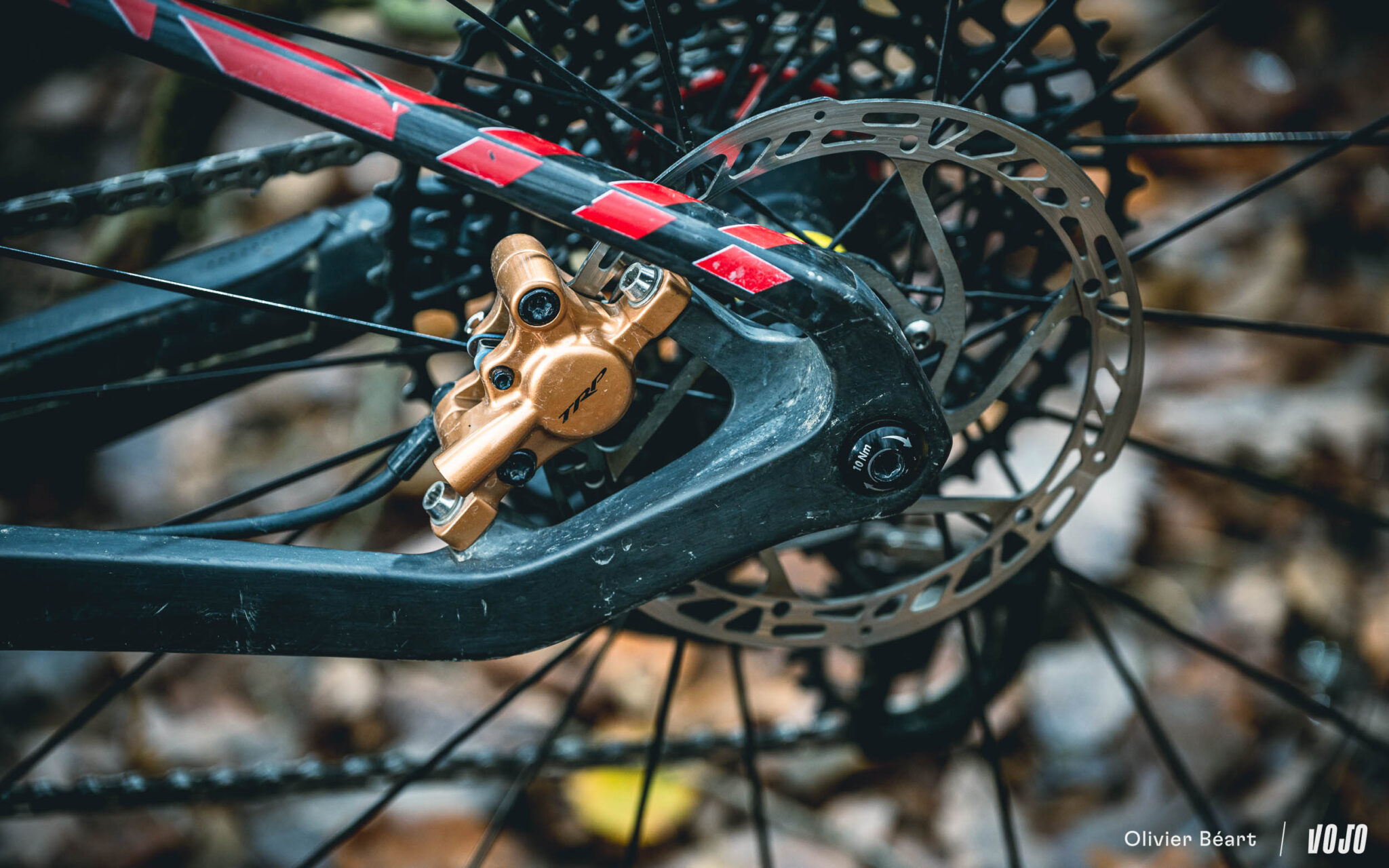 Si l’on n’a pas droit à la jolie robe orange à l’image de ceux que l’on retrouve sur le vélo d’Emeline Detilleux, ce sont pourtant bien les TRP Slate X2 qui équipent ce Race 940 S de série, à savoir les freins développés et roulés par le Rockrider Ford Racing Team. Ils sont associés à des disques flottants de 180 mm à l’avant et 160 mm à l’arrière.