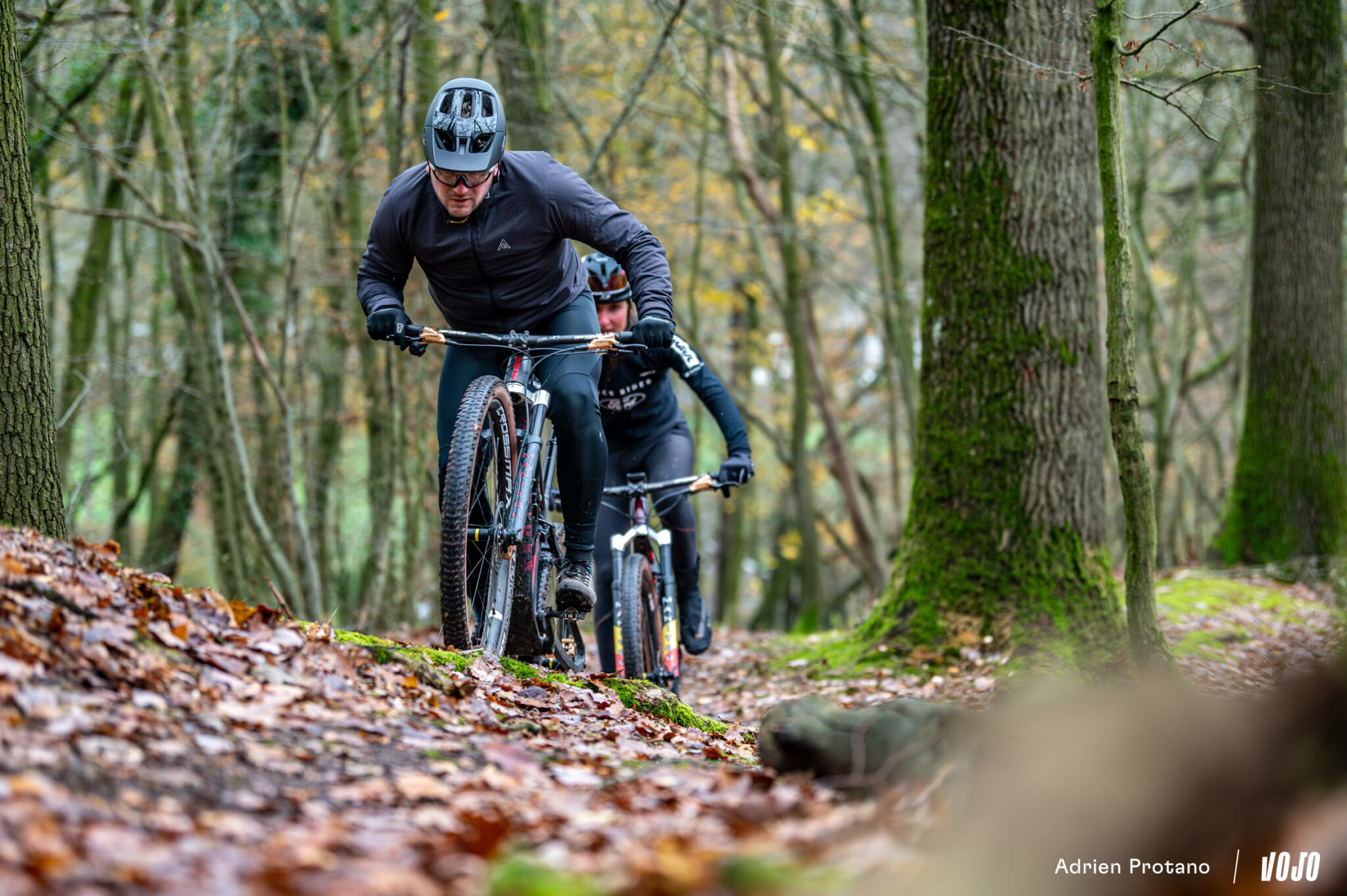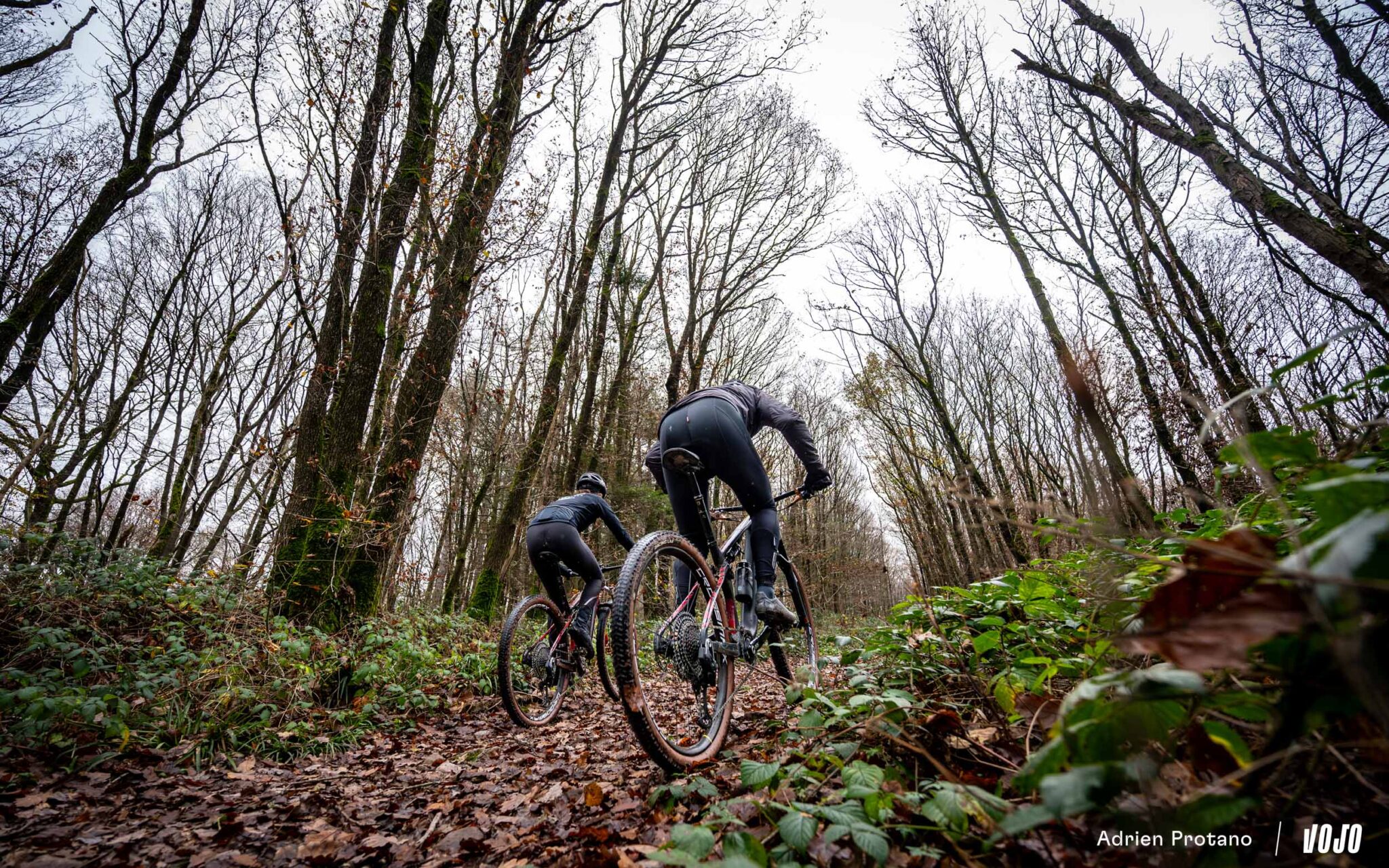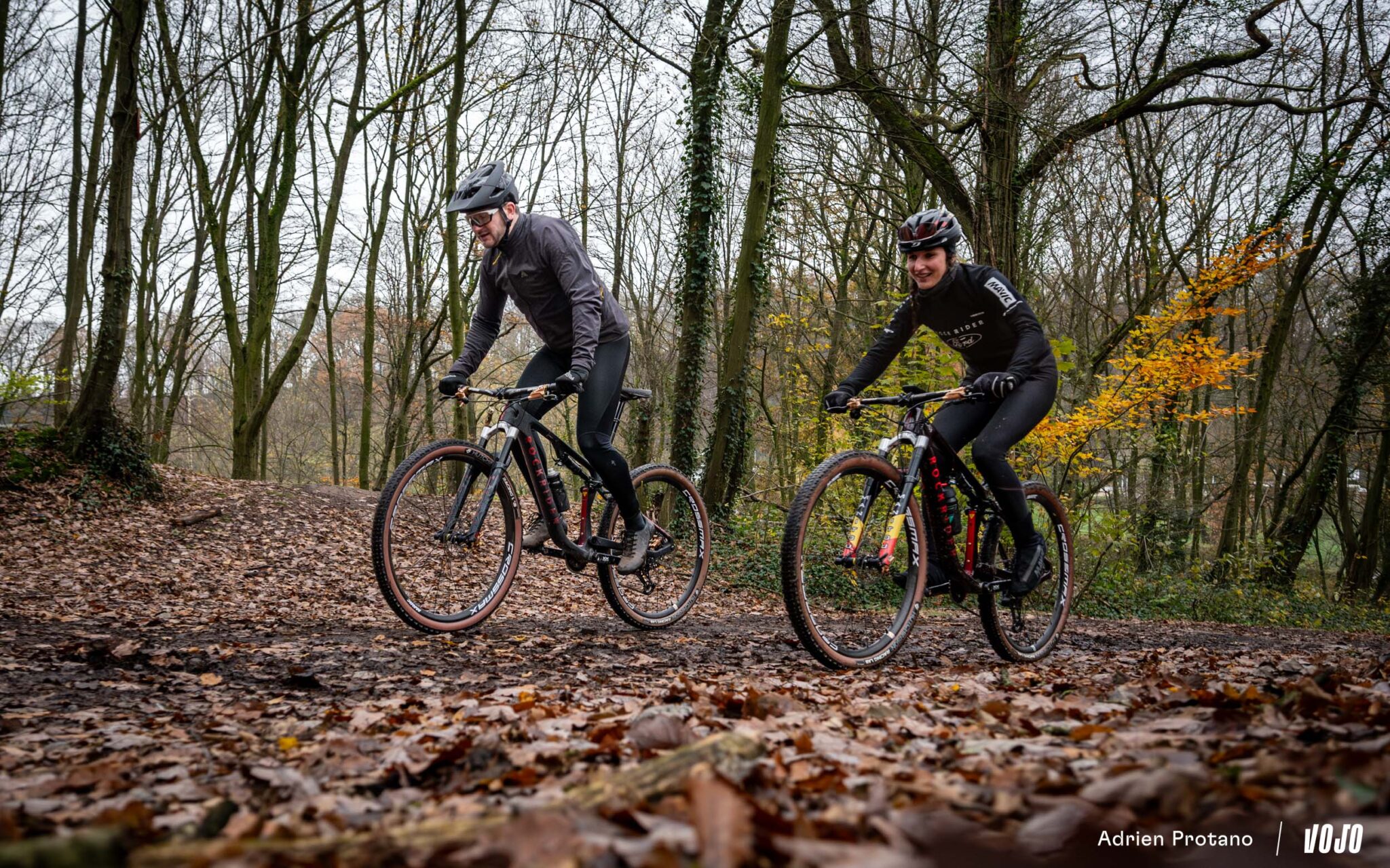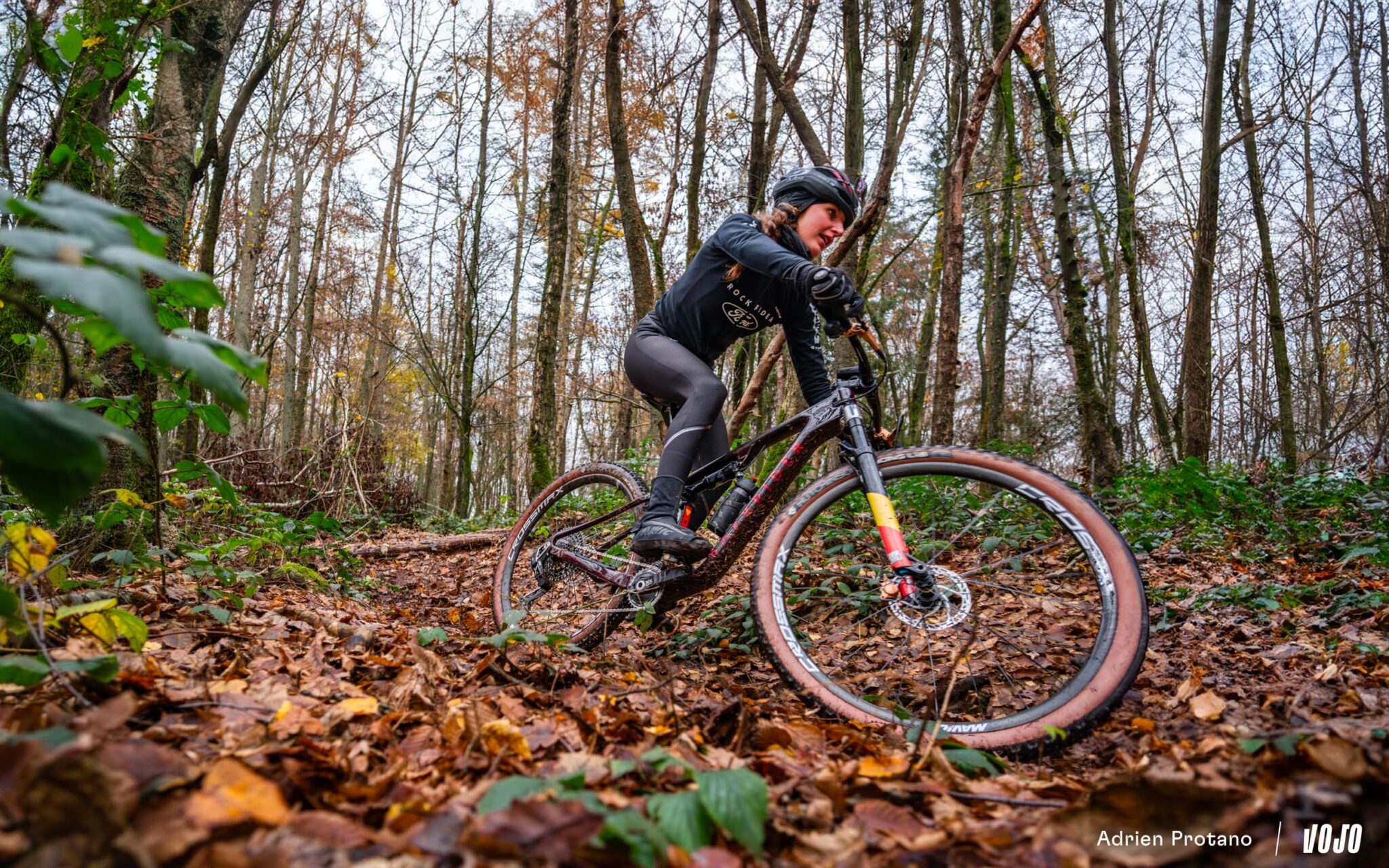Comme expliqué plus haut, la sortie du vélo de série est prévue pour le printemps, et les premiers vélos de test officiels seront disponibles peu avant. Mais, à force de voir ce vélo en course et de recevoir des questions de lecteurs, nous avons fait le forcing auprès de la marque et du team pour pouvoir l’essayer dès cet hiver. La solution : profiter d’une rencontre/interview avec la championne de Belgique Emeline Detilleux pour lui emprunter son vélo d’entraînement et l’accompagner lors d’une sortie non loin de chez elle, dans le Hainaut et les bois de l’Abbaye d’Aulne que nous connaissons bien.