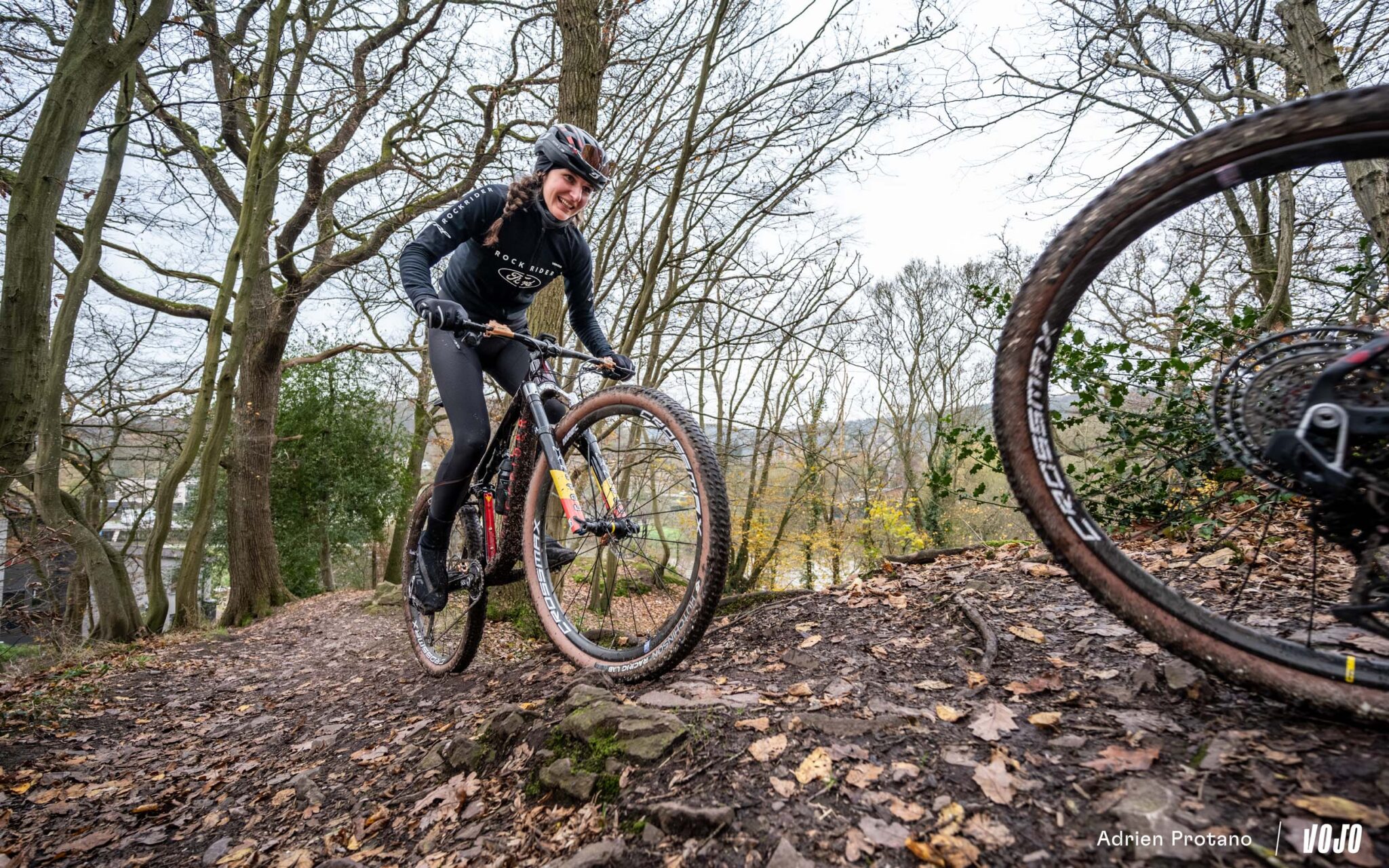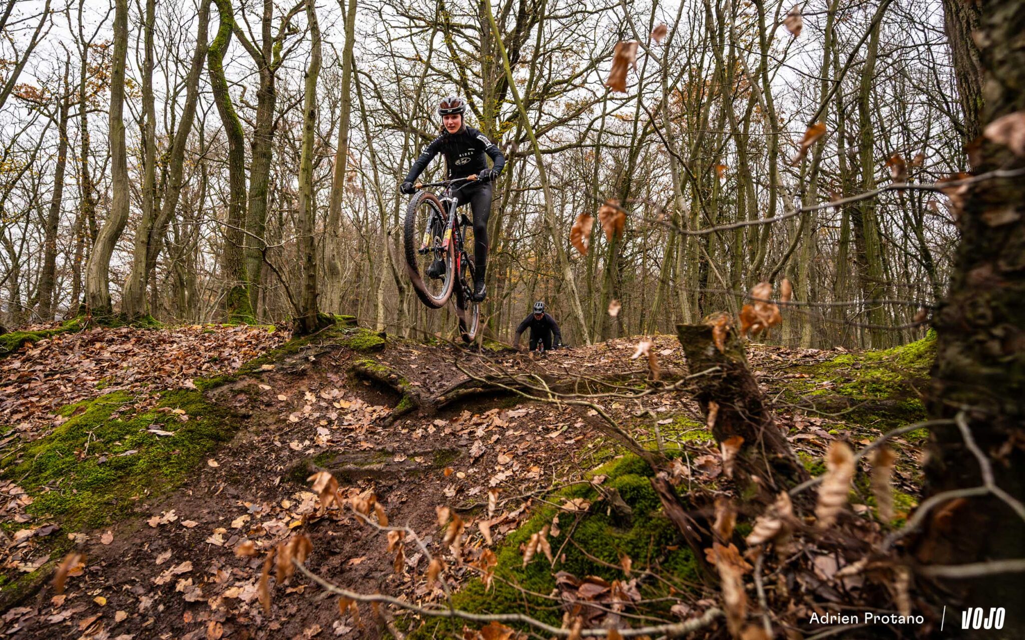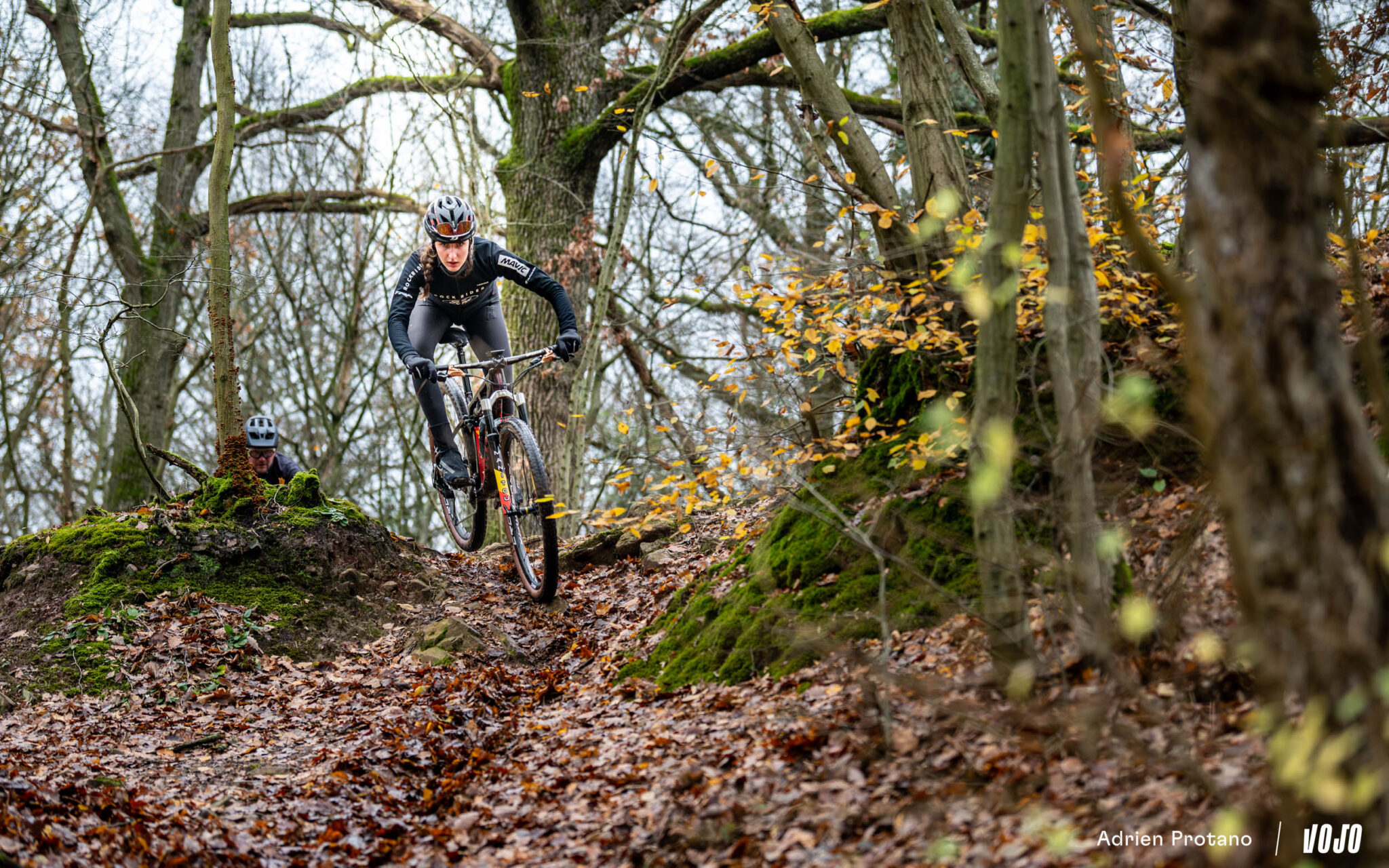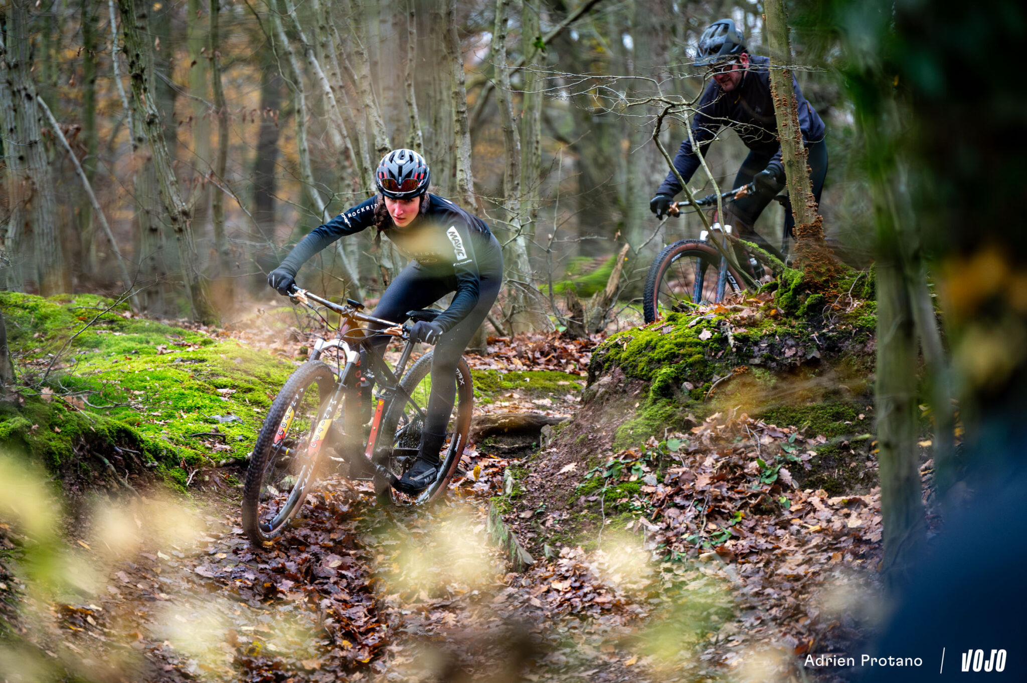 Comme expliqué plus haut, la sortie du vélo de série est prévue pour le printemps, et les premiers vélos de test officiels seront disponibles peu avant. Mais, à force de voir ce vélo en course et de recevoir des questions de lecteurs, nous avons fait le forcing auprès de la marque et du team pour pouvoir l’essayer dès cet hiver. La solution : profiter d’une rencontre/interview avec la championne de Belgique Emeline Detilleux pour lui emprunter son vélo d’entraînement et l’accompagner lors d’une sortie non loin de chez elle, dans le Hainaut et les bois de l’Abbaye d’Aulne que nous connaissons bien.