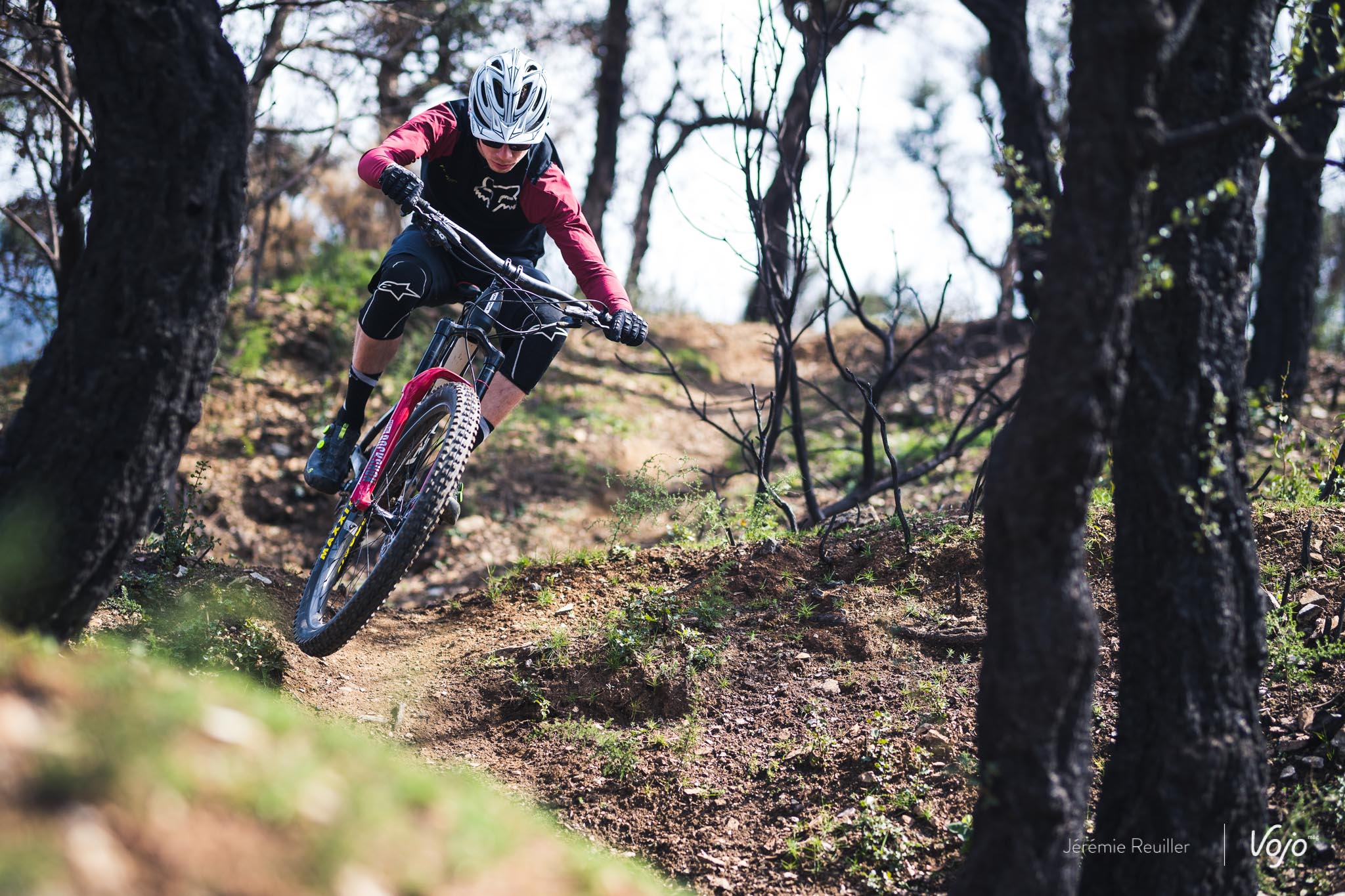 On ne lésine plus sur le blocage avec cette poignée Twistloc qu’on active à la moindre petite relance. Cette dernière répond présent et s’utilise sans encombre. Il faudra simplement intégrer un mouvement supplémentaire dans la transition « montée-descente » en jouant simultanément avec le shifter du dérailleur arrière et la commande de tige de selle. Le temps de notre petite prise en main, on repère toutefois un cache d’accès au câble un peu tremblotant – la maladie de ce prototype, nous annonce-t-on – mais le reste semble fiable et prêt à être lancé en production. Les amortisseurs 3 positions ne sont toutefois pas compatibles pour le moment avec cette commande.