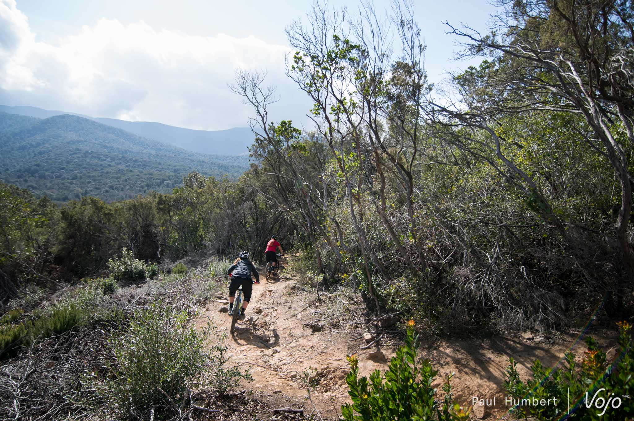 Une fois ce secteur validé, on grimpe dans les navettes organisées par le camping pour rejoindre les montages et les nombreux trails construits et entretenus par les mêmes personnes. De la piste de descentes aux longs sentiers naturels, on retrouve, n’ayons pas peur des mots, tout ce qui fait une bonne sortie à vélo. Les terrains sont variés, tantôt meubles, tantôt très durs sur les rochers, et constituent un excellent terrain d’essai. Ce dernier, et la dolce vita bien entendu, nous a attiré et on nous souffle que Vojo n’est pas le seul média à venir profiter de ce cadre pour réaliser des essais.