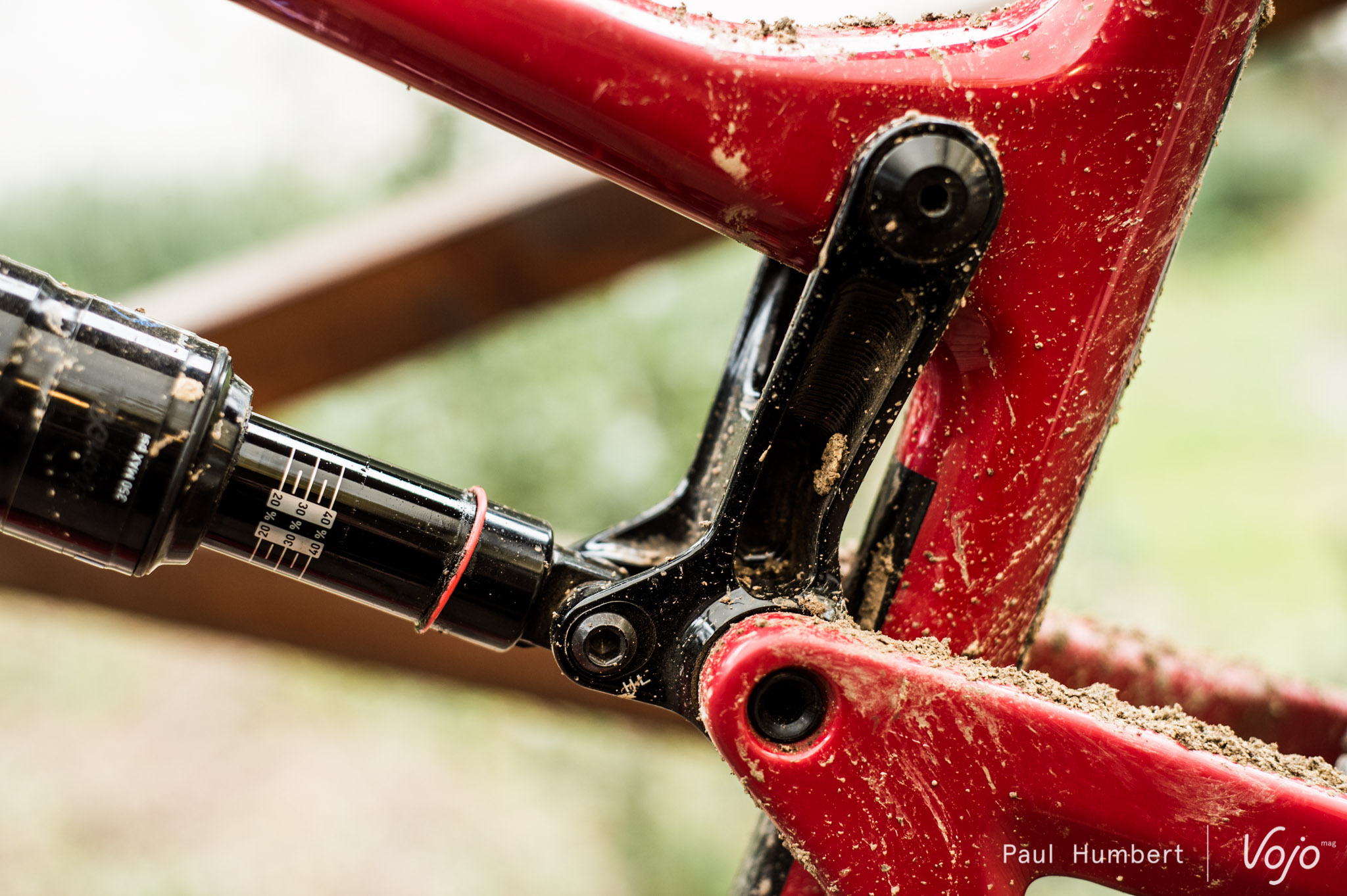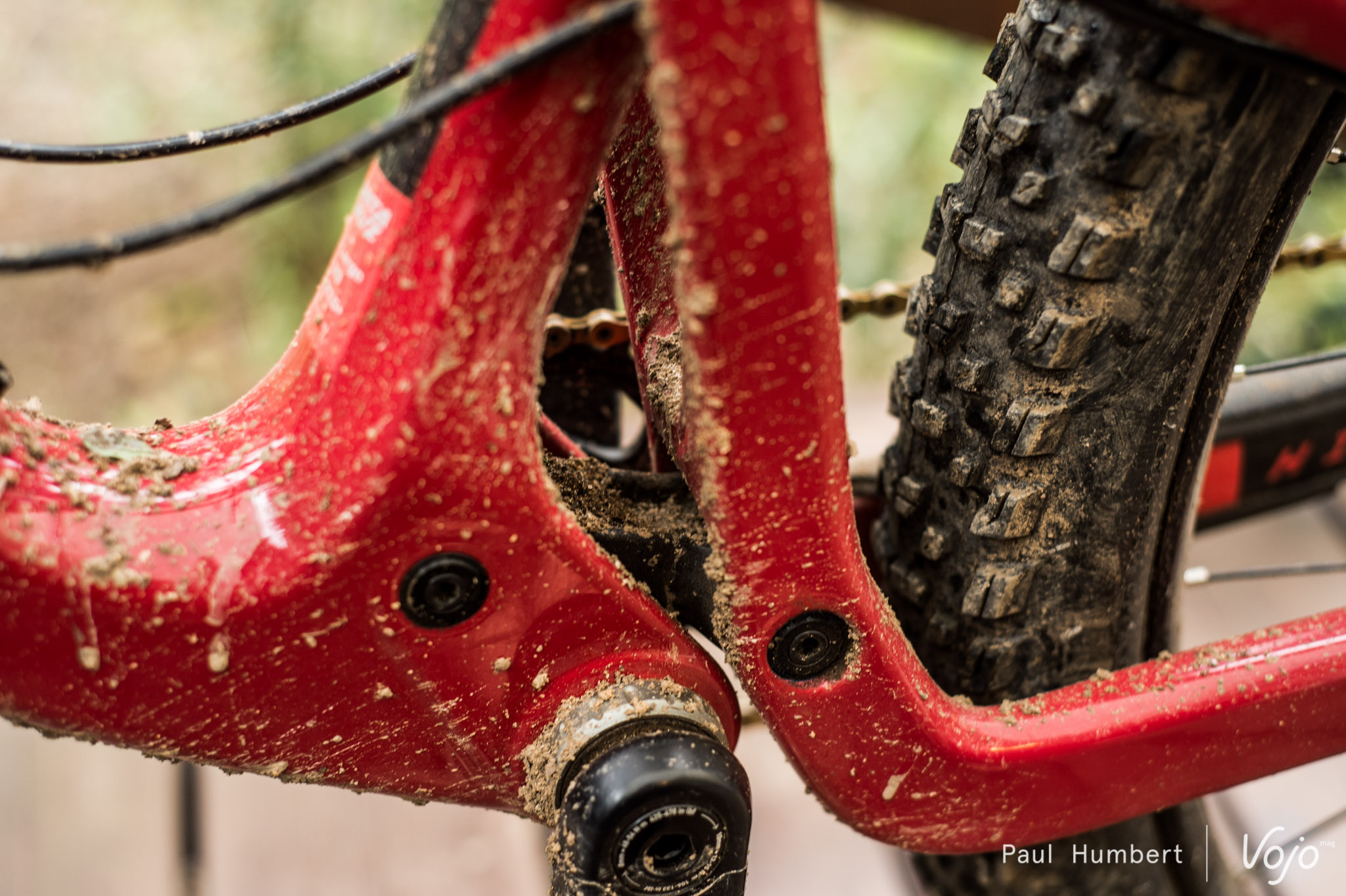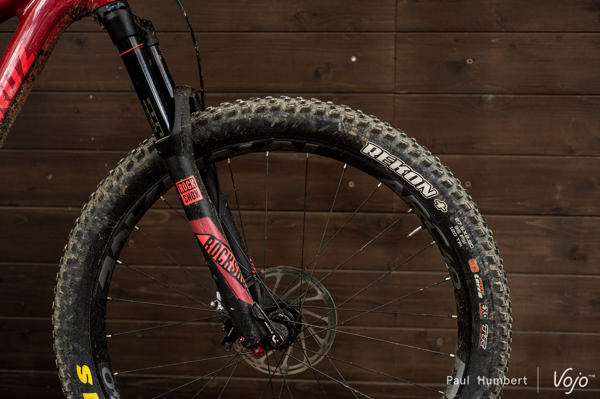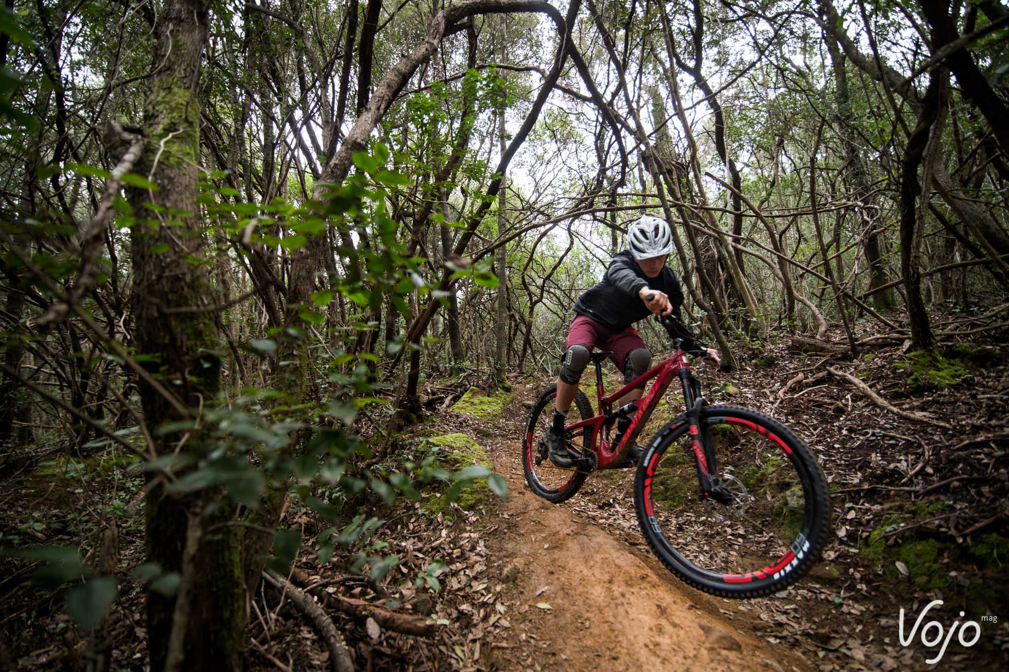 La première phase de réglage du vélo nous a demandé un petit peu plus de temps qu’habituellement. En effet, avec un SAG à 30%, il nous était difficile de prendre tout le débattement, même dans les portions défoncées. On ne ressent pas d’inconfort mais autant aller au fond des choses. Finalement, c’est vers 35% du débattement qu’on s’arrête en conservant toujours de très bonnes performances à la pédale.