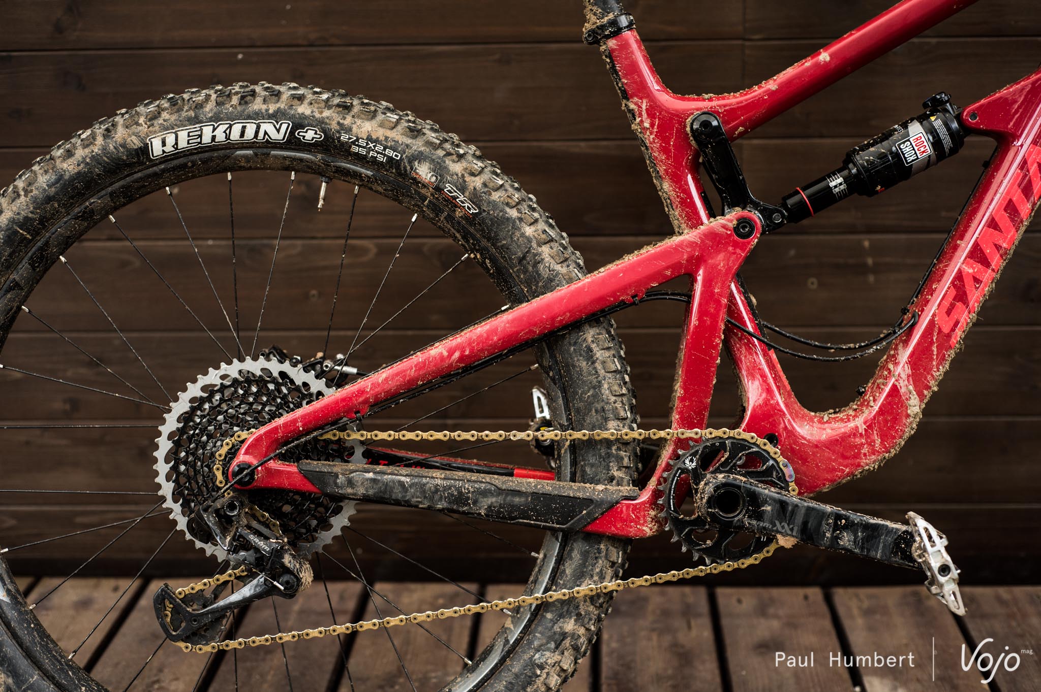 Mais revenons à notre mouton. Le Santa Cruz Hightower arrive dans nos mains avec ses roues de 27,5 Plus chaussées de pneus Maxxis Reckon 2.8. C’est avec eux que nous découvrons le vélo.