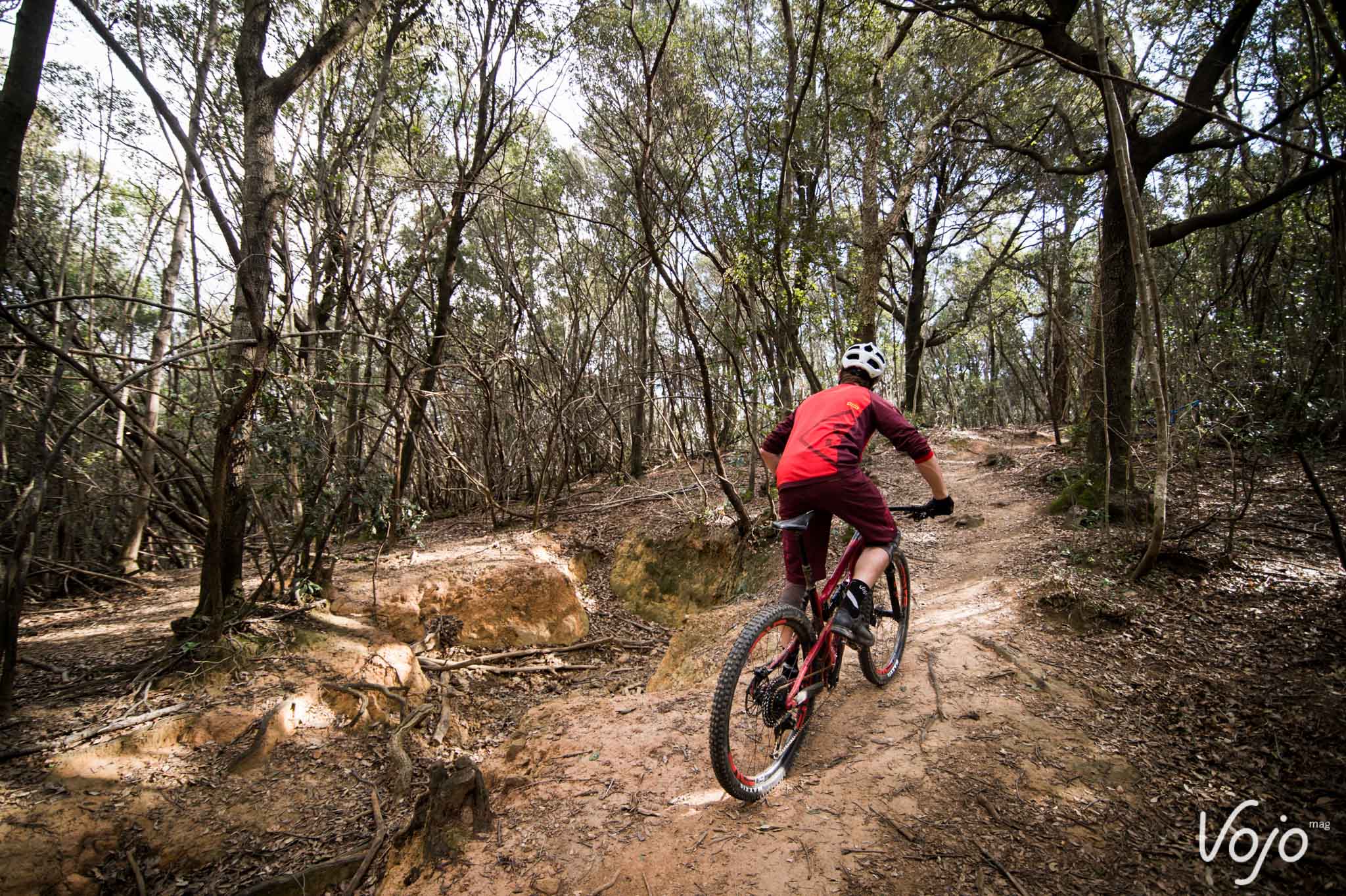 Une fois ce secteur validé, on grimpe dans les navettes organisées par le camping pour rejoindre les montages et les nombreux trails construits et entretenus par les mêmes personnes. De la piste de descentes aux longs sentiers naturels, on retrouve, n’ayons pas peur des mots, tout ce qui fait une bonne sortie à vélo. Les terrains sont variés, tantôt meubles, tantôt très durs sur les rochers, et constituent un excellent terrain d’essai. Ce dernier, et la dolce vita bien entendu, nous a attiré et on nous souffle que Vojo n’est pas le seul média à venir profiter de ce cadre pour réaliser des essais.