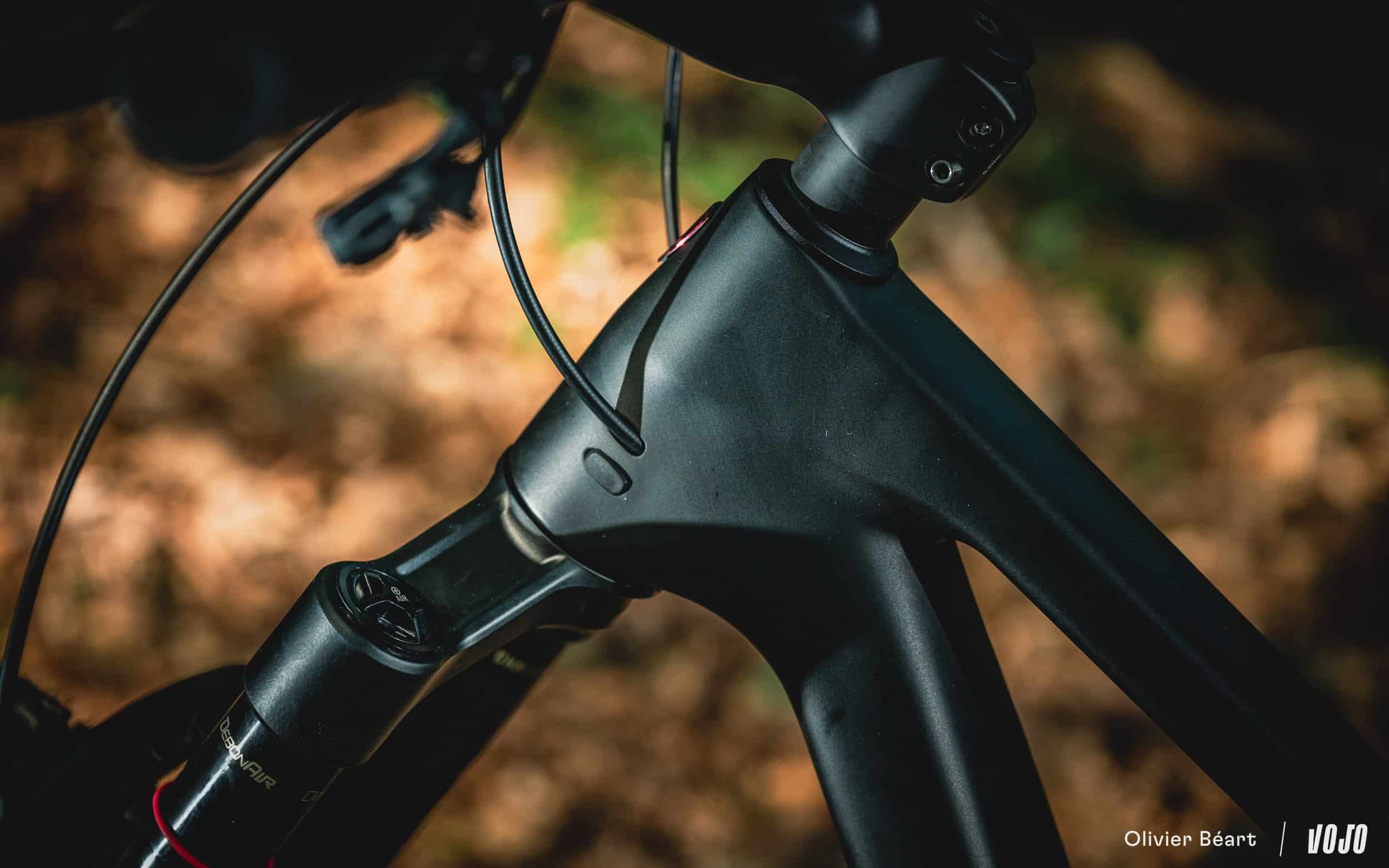 On l’a dit, le débattement reste identique à ce que l’on connaissait auparavant avec 120 mm à l’arrière et 130 mm à l’avant. Il est par contre possible de modifier le débattement arrière en optant pour un amortisseur dont la course est de 55 m pour augmenter le débattement arrière à 130mm. Étant donné que le cadre accepte le montage d’une fourche entre 120 et 140 mm de débattement, on peut songer à plusieurs configurations du même vélo : du cross-country en 120/120 mm équipé de composants légers jusqu’au vélo de trail plus costaud affichant 130/140 mm de débattement.