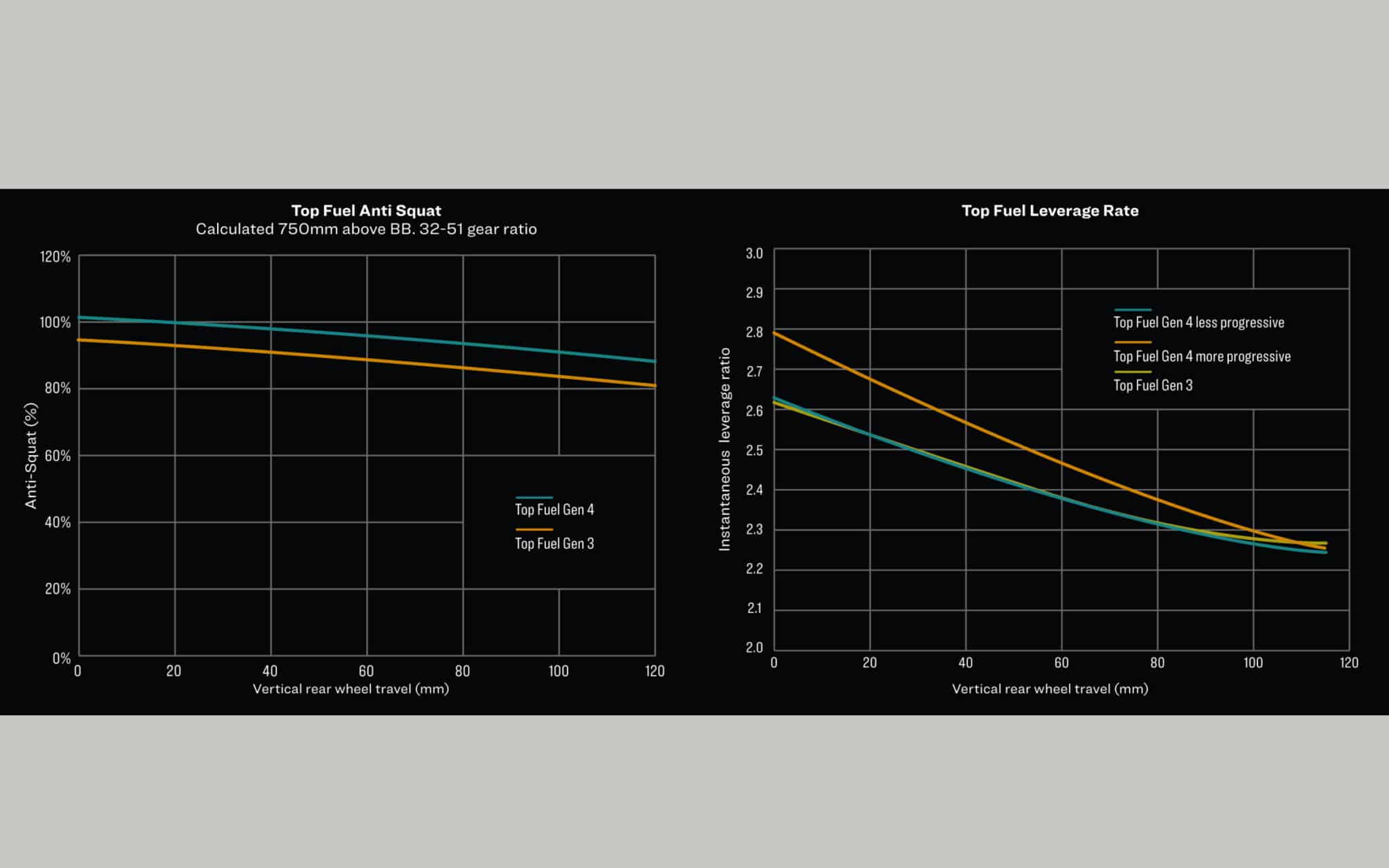 Dans cette configuration, le Top Fuel affiche une hauteur de boitier de pédalier plus basse pour davantage de stabilité, et une suspension plus sensible.