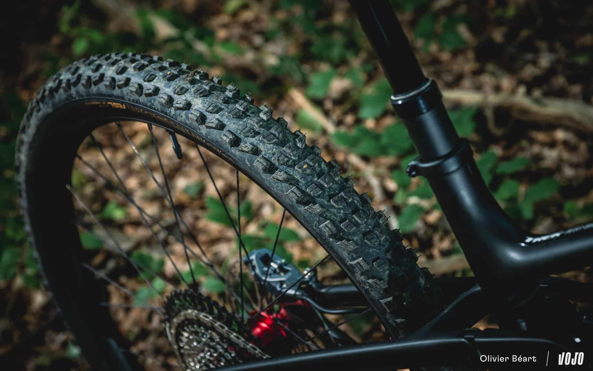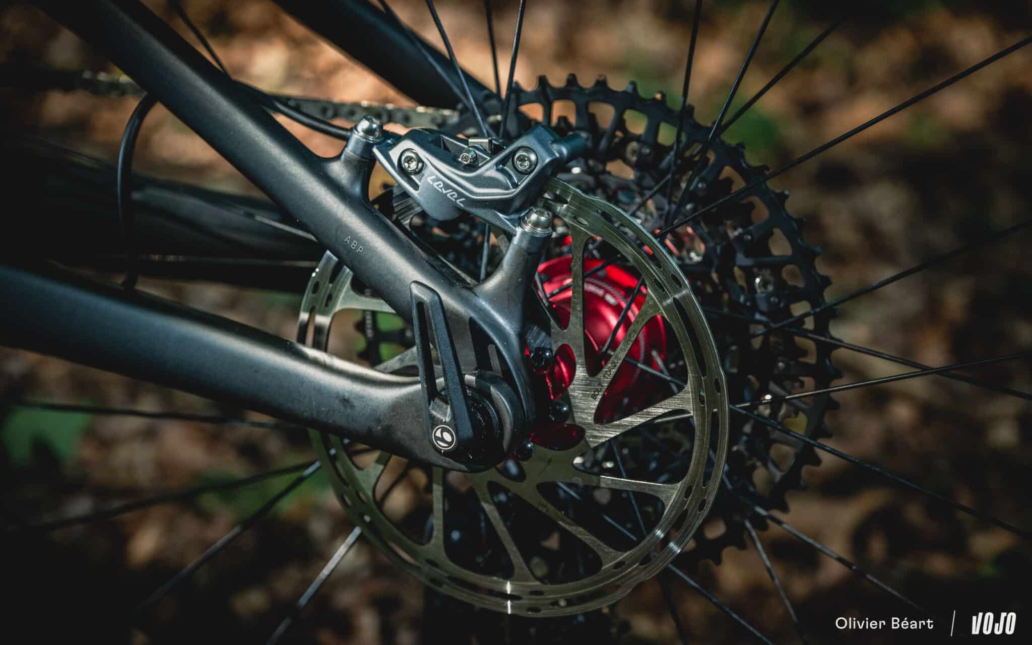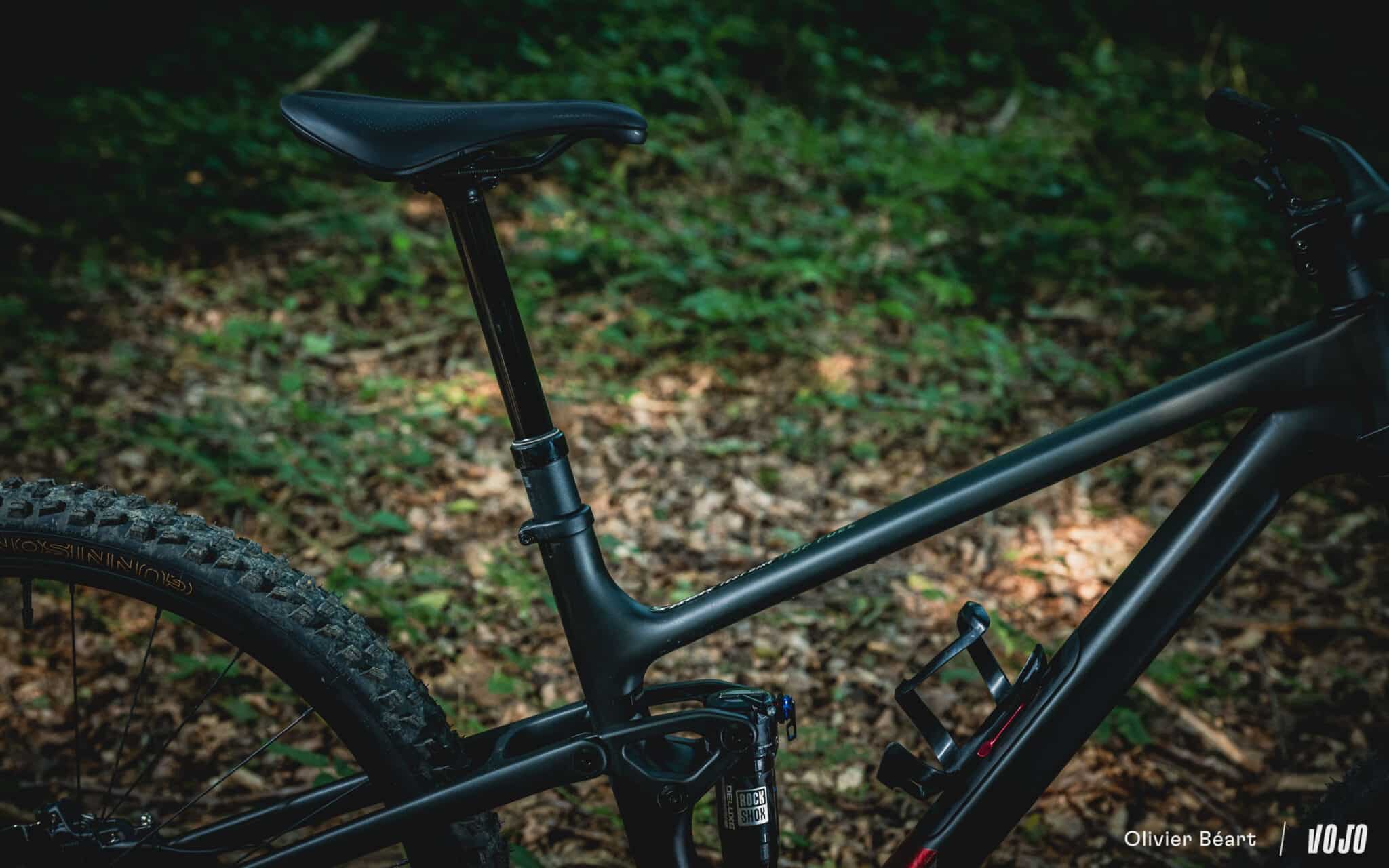 On l’a dit, le débattement reste identique à ce que l’on connaissait auparavant avec 120 mm à l’arrière et 130 mm à l’avant. Il est par contre possible de modifier le débattement arrière en optant pour un amortisseur dont la course est de 55 m pour augmenter le débattement arrière à 130mm. Étant donné que le cadre accepte le montage d’une fourche entre 120 et 140 mm de débattement, on peut songer à plusieurs configurations du même vélo : du cross-country en 120/120 mm équipé de composants légers jusqu’au vélo de trail plus costaud affichant 130/140 mm de débattement.