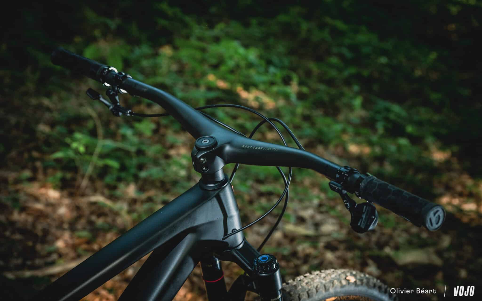 Par contre, un « défaut » a rapidement pointé le bout de son nez ! De série, le Top Fuel est équipé d’un poste de pilotage en une pièce dont le cintre est ridiculement large (820 mm). C’est un sujet que l’on vous a présenté en détail dans un article dédié : Coupez votre cintre, vous nous remercierez ! Si une telle largueur de cintre peut s’avérer intéressante sur des modèles de plus grandes tailles (et pour des pratiques plus engagées), nous ne sommes pas persuadés de l’intérêt sur un vélo de cross-country/trail en taille Medium/Large.