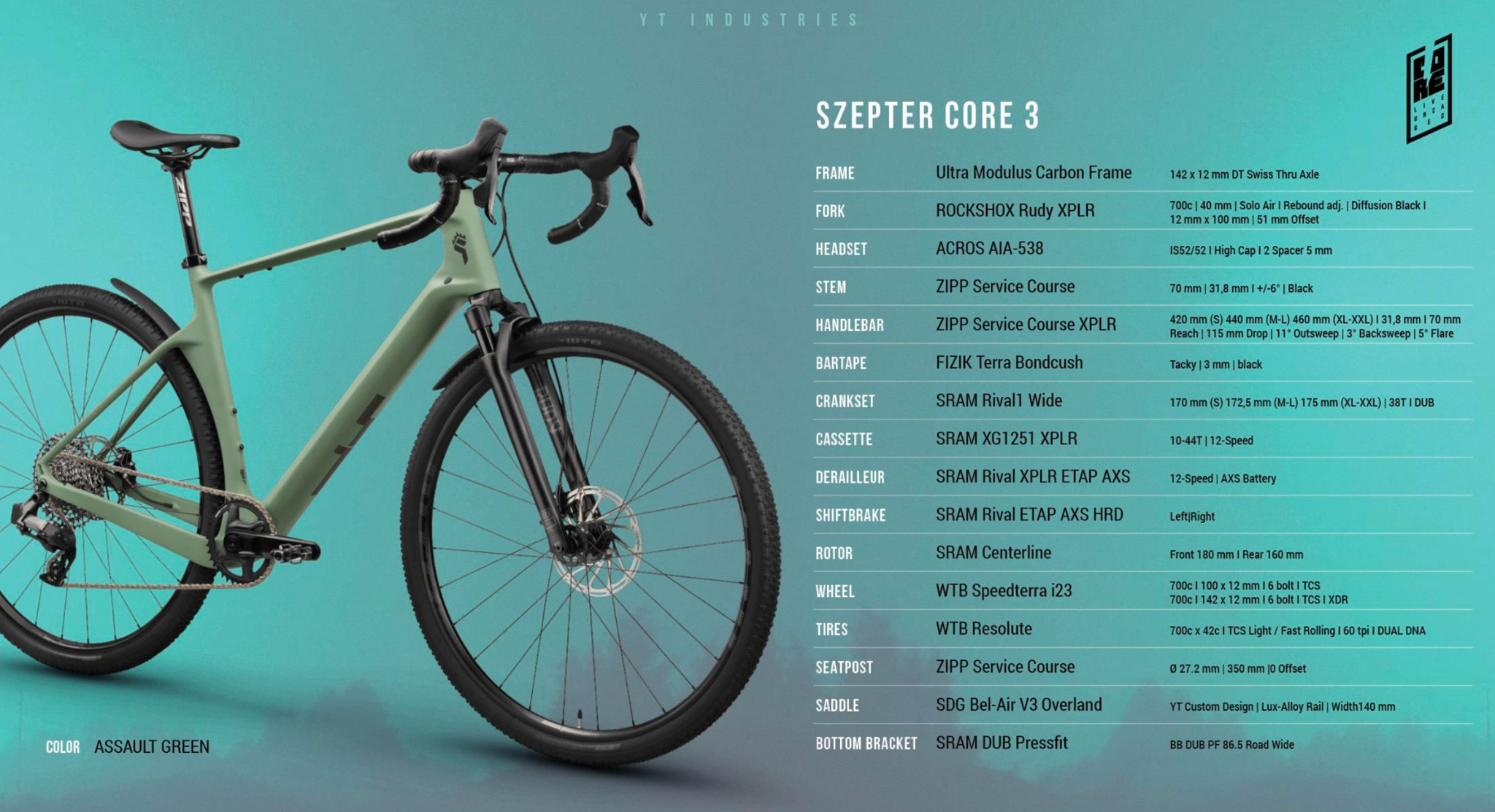 Un peu plus concrètement, la marque souhaite s’adresser à des vététistes en quête d’un nouveau vélo pour rouler toute l’année : en gravel pour le fun, et pourquoi pas au quotidien pour se déplacer. De la même manière, avec le Szepter, YT tend à s’éloigner des gravel « performance », des épreuves marathon ou même des vélos d’aventure.