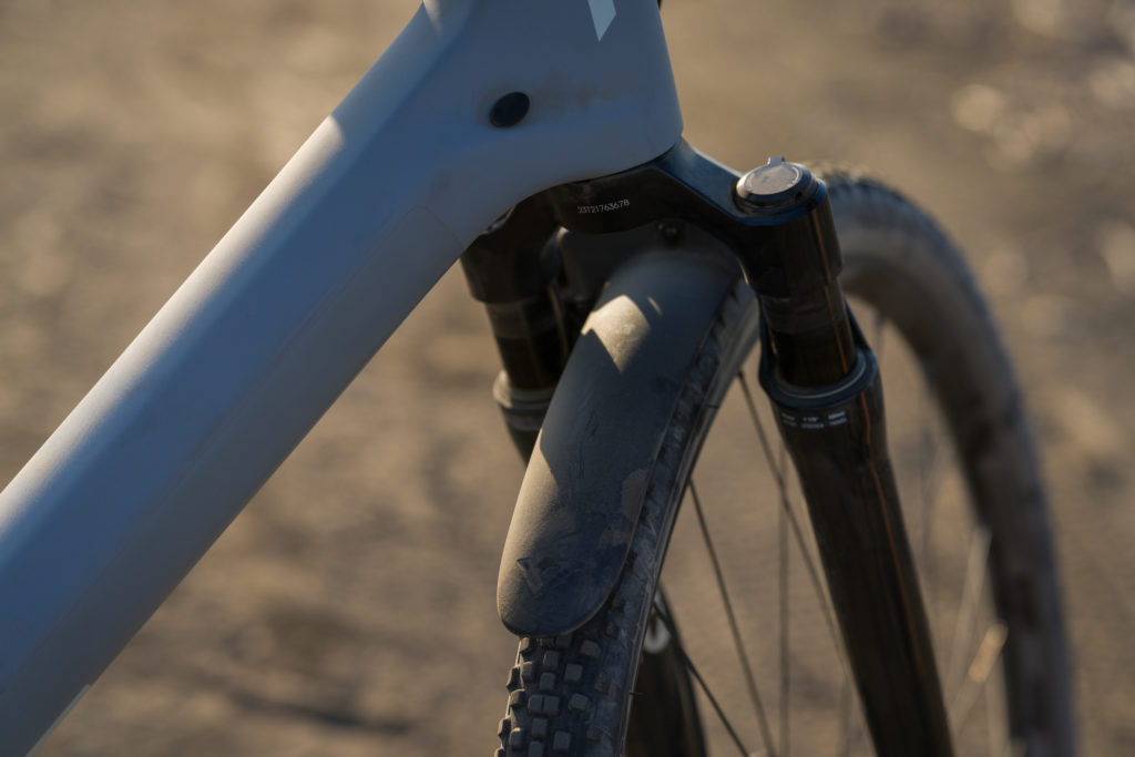 De retour sur les sentiers, la position nous ferait presque oublier que nous ne sommes pas au guidon d’un hardtail. Evidemment, la filtration n’est pas du même acabit, mais les petites suspensions (la fourche et la tige de selle Reverb AXS XPLR) font un très bon boulot pour réduire les chocs créant une fatigue prématurée sur les sentiers. Nous roulons sur un terrain très sec et le grip est excellent. Le Szepter dans cette configuration est redoutable aussi dans les montées techniques, et on est impressionnés par la motricité et la traction qu’il offre.