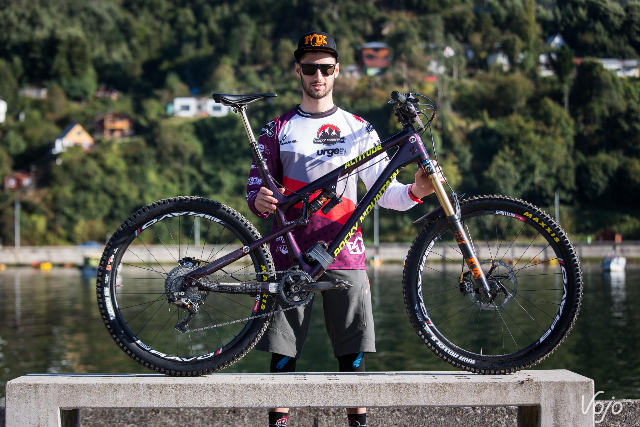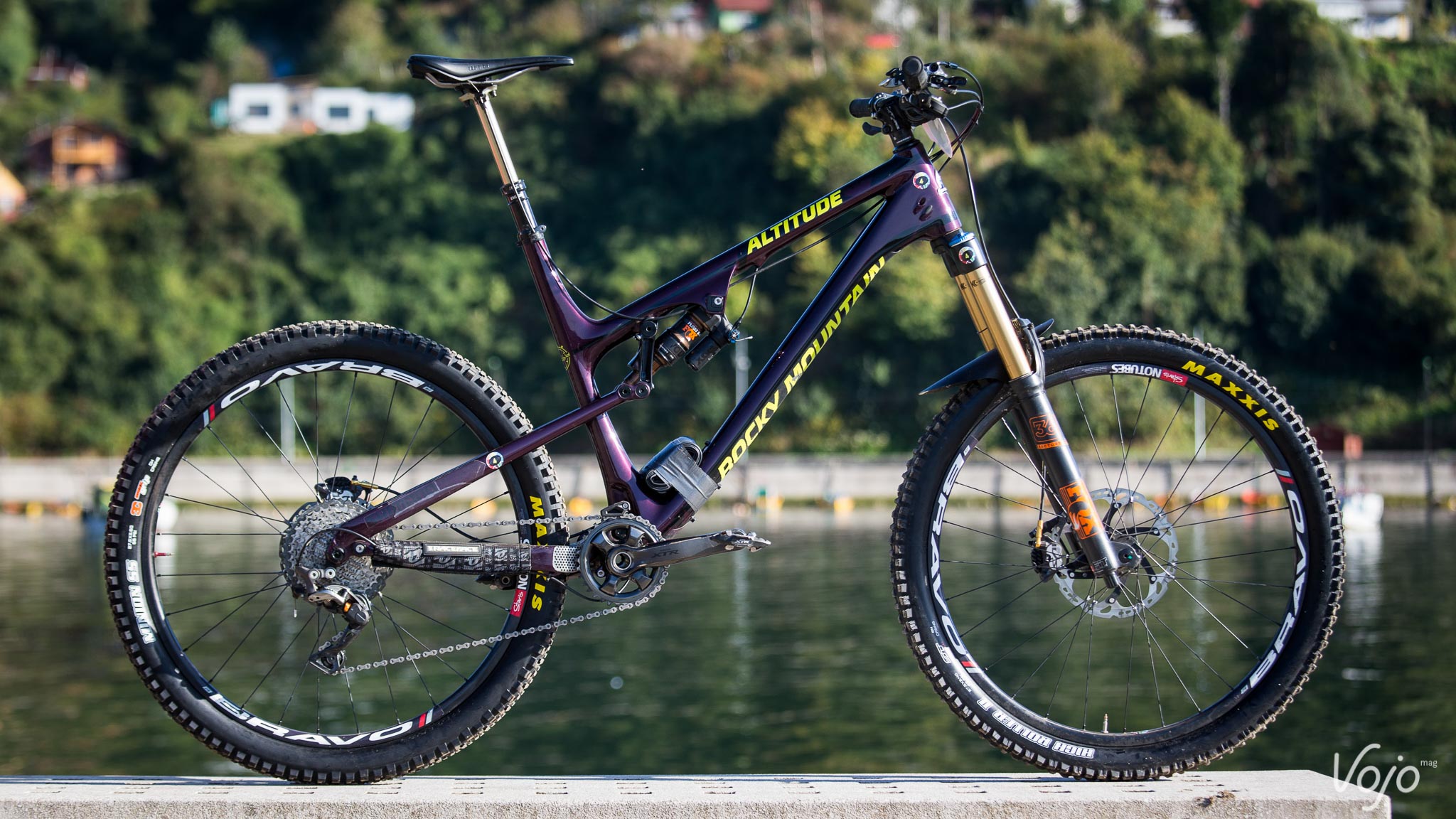 Pour les autres postes : les jantes sont des DT EX471 en 25mm de largeur interne, dont Richie Rude apprécie la rigidité et la grande fiabilité (il dit ne jamais les avoir pliées) montées avec des pneus Maxxis, Shorty à l’avant et Agressor à l’arrière, tous deux en version Double Down. Selle et poignées proviennent de chez Ergon et le cintre est un Renthal carbone en 740mm de large.