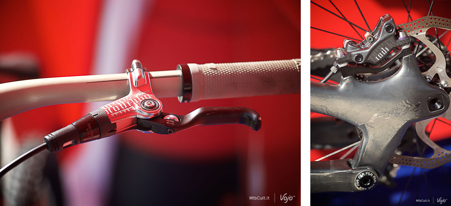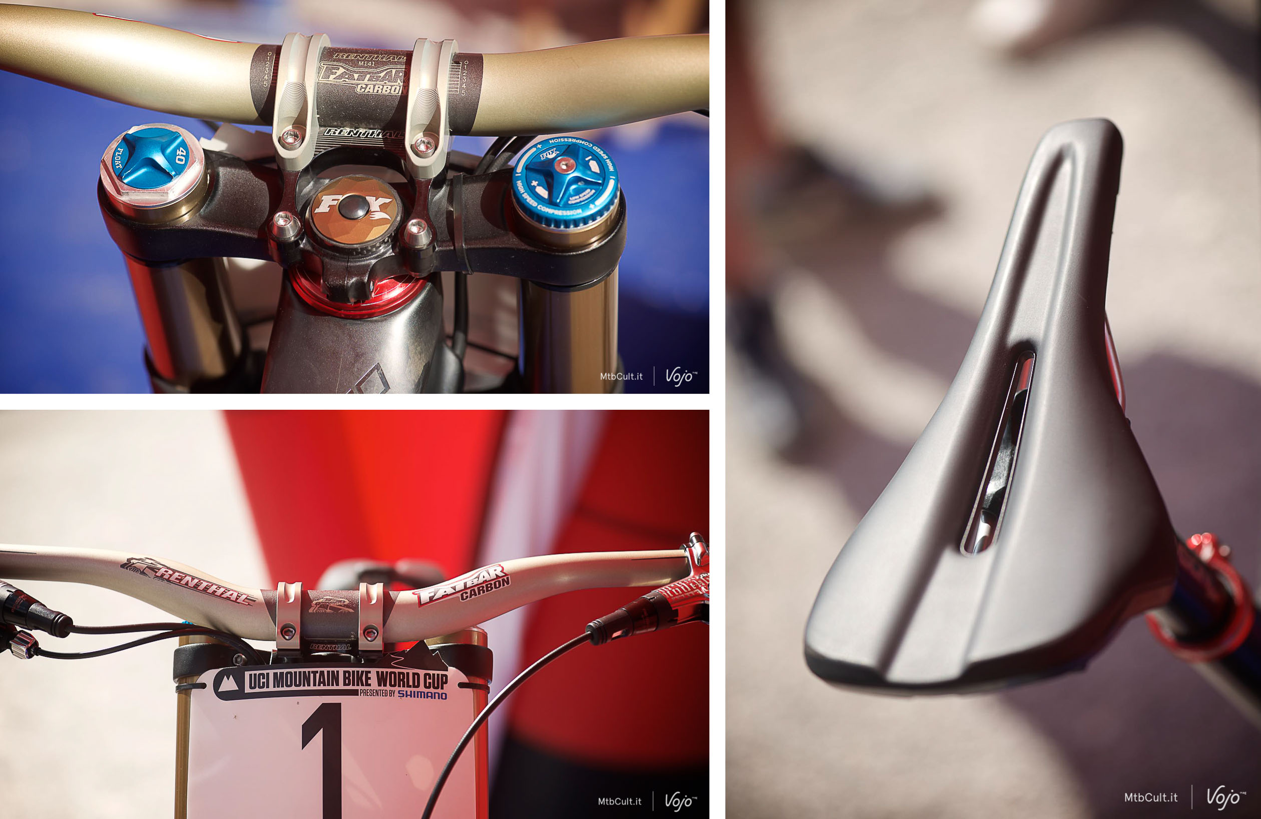 Pour les freins, l’Américain reste fidèle aux Avid Code, alors que la plupart des pilotes sponsorisés Sram sont passés aux Guide, plus légers mais visiblement bien assez efficaces aussi pour la DH. Question de goût et de feeling.