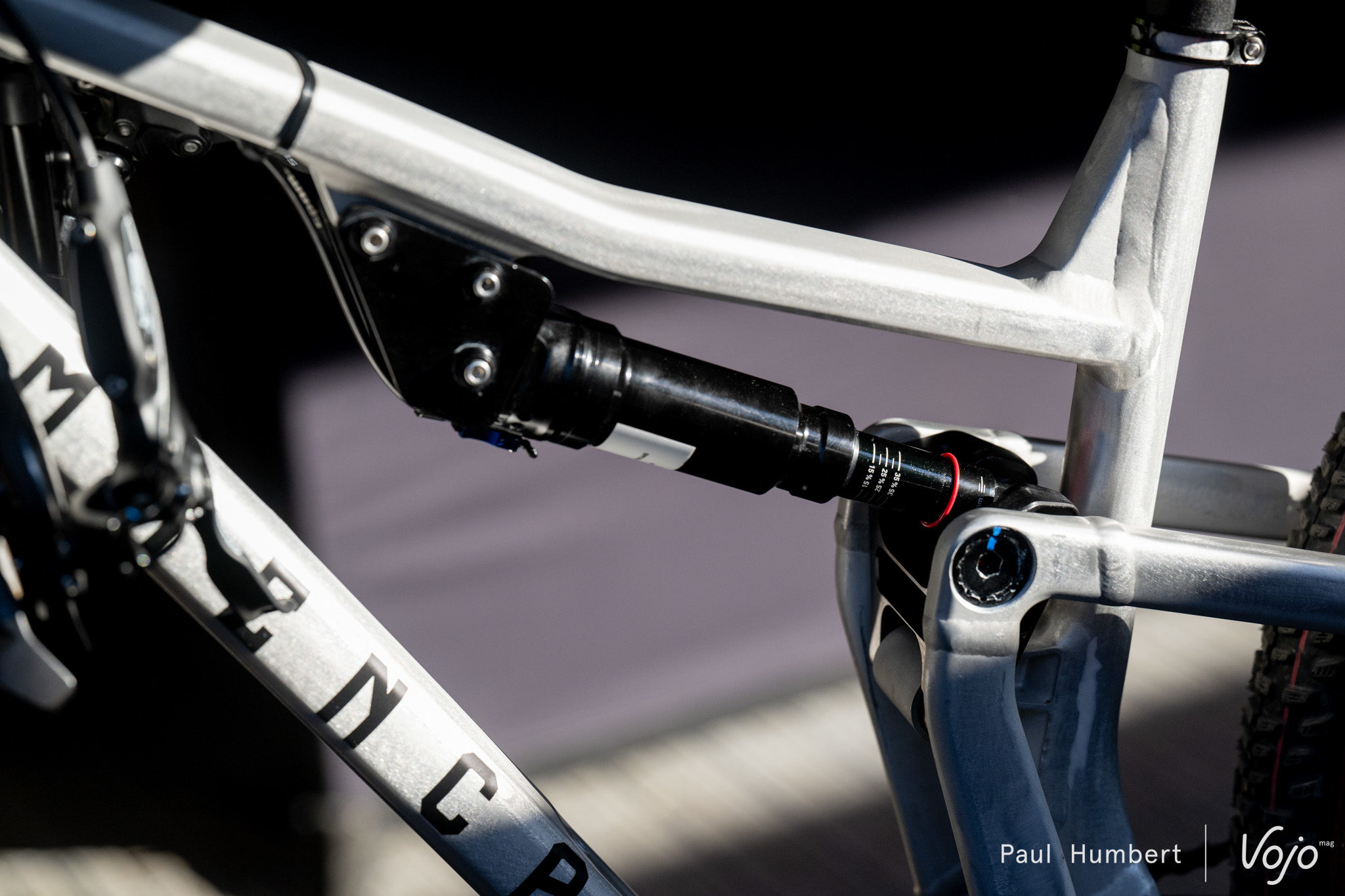Côté technique, tout ce que l’on sait pour l’instant c’est que ce vélo développe 120 mm de débattement et qu’il sera en aluminium : « Le carbone, c’est hors de question », indique Max. Le cadre reprend la suspension à point de pivot virtuel du futur Meta d’enduro (lire Le prochain Commencal Meta dévoilé !) et du trail aperçu à Nove Mesto au printemps (voir Spyshot | Bientôt un petit trail chez Commencal ?) mais le vélo ne semble pas encore être dans sa version définitive.