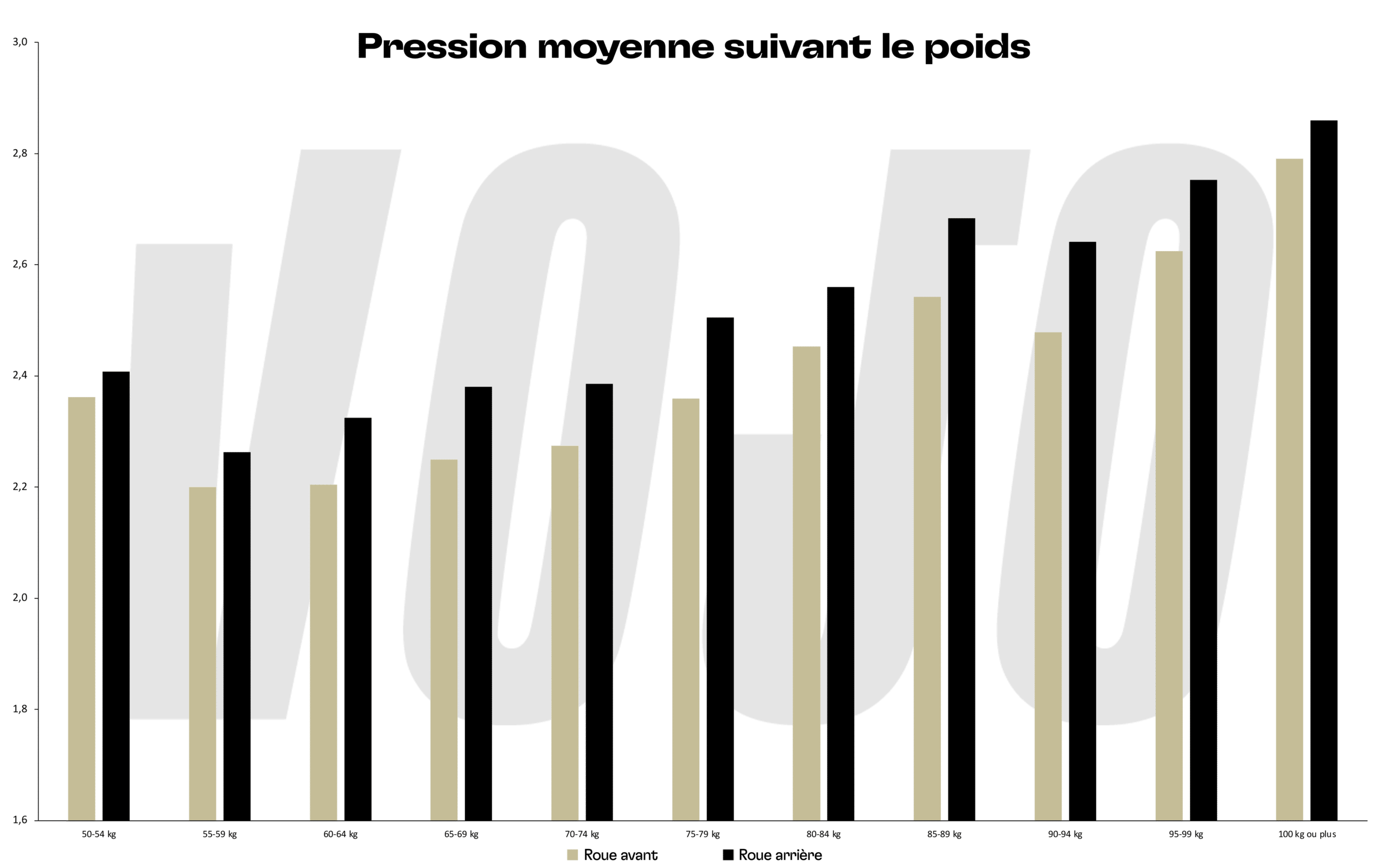 Evidemment, de nombreux paramètres influencent le choix de la pression : le poids de l’ensemble pilote + vélo, le terrain de pratique, le montage (22 % d’entre vous sont encore en chambre à air), la section du pneu, la carcasse de ce dernier et même la largeur de jante, pour laquelle Joël considère que 2 mm font une différence significative et qu’il faut alors ajuster la pression : plus c’est étroit, plus il faut augmenter. C’est pour cette raison que nous nous garderons bien de vous donner un tableau avec la pression prétendument idéale en fonction du poids.