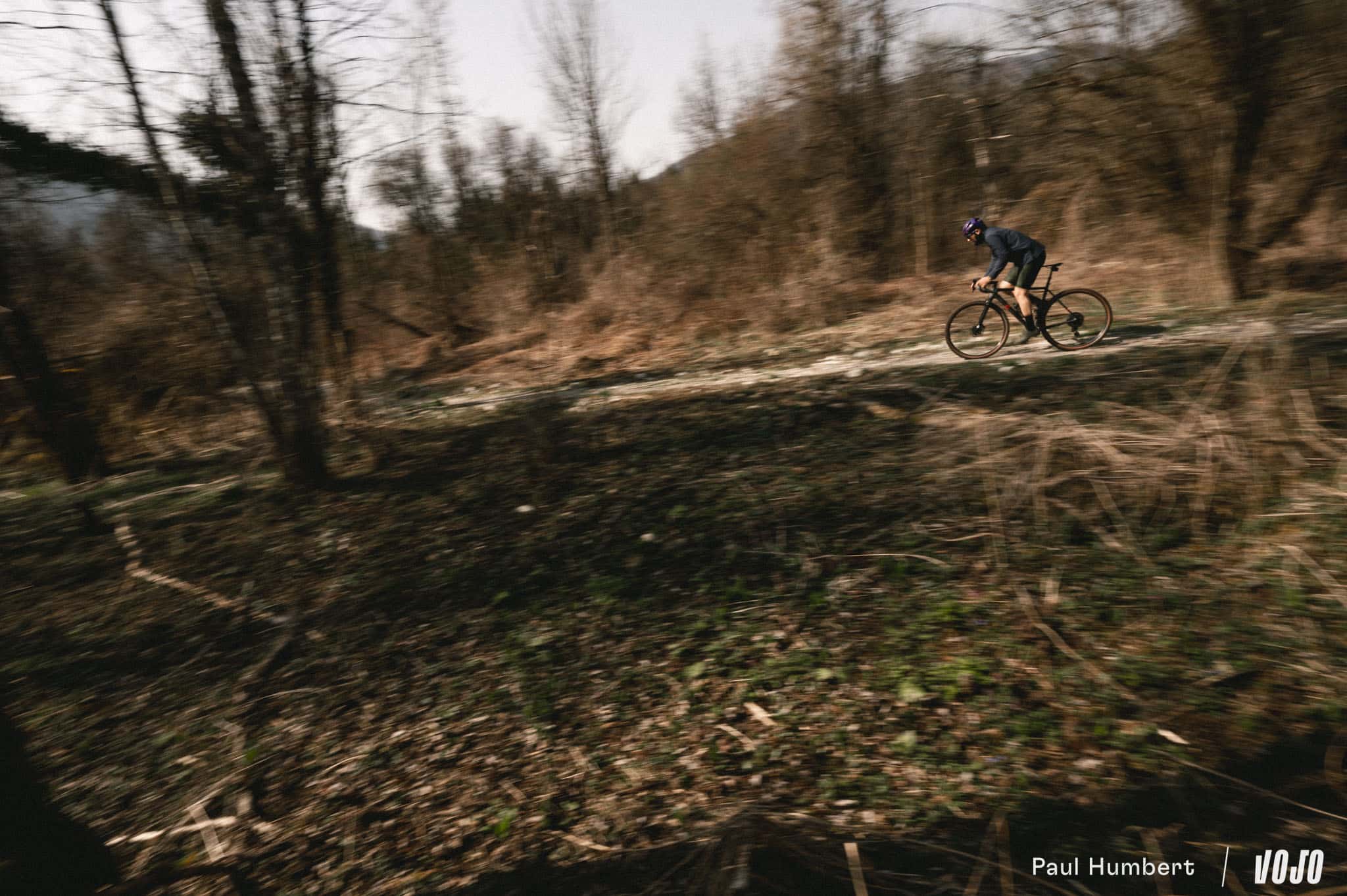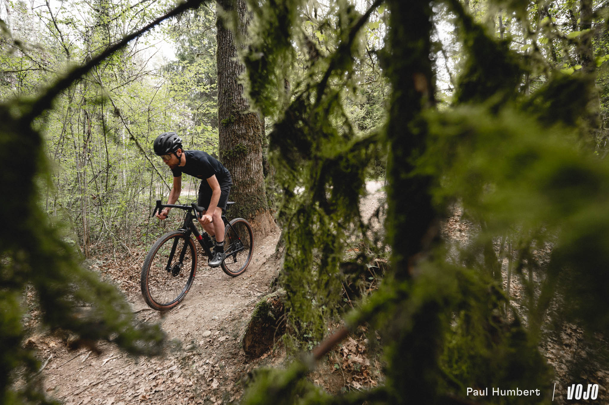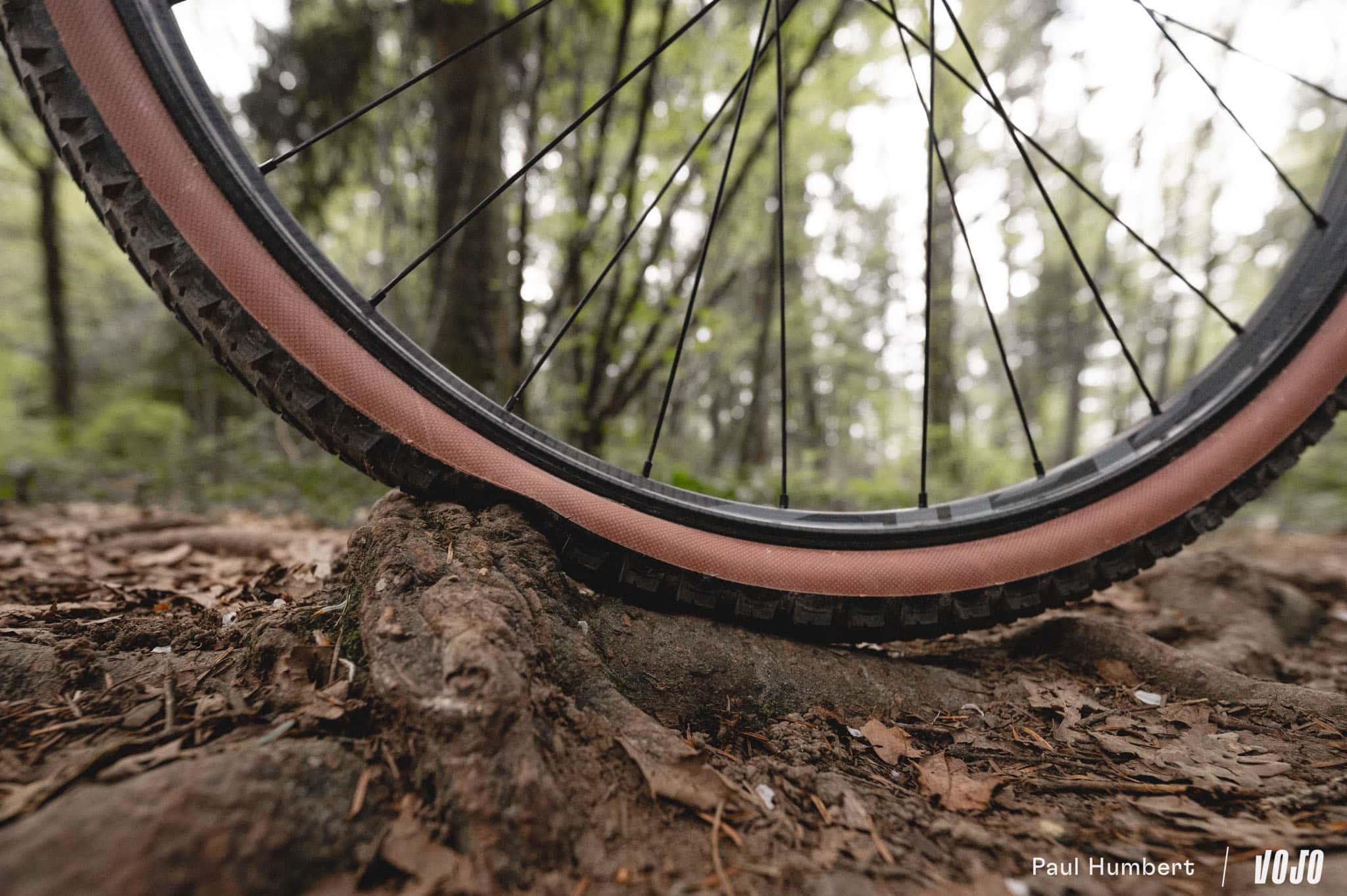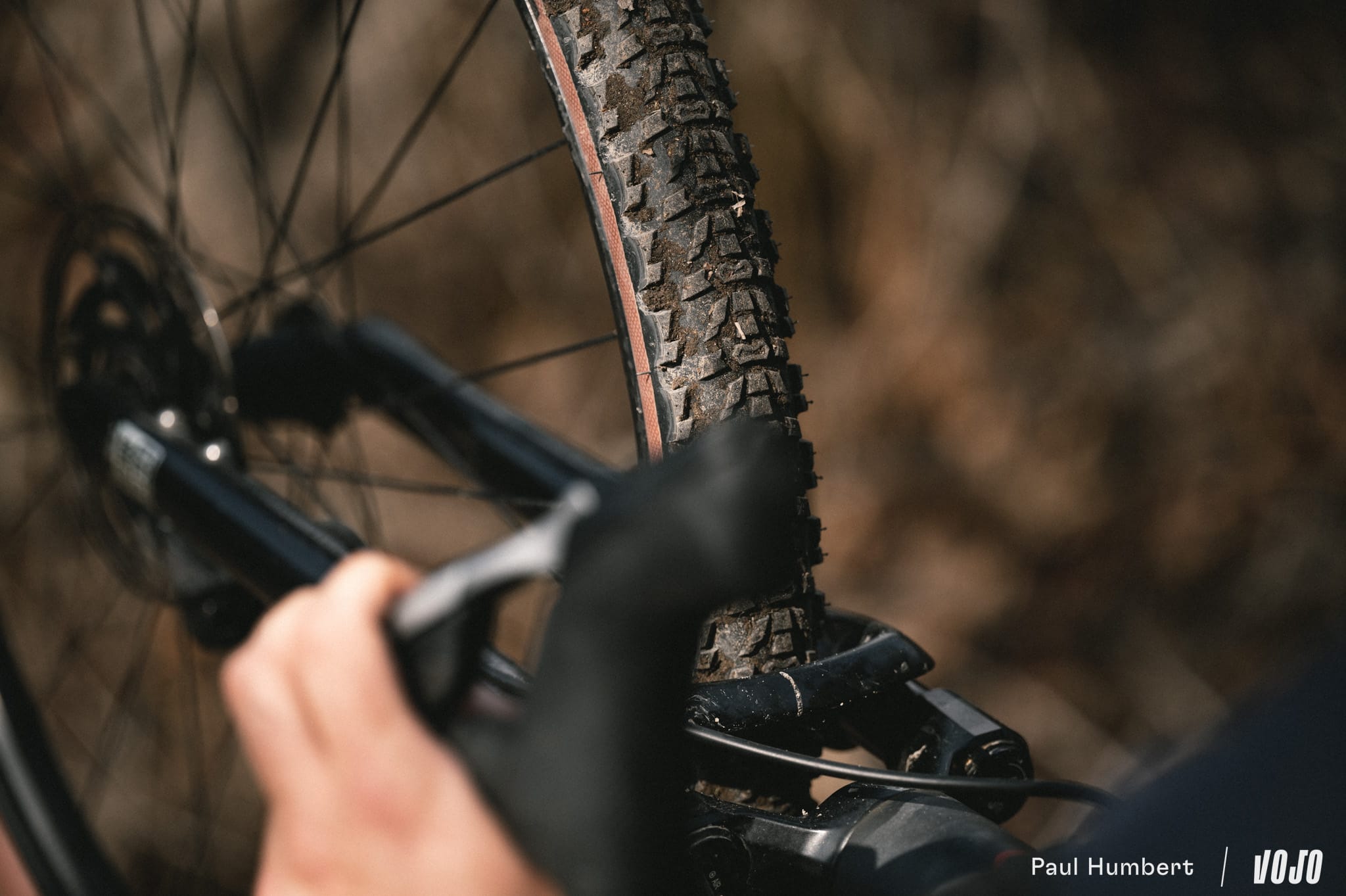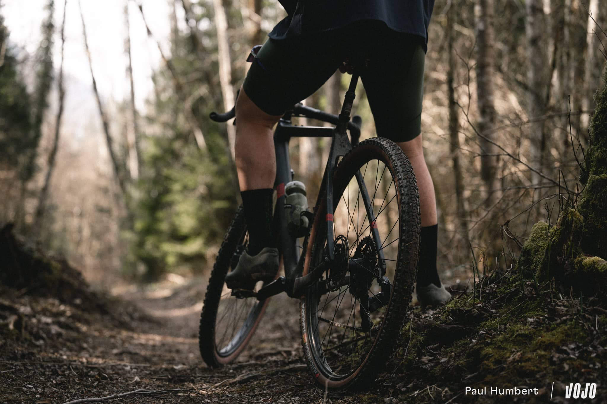 De manière générale, Joël recommande donc de rouler assez bas en pression et de s’approcher bien plus du VTT que d’aller chercher quelque chose à mi-chemin avec les valeurs utilisées en route. Pour lui, « il ne faut pas avoir peur de tester autour de 2 bars pour 70 kg. Avec des Tundra en 50 mm, je peux descendre à 1,4 bar. »  Avec des pressions aussi faibles, n’y a-t-il pas un risque d’abîmer la jante ? « Il faut tester bien sûr, mais je pense qu’il y a de la marge. Et pour certaines pratiques extrêmes, je pense qu’un insert peut avoir du sens. »