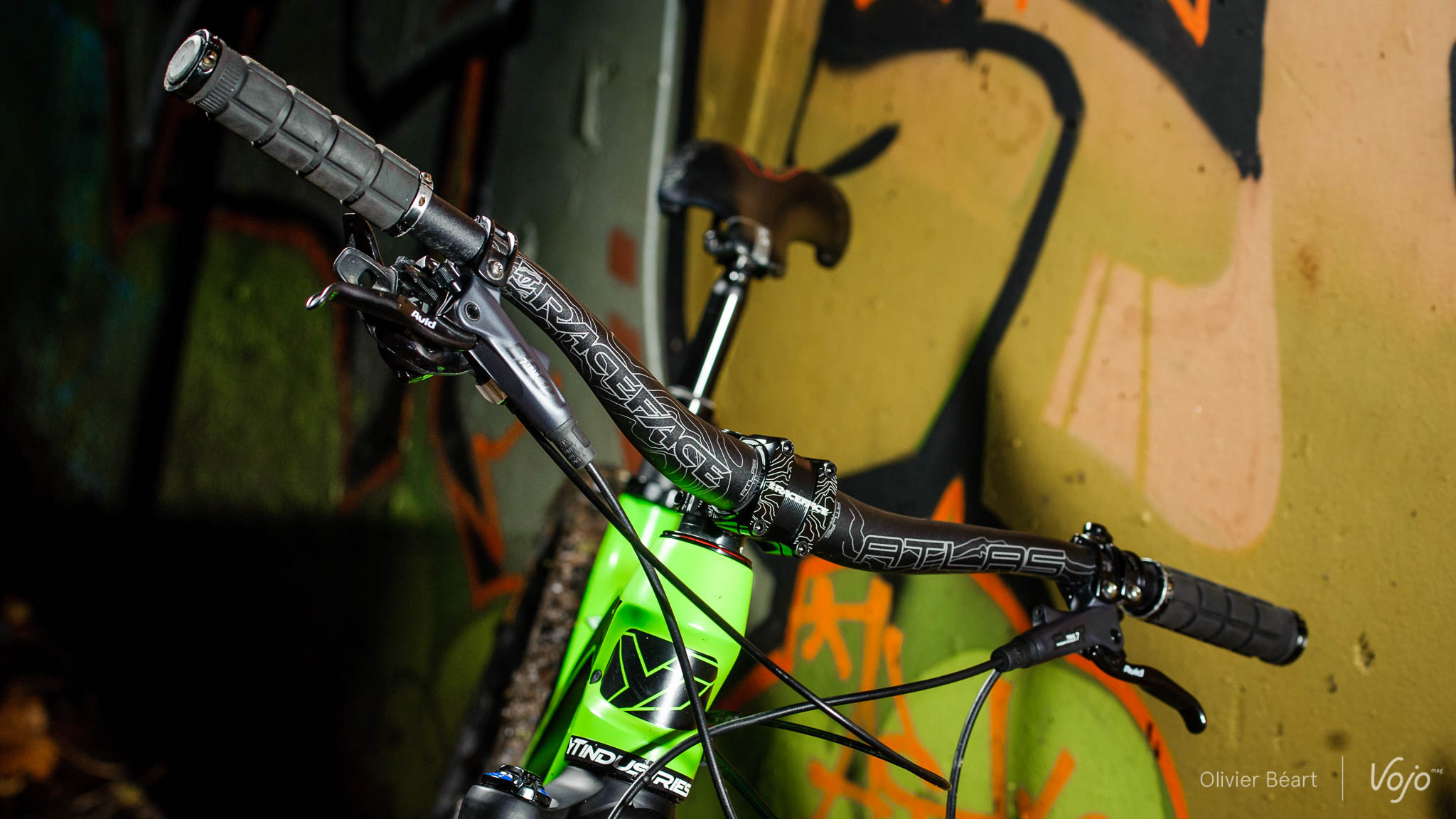 Nous avons testé le cockpit Atlas en configuration cintre de 770mm de large et 35mm de rise (le plus haut proposé; l’Atlas étant disponible aussi en 10 et 20mm de rise), avec potence de 35mm de long, qui est une taille uniquement disponible en « super oversize »; le 31,8mm étant limité à 50mm de long. Habituellement, sentir la différence de rigidité entre deux postes de pilotage est quelque chose de difficile, même pour un pilote très expérimenté. Bien sûr, certains ensembles sortent du lot, en bien ou en mal, et les cintres de plus en plus larges mettent mieux en lumière les qualités et défauts de chacun.