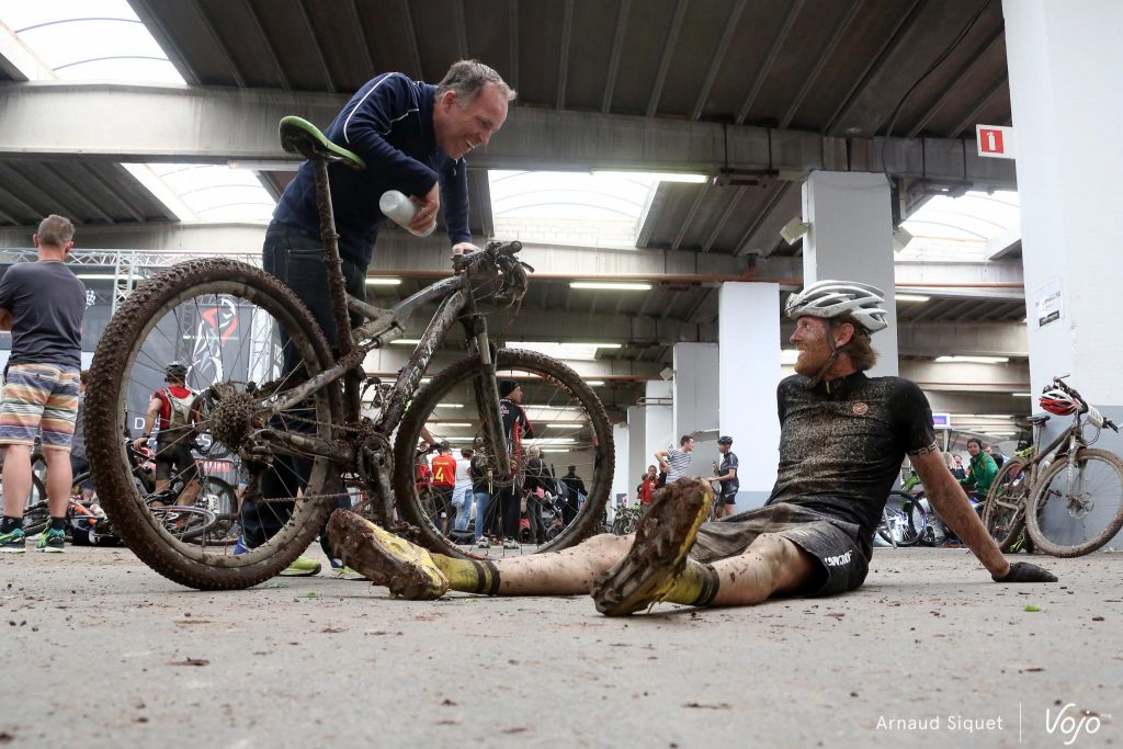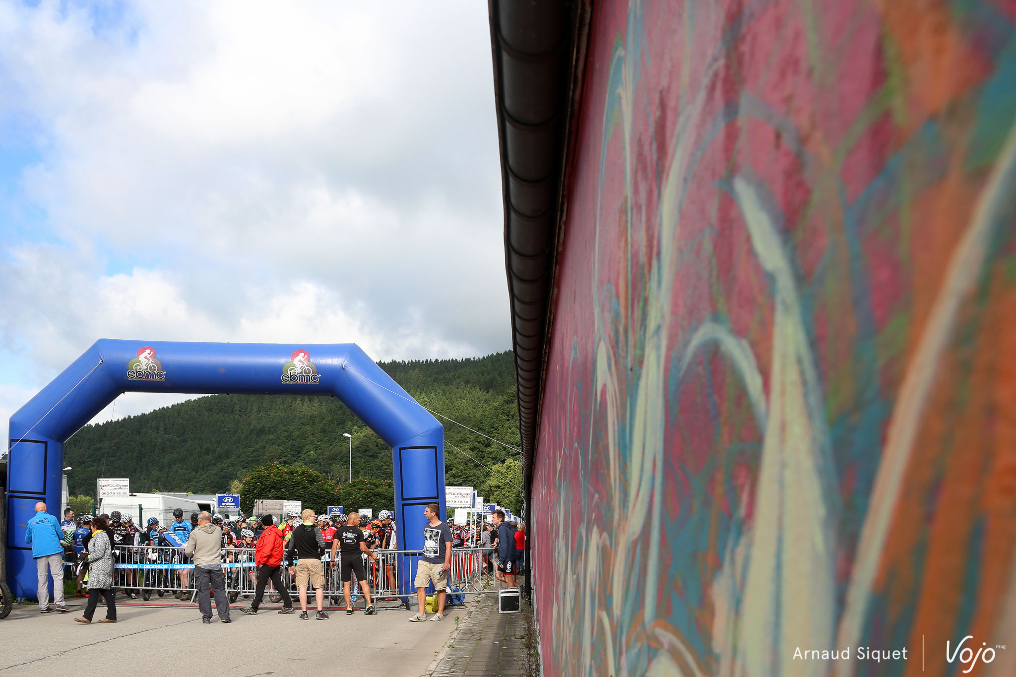 A 10min du départ, le légendaire Jacques Ninane, speaker officiel du challenge EBMC, essaie de «détendre l’atmosphère» en citant les principaux favoris ainsi que le palmarès de chacun. Bien que les plus grosses pointures et habitués de l’épreuve tels que Joris Massaer, Frans Claes ou encore Ken Van den Bulke aient décidés de s’aligner sur les championnats du Monde XCM à Laissac !