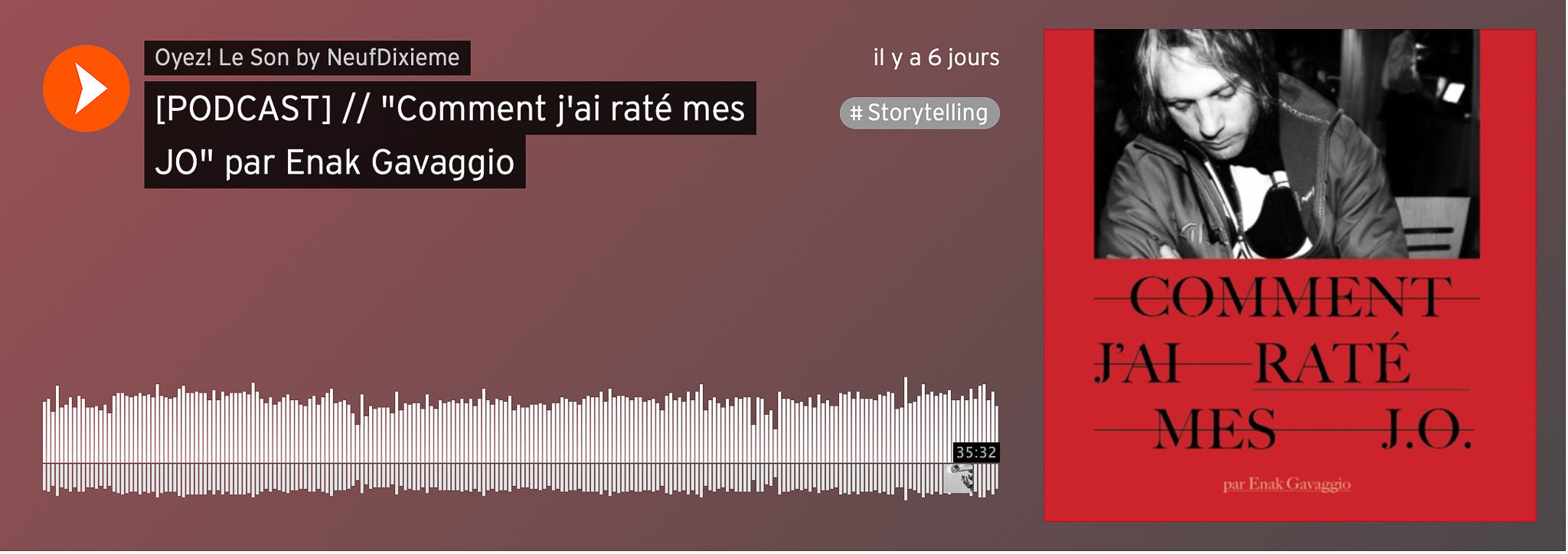Un bosseur, sous une image de glandeur. Un multi-talent, qui fait comme s’il n’en avait pas. Un fan de l’autodérision, qu’il cultive avec sérieux. Un maniaque du détail, qui orchestre savamment un univers foutraque. Un sportif de haut niveau éternel néophyte. Toute la complexité d’Enak Gavaggio se touche peut-être du doigt dans ce récit de son échec aux Jeux olympiques, qu’il raconte à nos confrères de Neuf Dixième avec humour et sensibilité aujourd’hui, mais qui, sur le moment, l’a anéanti. Ou l’art de voir que les échecs ne sont, au fond, que des réussites ultérieures mal entendues. À bon entendeur…
