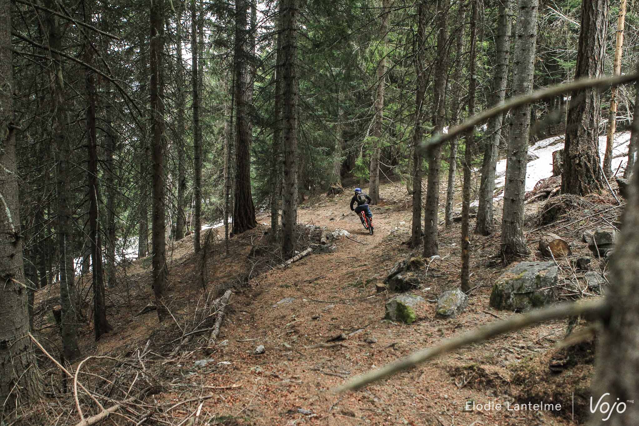 Souvent, ils vont rouler tous les deux, et il n’y a pas loin à faire : il suffit de partir de leur maison et de prendre l’ancienne petite route des Alpes pour retrouver la piste 8 des Arcs, une jolie noire qui serpente entre les résineux et dont le haut était alors encore colonisé par la neige en ce début de printemps.