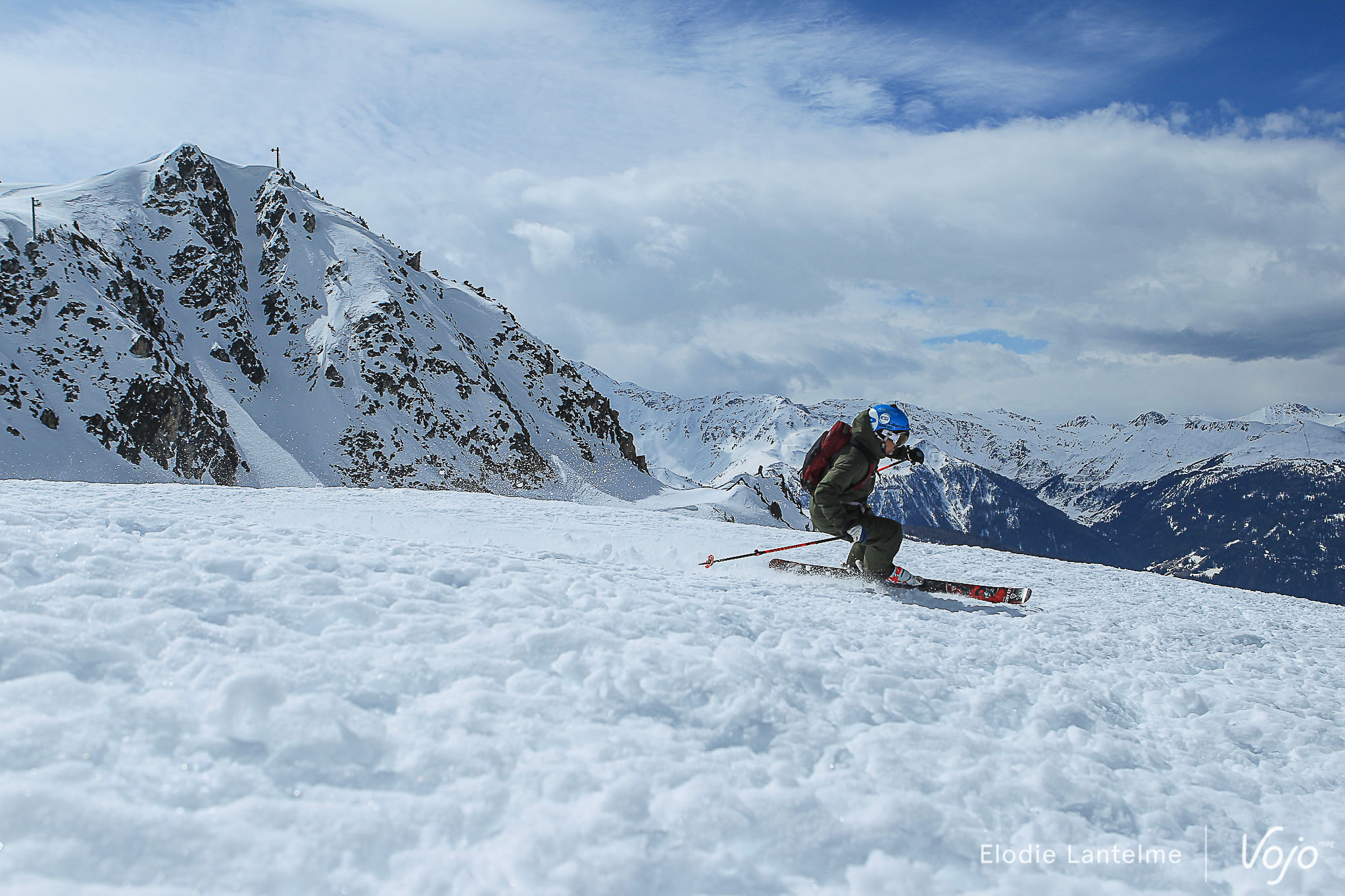 Puisque le ski a marqué la première partie de la vie d’Enak, c’est aussi par là que nous commençons notre journée : un petit tour sur les pistes des Arcs. Sur les lattes, au vu de son passé de sportif de haut niveau, c’est clairement lui qui mène la danse.