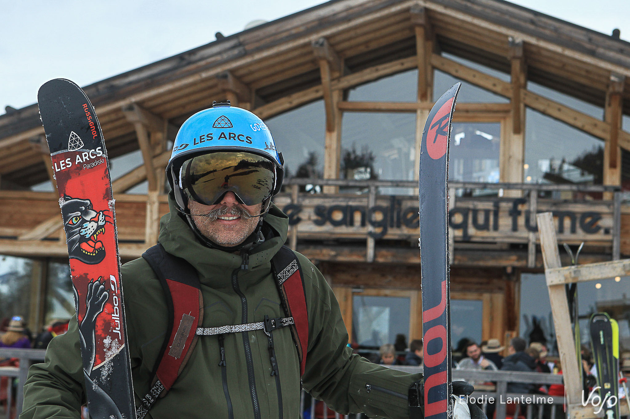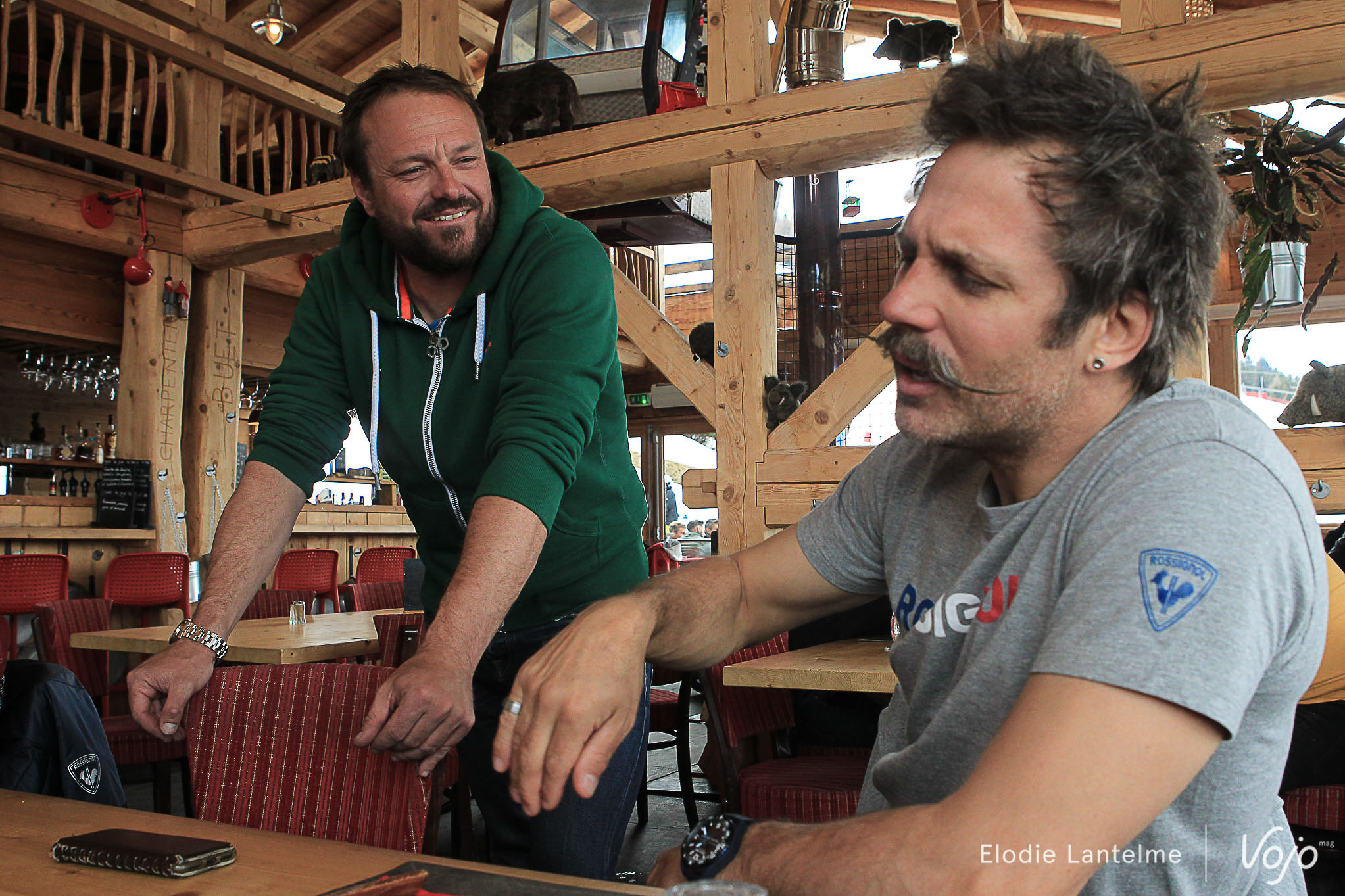 À midi, pas question de bière pourtant, le gosse Rancho prend un sirop à l’eau durant notre halte au Sanglier qui fume. Une adresse tenue par Olivier, un ami de longue date d’Enak : « J’ai un camp de base dans chaque station des Arcs, et je n’en change pas. Ce sont en général des amis qui les tiennent, alors je ne vois pas pourquoi j’irais ailleurs. » Une fidélité qui se retrouve au niveau professionnel : « Je travaille avec les mêmes personnes depuis 20 ans. »