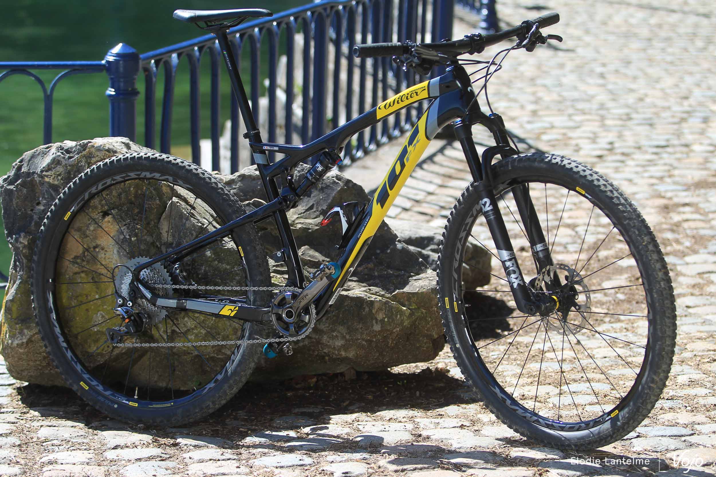 Pour cette édition 2018, celui qui se définit comme « pugnace, réservé et reconnaissant » roule sur un Wilier 100 FX, un tout-suspendu en 100 mm. « Je connaissais la marque en vélos de route et j’avais des copains qui roulaient sur des VTT, je me suis renseigné. Je suis bien dessus. Je voulais un tout-suspendu à tout prix pour les marathons, j’y gagne en confort et la différence de poids n’est pas énorme sur les longues distances. Il est logiquement monté en 29 pouces, je n’ai pas de tige de selle télescopique pour l’instant, mais ça serait un plus, il est efficace dans les longues montées, et pardonne plutôt les erreurs dans les descentes. »