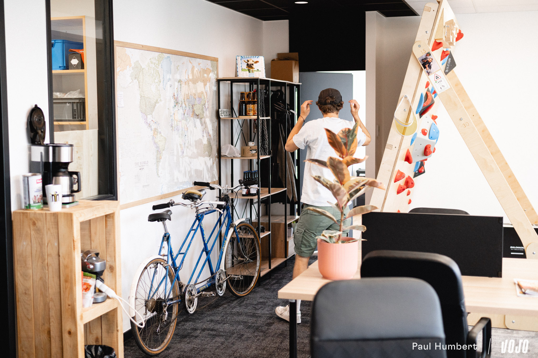 On passe alors de l’autre côté du rideau, à la rencontre de l’équipe Captain Wild. Ils sont une grosse dizaine à travailler au coeur des montagnes, à Annecy. En 2019, Guillaume Rodellas et Guillaume Noel, deux beaux-frères, ont fait le choix de lâcher leur job dans l’électro-ménager pour essayer de combiner leur vie professionnelle avec leur passion, la voile pour l’un, l’escalade pour l’autre.