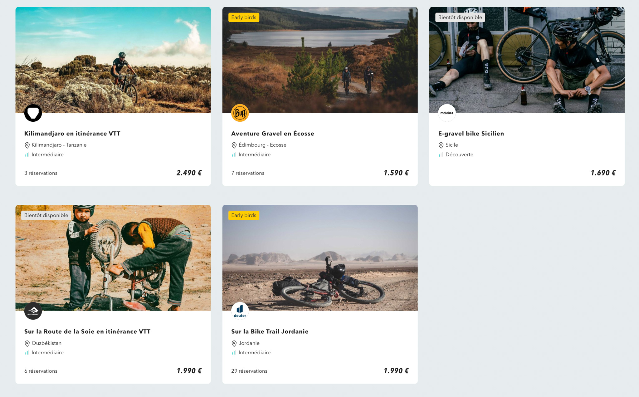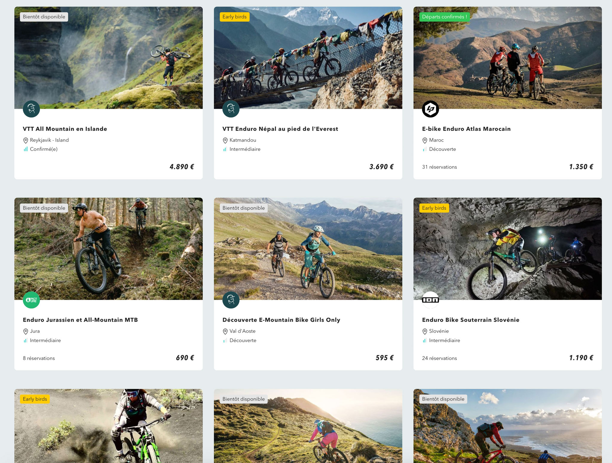 Pour grandir et s’améliorer, il a fallu décrocher le téléphone et appeler les voyageurs. Aujourd’hui, le concept semble fonctionner et grandir et on retrouve sur la plateforme des séjours VTT au Maroc avec Lapierre, dans le Jura avec Picture, au Portugal avec ION, au Népal avec Commencal ou même en Écosse en gravel avec Buff »