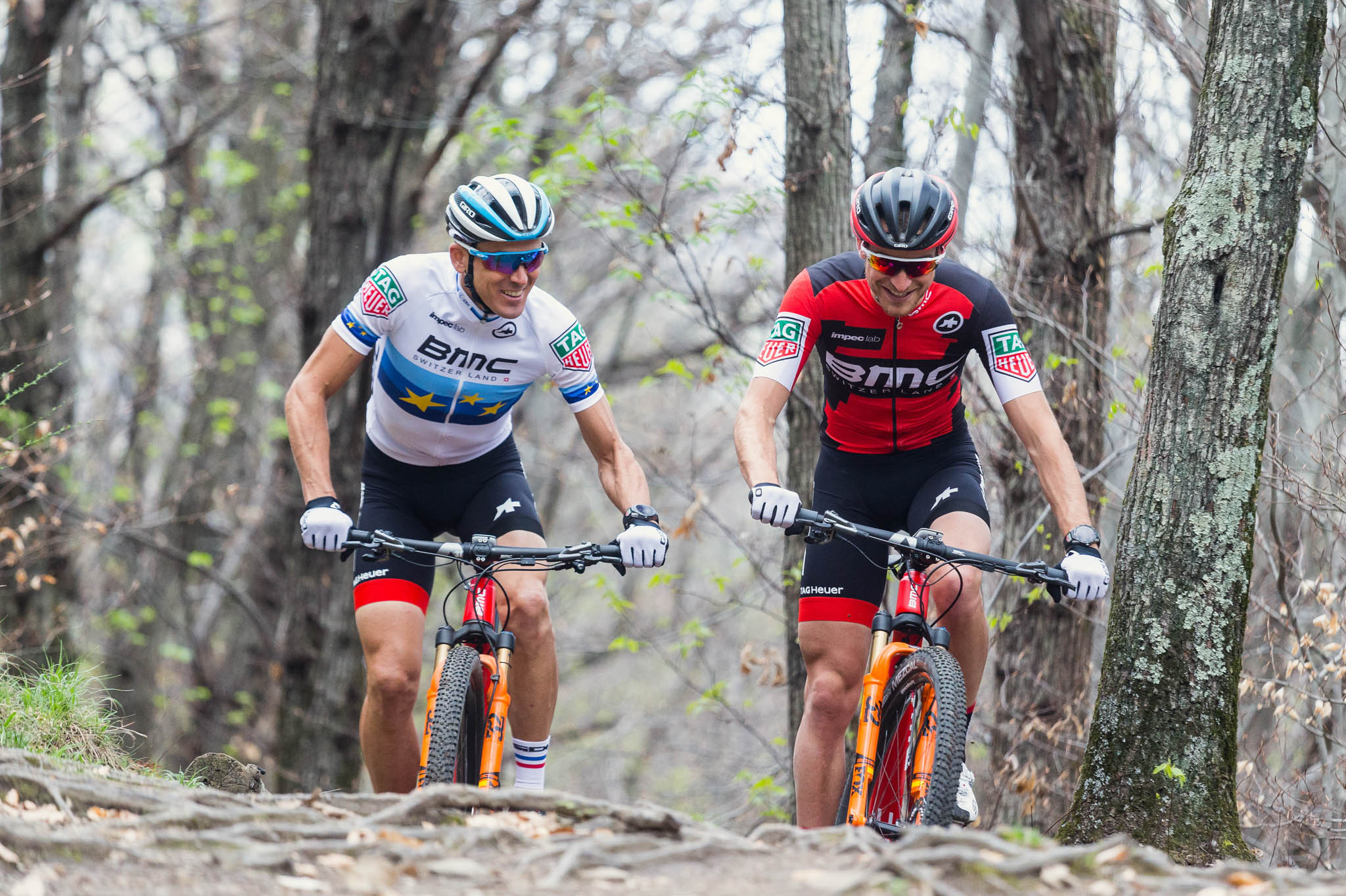 Fort logiquement, nous commençons avec Titouan Carod, le « petit » nouveau du team. Si il sort tout juste de la catégorie U23, il en sort avec deux victoires consécutives au classement général de la coupe du Monde. De quoi partir sur de bonnes bases même si on sait que la transition vers la catégorie Elite n’est pas toujours évidente. L’intersaison a commencé pour lui avec des tractations « À la fin de la saison dernière, j’ai eu des propositions. J’ai laissé assez logiquement la priorité à Scott mais finalement c’est BMC qui s’est le mieux positionné. C’était très intéressant et ça s’est fait super vite. » Quand on le questionne sur la saison à venir, il fait preuve d’humilité : « Pour moi, tout est nouveau, je ne veux pas m’imposer de stress ou d’objectifs. On va voir. ». Avant de passer la parole à son nouveau coéquipier qui n’est autre que Julien Absalon, on détecte une certaine sérénité au moment de débuter une saison dans « l’ombre » du palmarès de Julien : « ça ne me dérange pas, je démarre sans pression ».