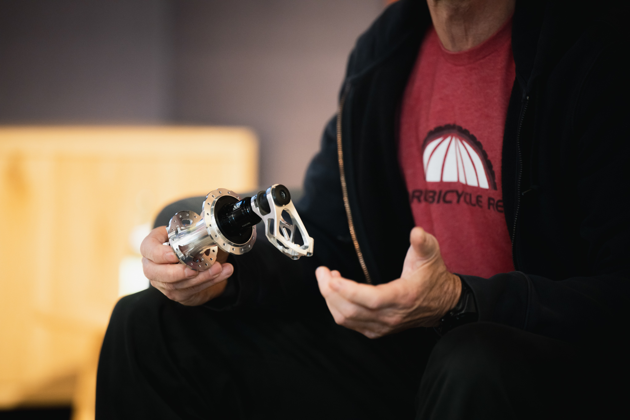 « Si on y regarde de plus près, la patte de dérailleur a été conçue il y a, je ne sais pas, 80 ou 90 ans, pour des vélos de route qui avaient 3 vitesses alors que maintenant on a des cassettes 10-52, un écart énorme, on a 12 vitesses et on a besoin de beaucoup plus de précision. Se baser sur cette conception très ancienne est donc aujourd’hui difficile, et de là, le reste est plutôt logique. Qu’est-ce qu’on fait pour éviter que quelque chose qui pend d’un côté ne plie ? On ajoute un autre support de l’autre côté. C’est évident mais personne ne l’avait fait parce que c’était une habitude dans l’industrie d’avoir cette patte de dérailleur. C’était un grand pas de prendre cette décision et d’essayer de persuader tous les OEM [original equipment manufacturer, comprendre ici les marques de vélo] de s’adapter à ce design. »