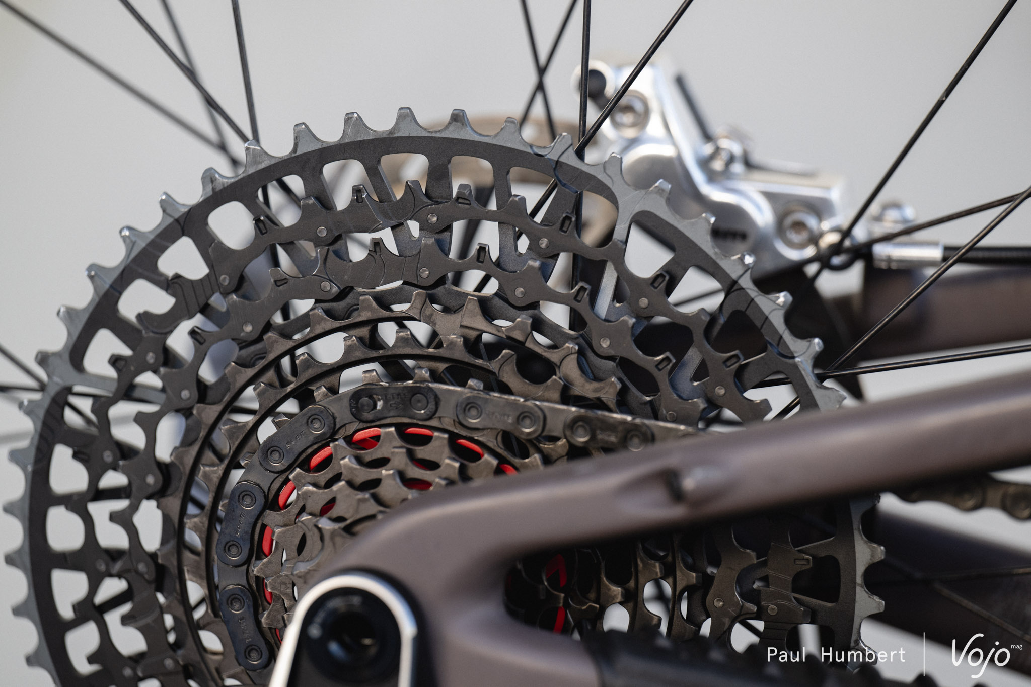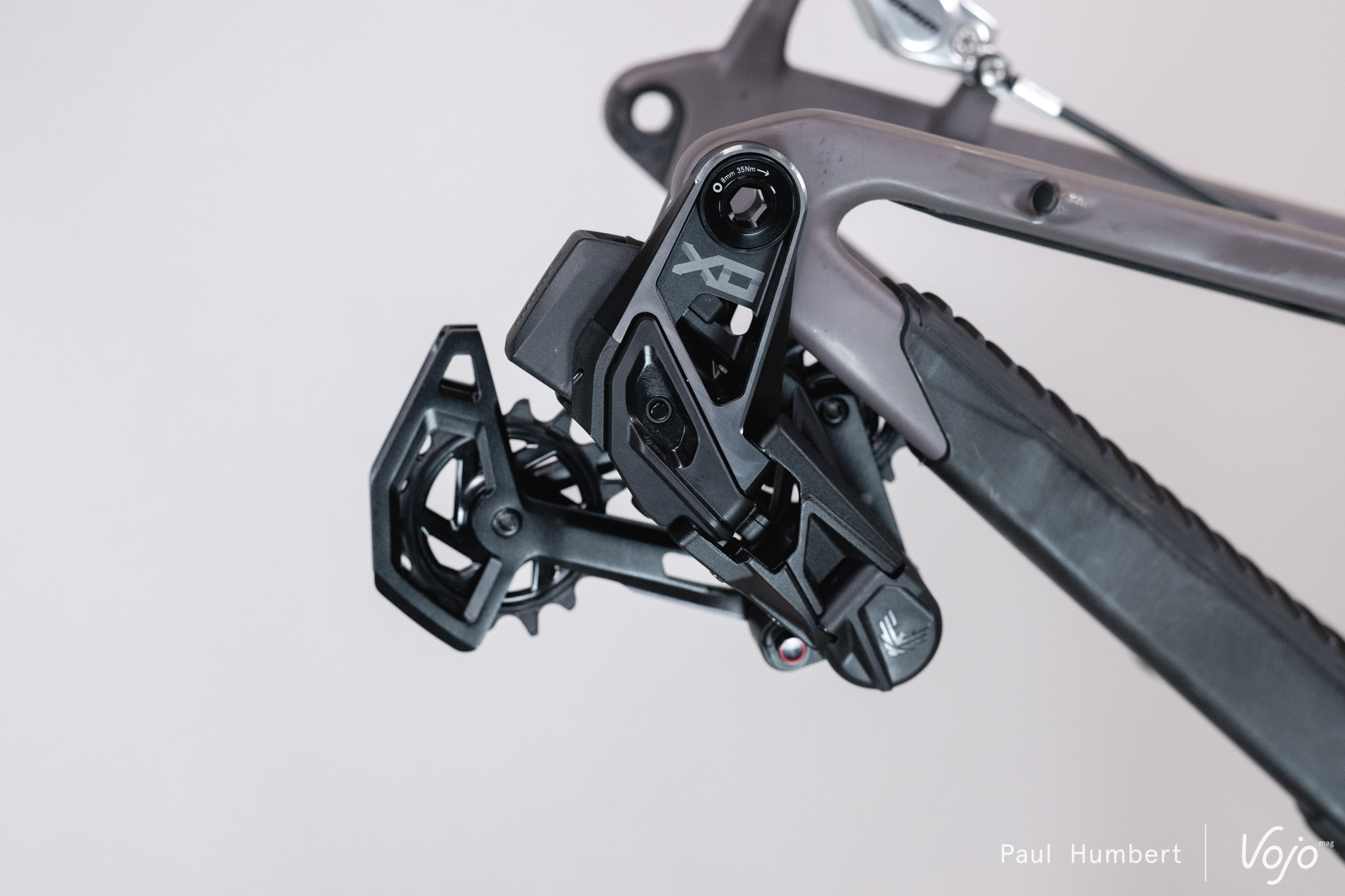 Ça y est ! Plusieurs années après les premières rumeurs issues de brevets, huit mois après l’avoir aperçue pour la première fois en compétition, elle est officiellement devant nos yeux : la nouvelle transmission Sram Eagle AXS sans patte de dérailleur, nom de code T-Type. Dans les grandes lignes, les changements paraissent mineurs puisqu’on reste en 12 vitesses et en AXS mais en réalité, ce sont bien de tout nouveaux groupes qui n’ont plus rien à voir avec leurs prédécesseurs. Vojo a eu l’occasion de faire partie des quelques médias triés sur le volet qui ont pu tester pendant les six derniers mois ces nouveaux groupes Sram Eagle AXS, déclinés en XX et X0. Voici notre reportage :