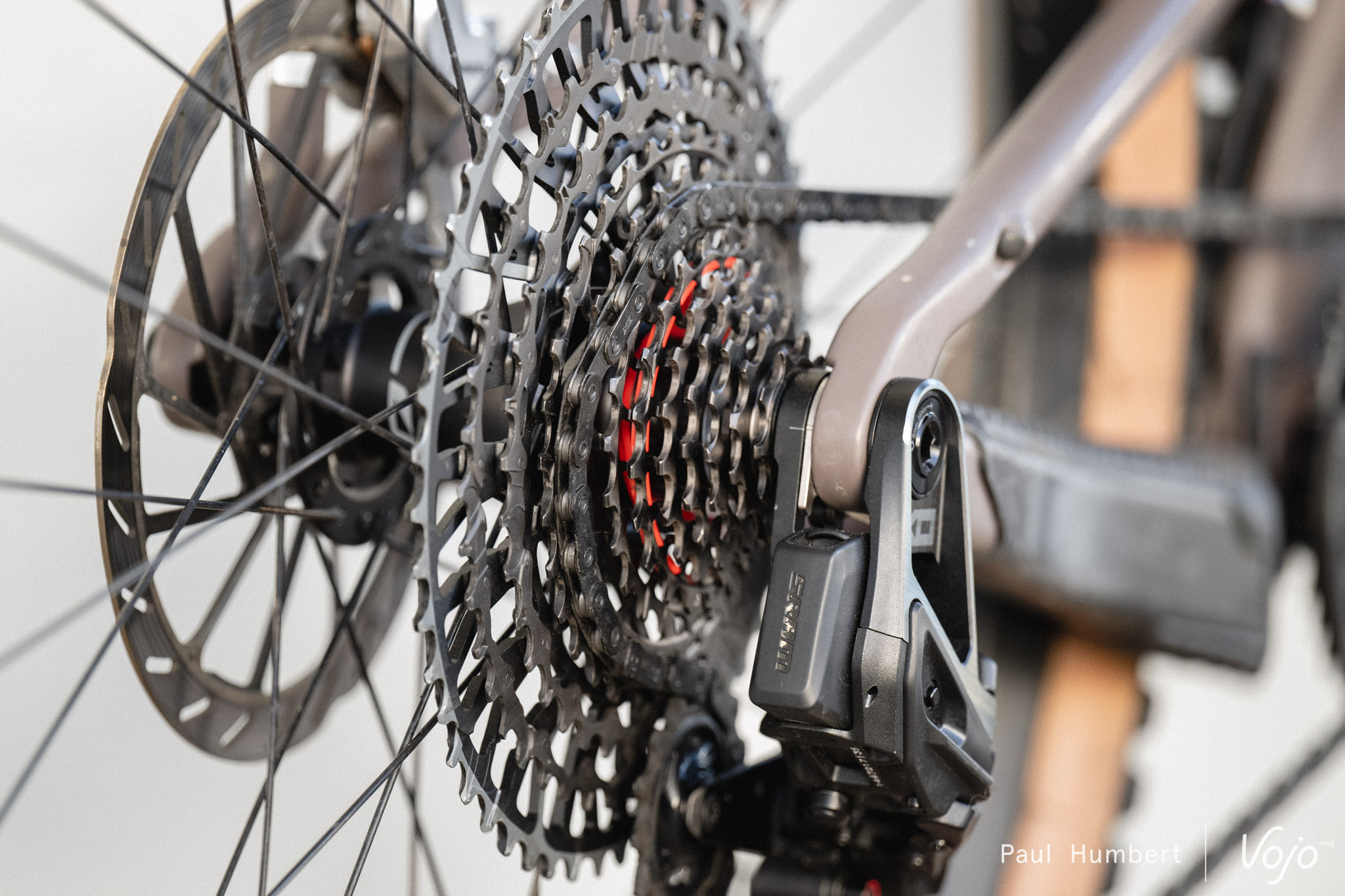 « Plus robuste« , « quand on parle de solidité et de robustesse »… La solidité du dérailleur, mais aussi du système en général, était en effet l’un des principaux objectifs de Sram lors du développement de cette nouvelle transmission. L’un des principaux mais pas le seul, puisqu’il y en avait deux autres : la facilité d’installation et de réglage et la qualité des changements de rapport sous charge.