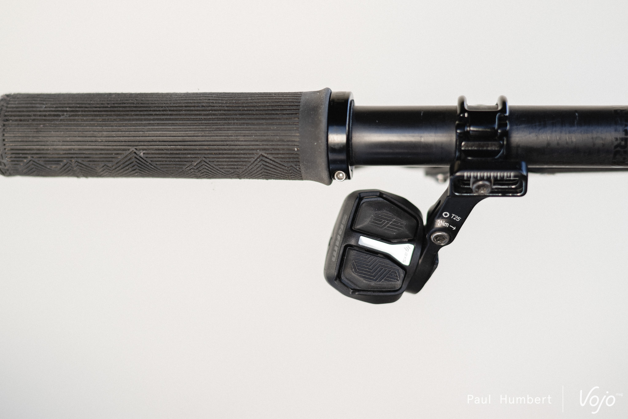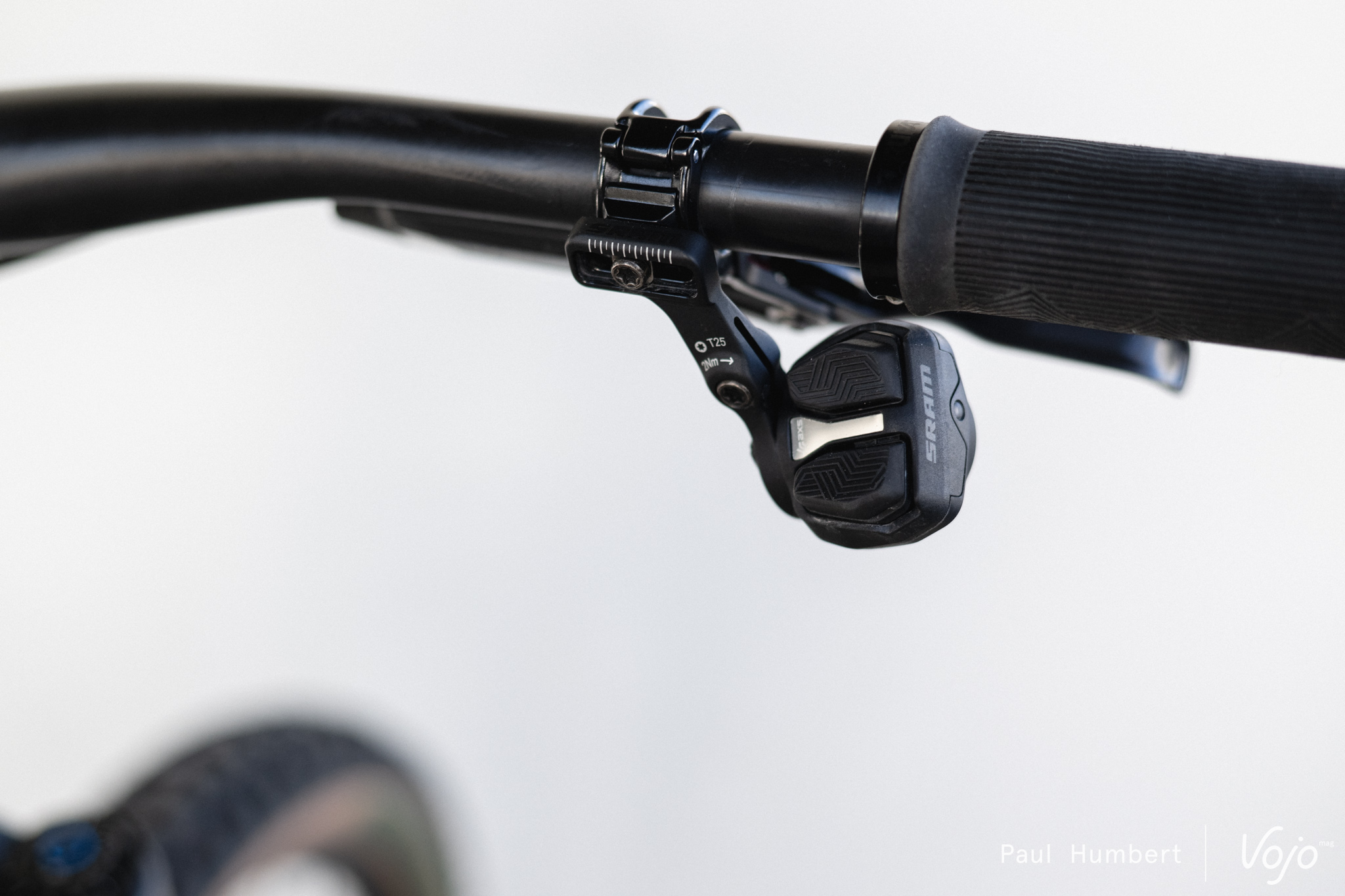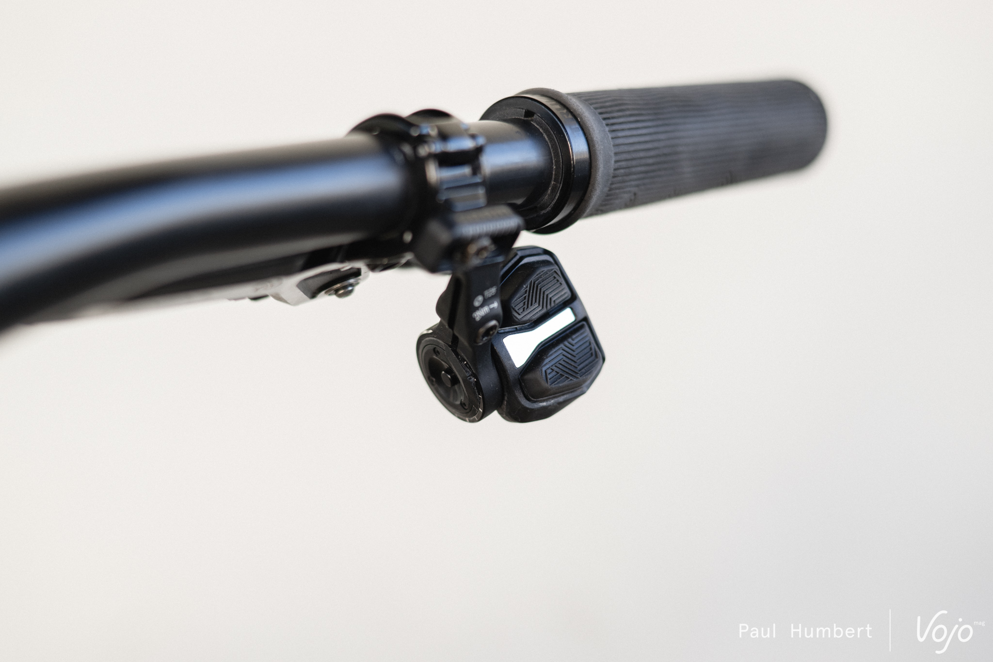 Il se passe beaucoup de choses à l’arrière… mais il y a aussi de la nouveauté à l’avant ! En plus de la transmission entièrement revue, Sram présente en effet une toute nouvelle commande, par ailleurs le seul composant de tout ce lancement à être compatible avec les anciens groupes Eagle AXS.