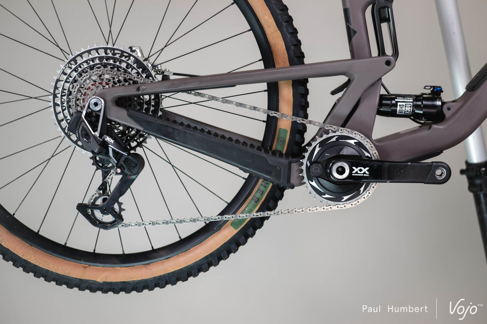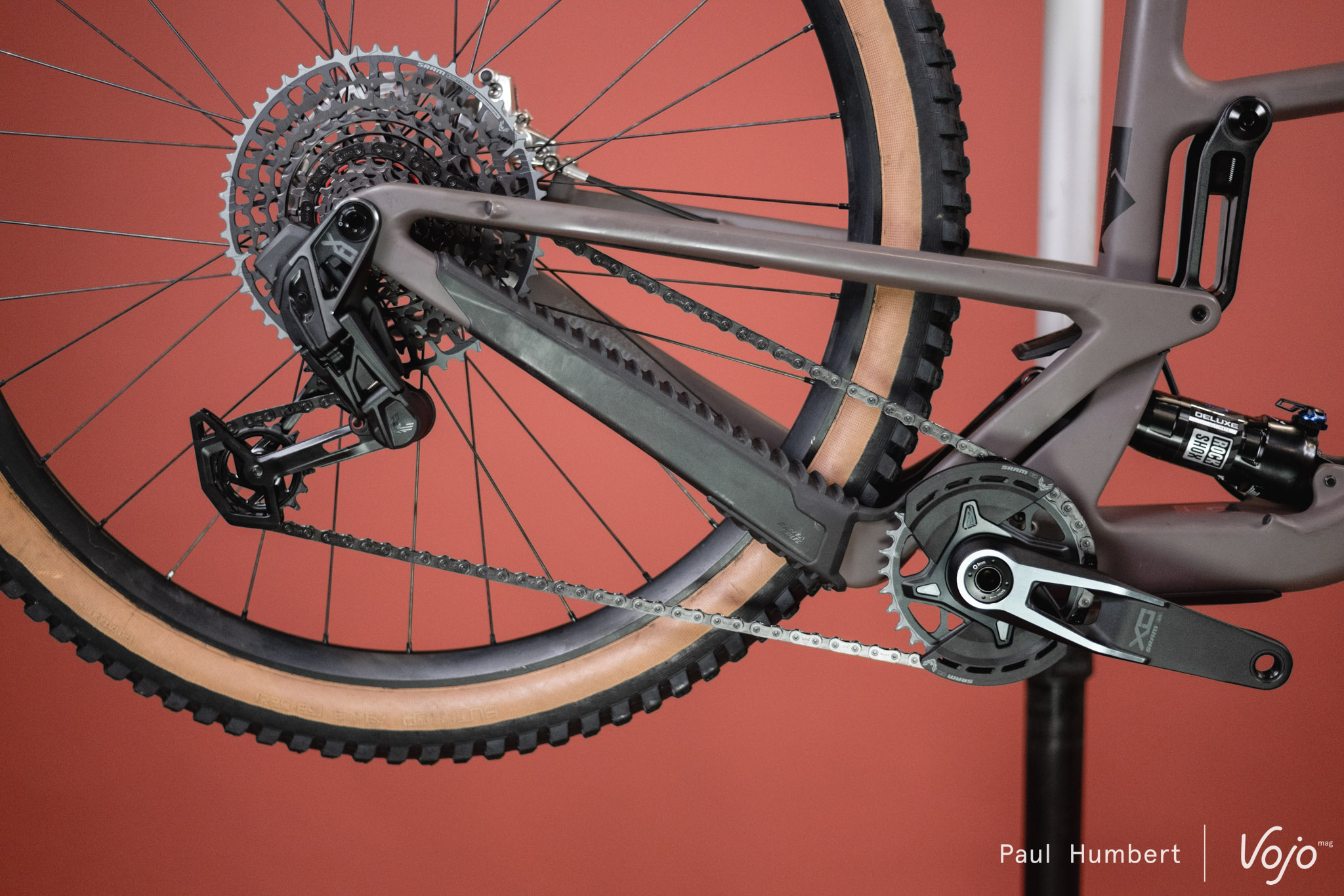 Avec cette gamme, Sram a aussi voulu revoir sa hiérarchie parfois mal comprise. Depuis leur sortie en 2016 puis l’arrivée de l’AXS en 2019, X01 et XX1 sont censés cohabiter au sommet de la gamme : au premier les pratiques plus ou moins engagées, au second la vitesse et la légèreté du XC. Dans les faits, vous savez comme nous qu’on peut trouver du XX1 sur certains vélos de 150 mm de débattement ou plus, parfois en e-bike, ce qui n’est pas vraiment en phase avec le programme initial du groupe.
