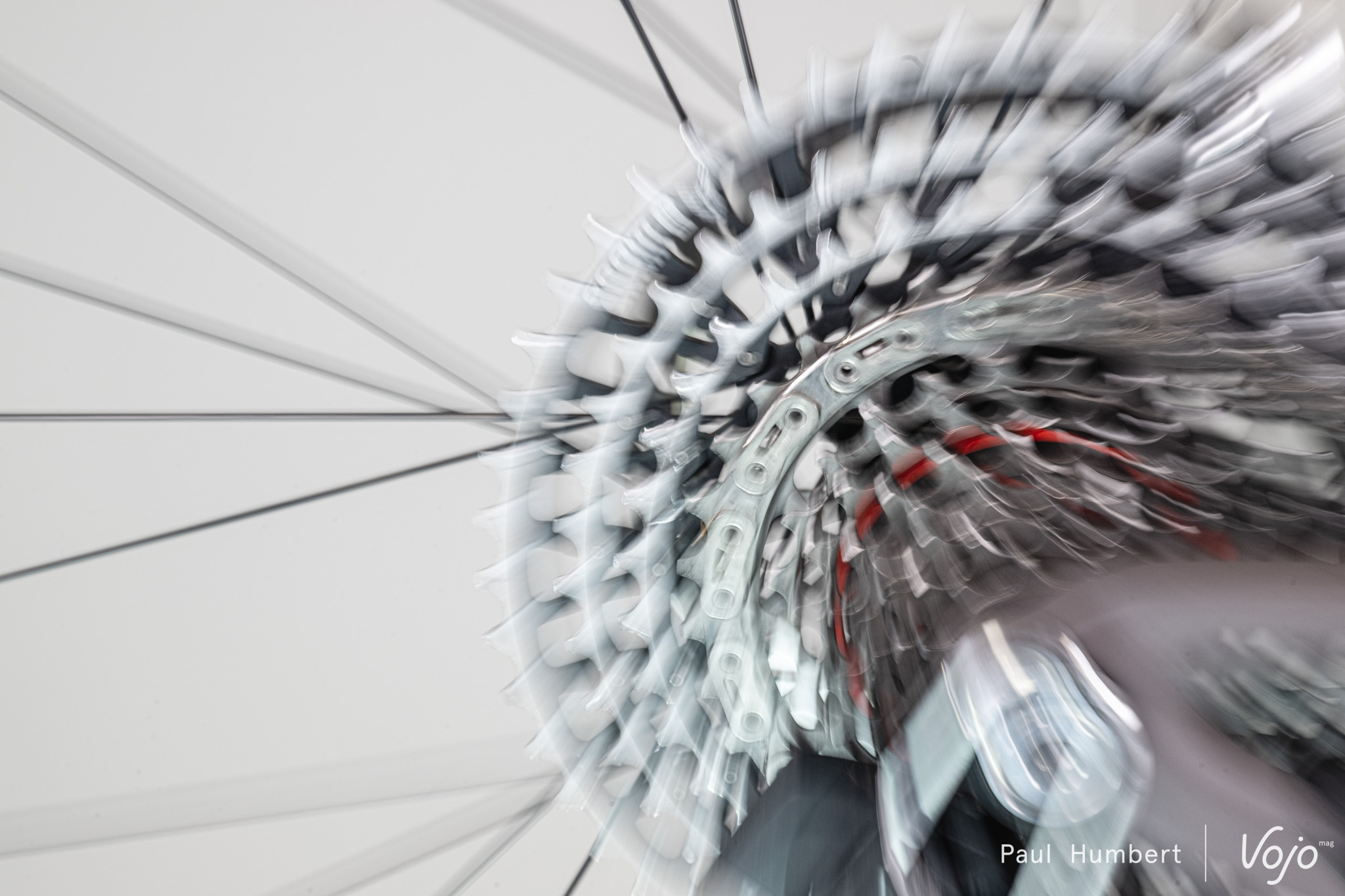 L’étagement, critique récurrente de l’ancienne cassette, a également été revu sur les plus petits rapports. On passe ainsi d’un enchaînement 32-36-42-52 issu de la cassette 11 vitesses à un 32-38-44-52 un peu mieux réparti qui réduit le travail demandé au dérailleur et à la chaîne.