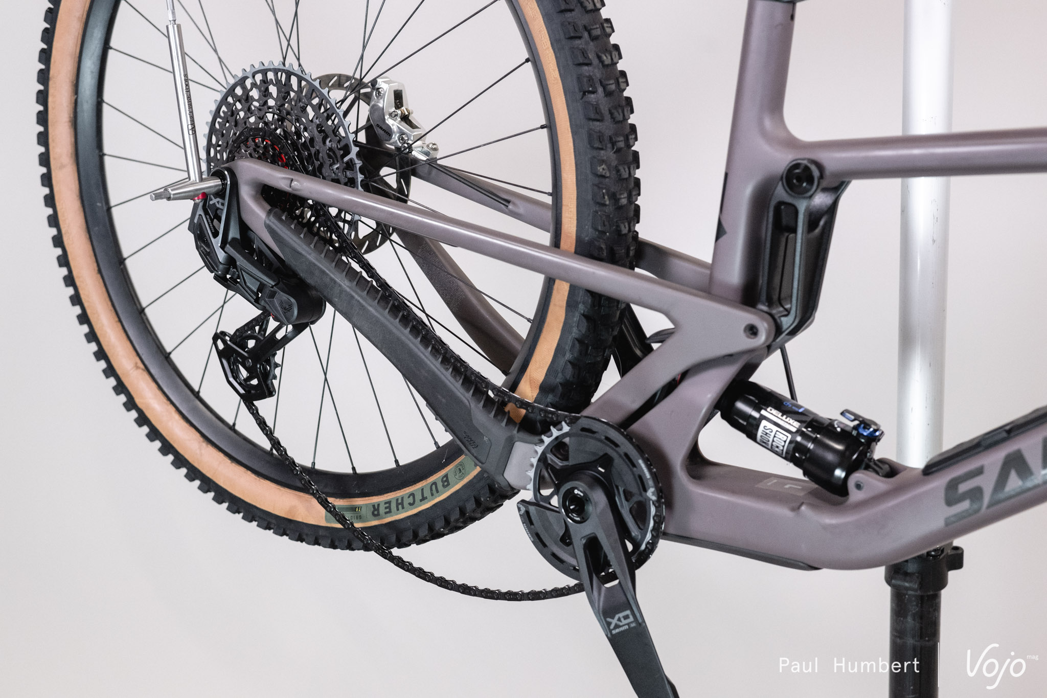 Le pédalier reçoit lui un joli accessoire : un bashguard amovible, qui vient se prendre dans l’étoile du plateau si celle-ci n’accueille pas de capteur de puissance. On peut choisir d’en monter un seul, deux ou aucun mais ça permet de protéger encore un peu plus sa transmission sans le coût, l’encombrement et le poids d’un vrai bash de DH.