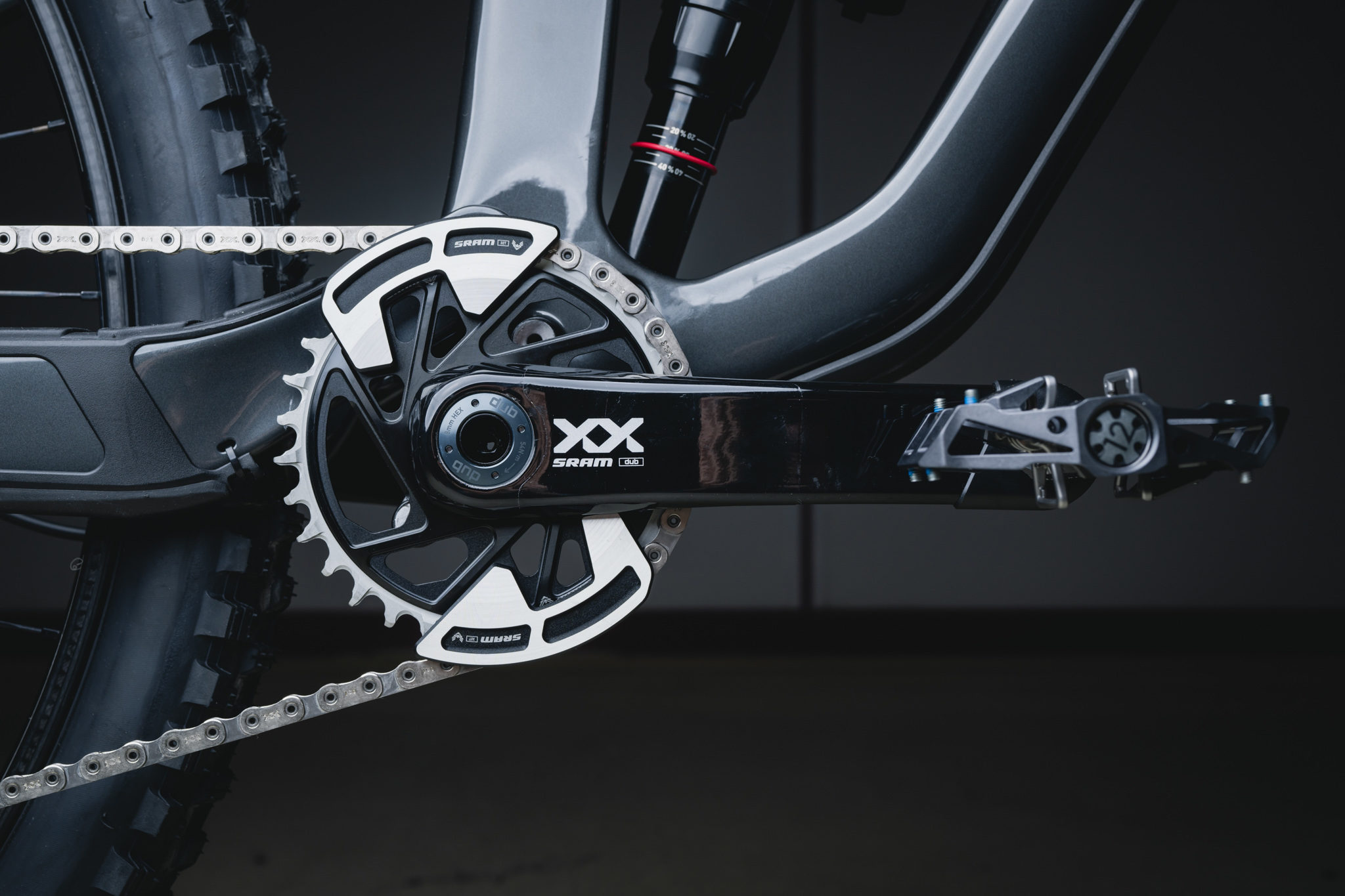 - Pédalier X0 : 360 € (compatible bashguard) / 900 € avec capteur de puissance dans l’axe (compatible bashguard). Plateau en 32 dents et manivelles en 165, 170 ou 175 mm.