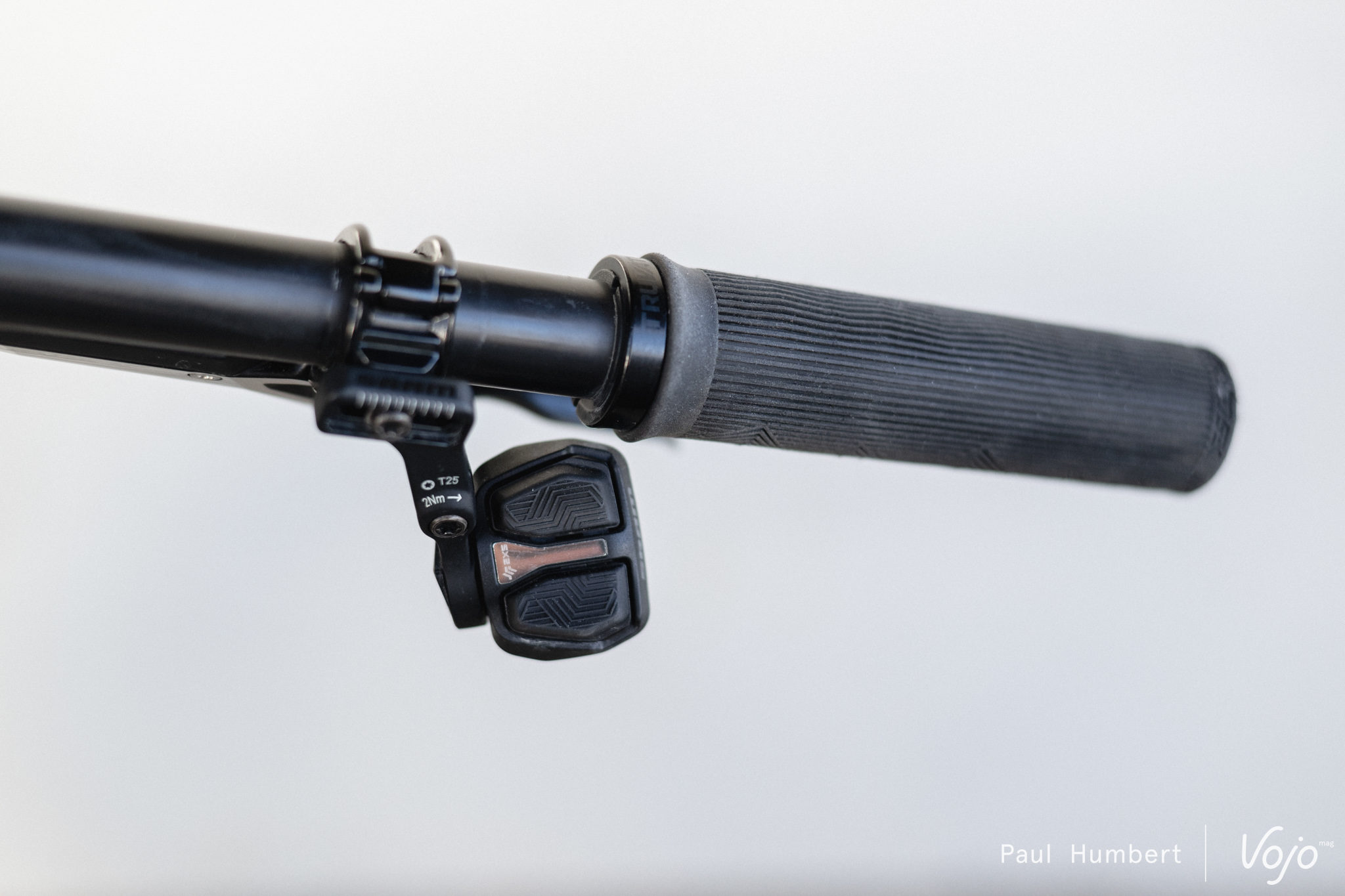 D’ailleurs, on ne s’y trompe pas chez Sram : « À ce stade, on ne peut pas avoir une ergonomie personnalisée, des cockpits personnalisés pour chaque pilote. Peut-être qu’un jour on en sera là […] mais en attendant, je pense que l’ajustabilité nous aide à atteindre un public plus large », convient Jochen, avant de poursuivre : « Souvent, de grandes possibilités de réglage et d’ergonomie sont considérées comme contraires à l’intégration. Cette nouvelle commande n’est certainement pas intégrée d’une manière visuelle, mais dans mon esprit, l’expérience de l’utilisateur, ce que le pilote fait sur le vélo, comment on sent les boutons, où ils sont positionnés par rapport aux mains, ça l’emporte toujours sur l’apparence. »
